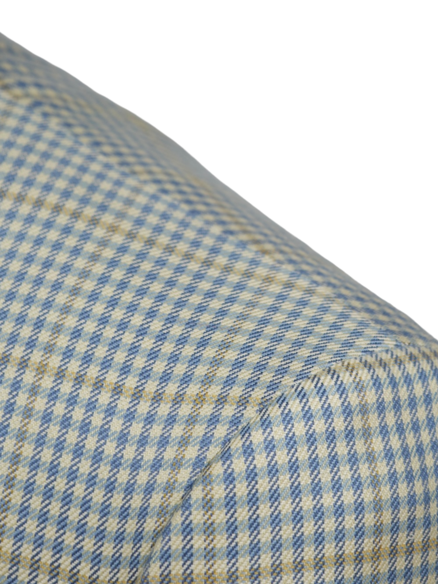 Discover the Brioni Light Blue Cashmere & Silk Overcheck Nomentano Jacket, a refined piece that combines luxurious materials with impeccable craftsmanship. Crafted from a blend of cashmere and silk, this jacket offers a soft, smooth feel, perfect for both formal and smart-casual settings. The light blue check pattern is subtly accented by a mustard-colored overcheck, adding depth and visual interest to the design. Featuring classic notch lapels and a 3-button closure, this jacket presents a timeless silhouette that exudes elegance. The attention to detail in every stitch is a testament to Brioni’s commitment to excellence.