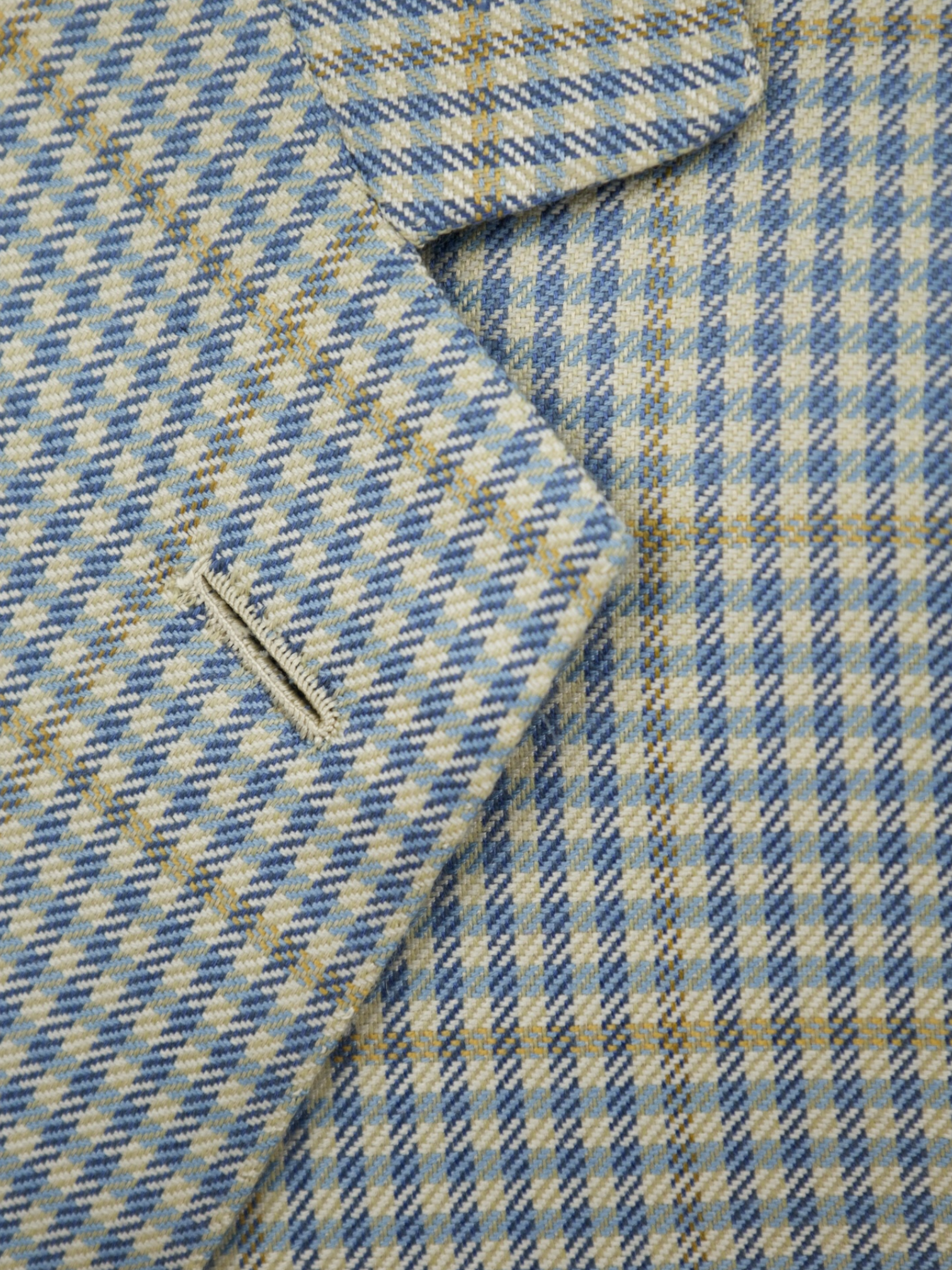 Also known as ‘barchetta’ Italian for ‘little boat’, it is so named because this pocket floats on the chest gently angled upward, just like the bow of a sailboat. These pockets echo the lively roll of a lapel that carries the spring of canvas and natural wool, unlike machine-made chest pockets that have a more stamped-out, rectangular shape and less life.