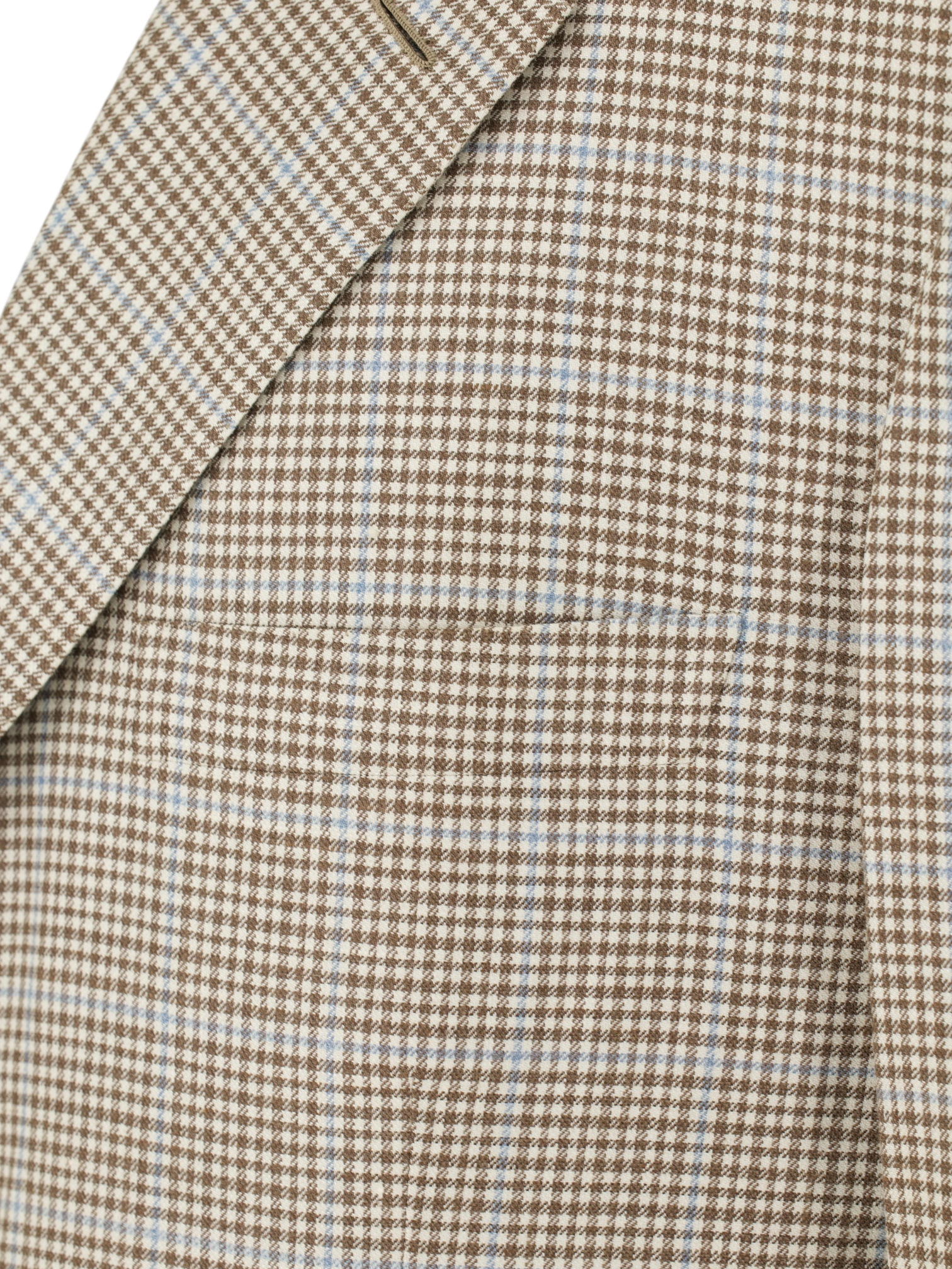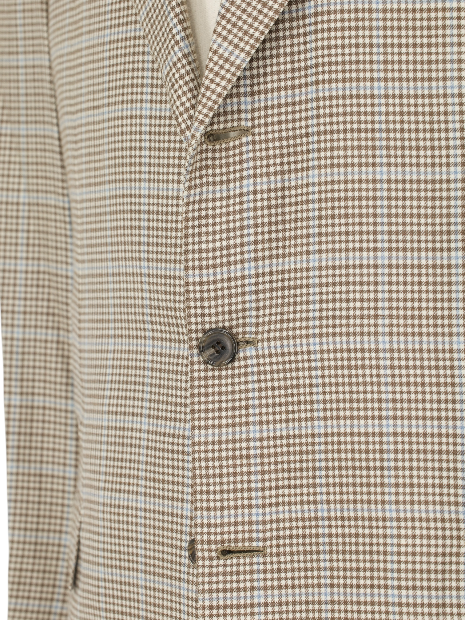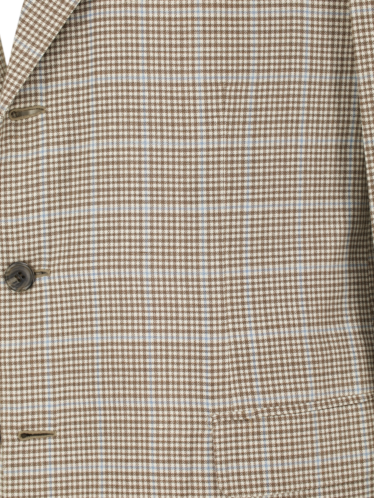 Brioni Light Brown & Light Blue Wool, Silk & Linen Overcheck Senato Jacket