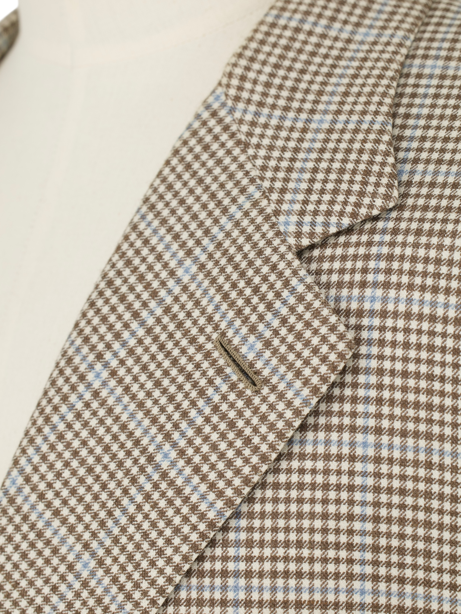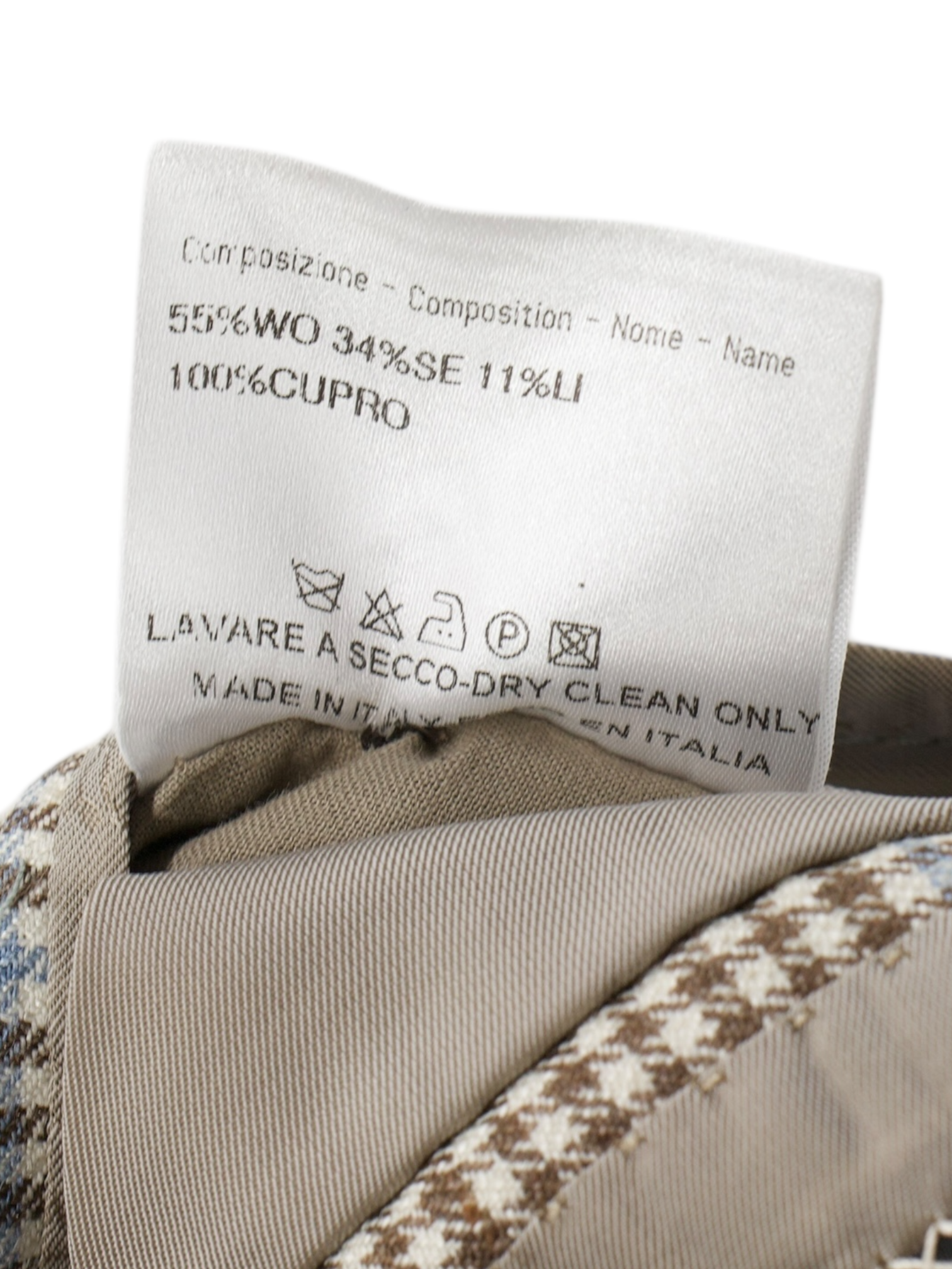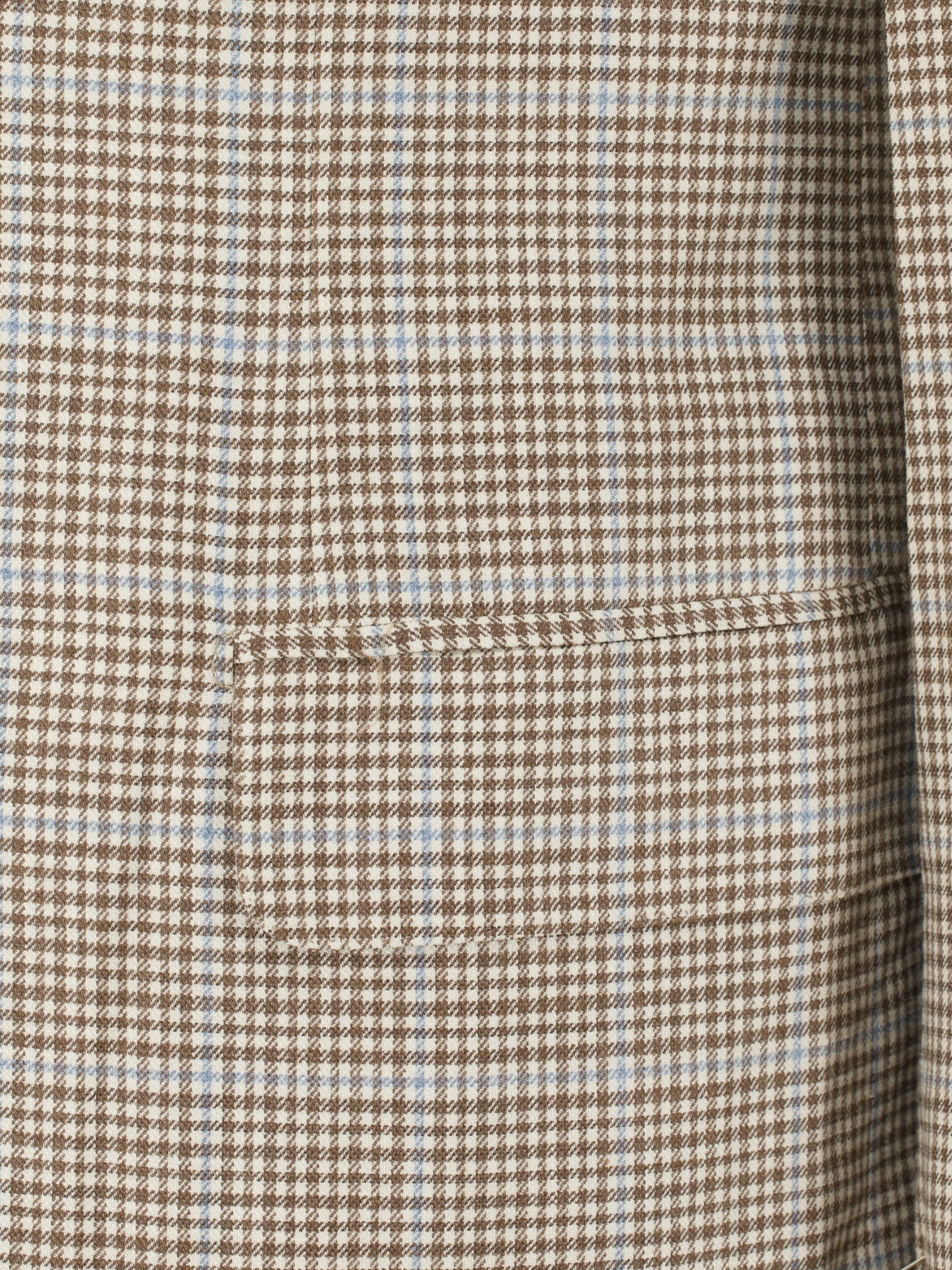 Brioni Light Brown & Light Blue Wool, Silk & Linen Overcheck Senato Jacket