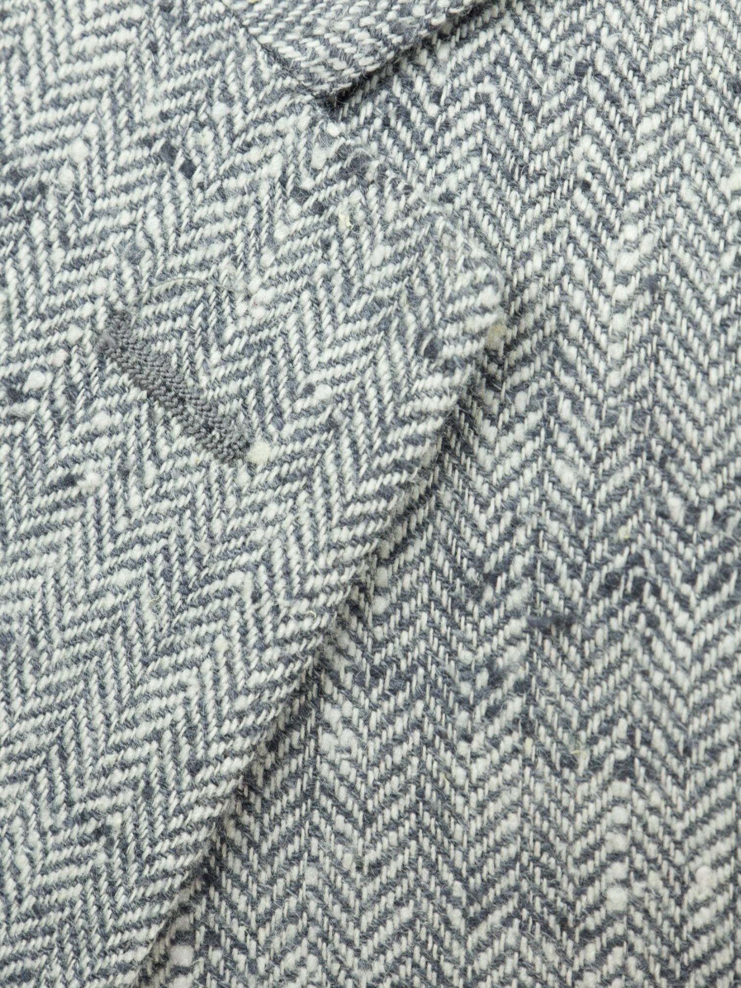 Brioni Light Grey Silk & Linen Donegal Tweed Herringbone Jacket