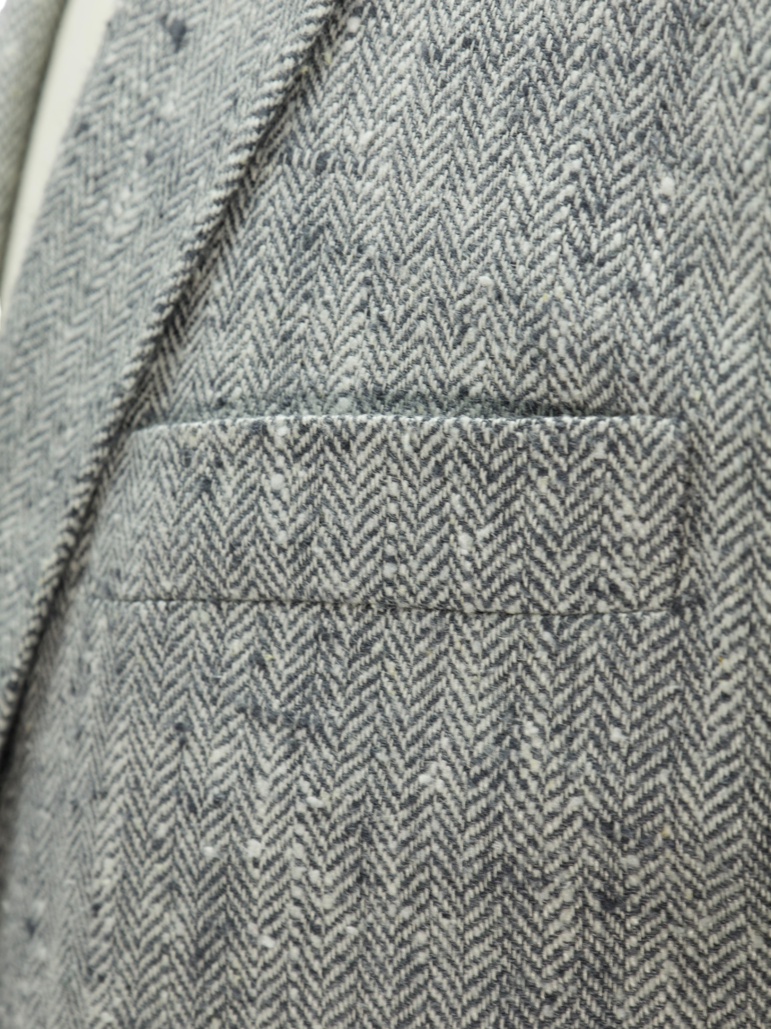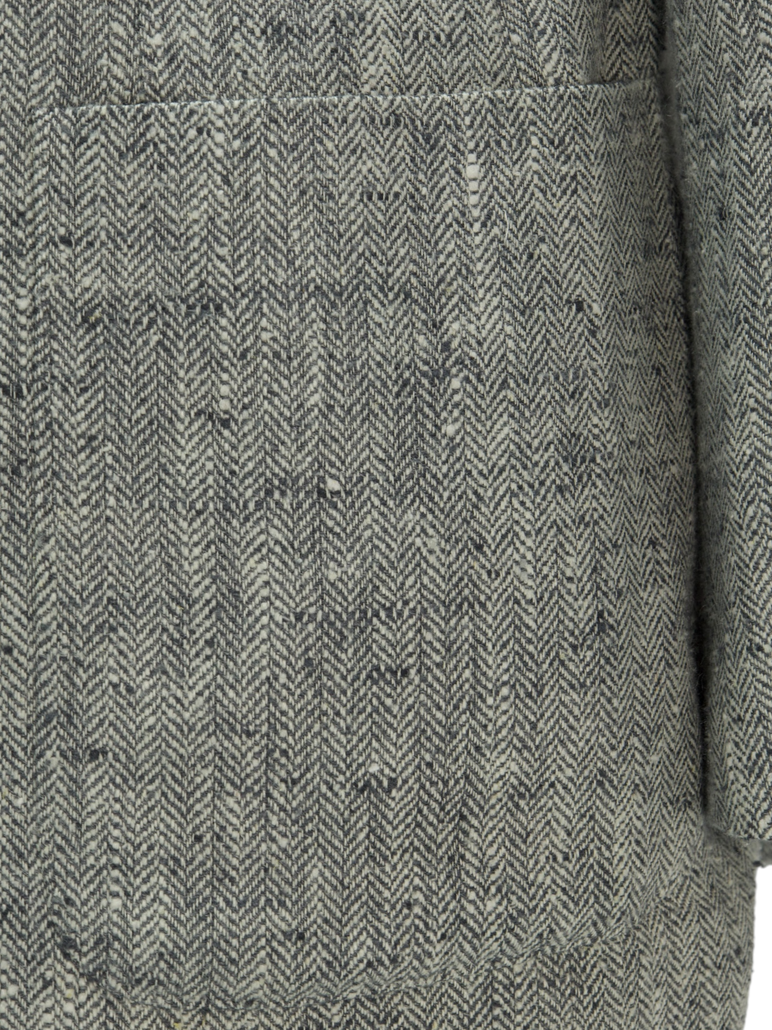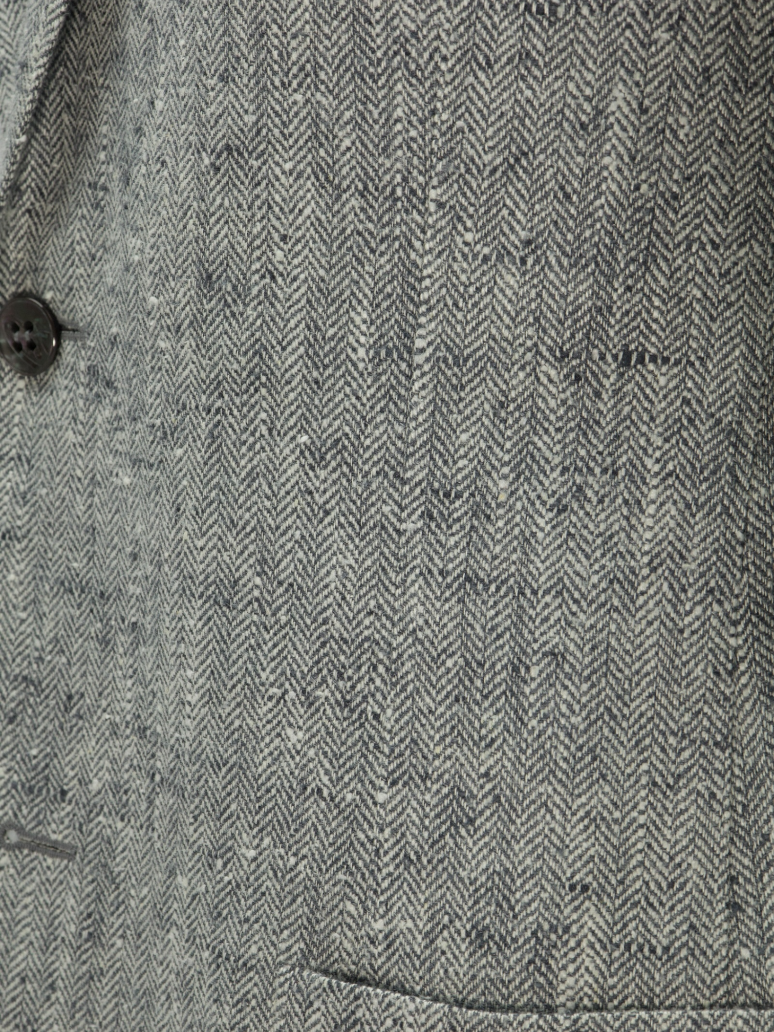 The use of silk and linen in the fabric ensures a soft and breathable feel, making it ideal for both formal and smart-casual occasions. The herringbone pattern, a timeless choice, enhances the jacket's sophisticated appeal, while the Donegal tweed detailing provides a modern twist on a traditional design.