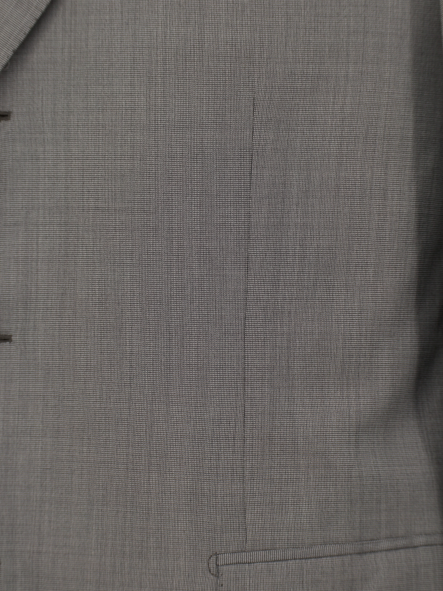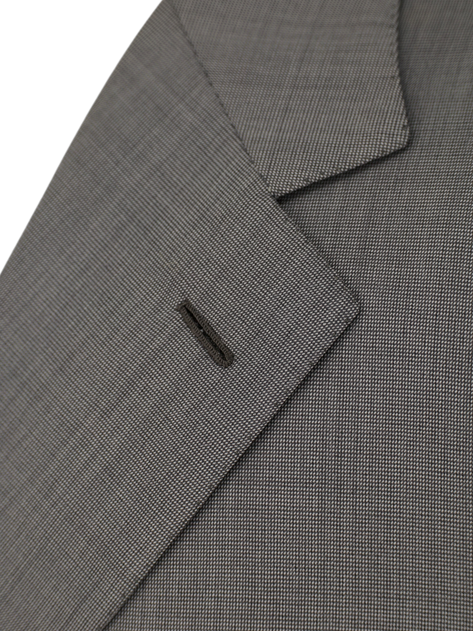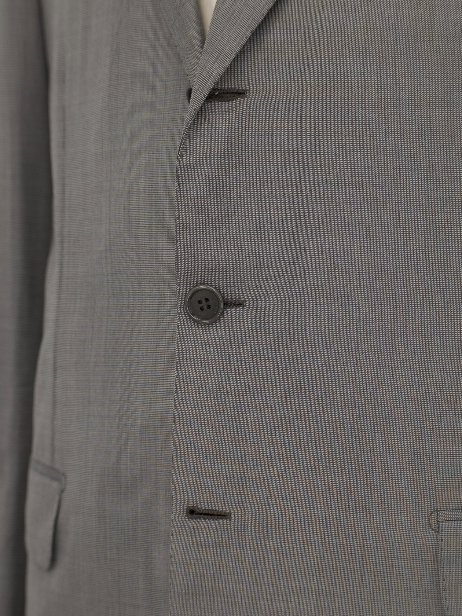 Discover the refined clarity of this Brioni Senato suit, tailored in a light grey wool and silk blend with a pinpoint weave that gives the surface a subtle texture and depth. The fabric is breathable, smooth, and quietly luxurious, perfect for warmer months or transitional seasons. The jacket is shaped with notch lapels, horn buttons, flap pockets, and a fully lined interior, while the Roman-style shoulders add structure and poise to the clean, modern silhouette.