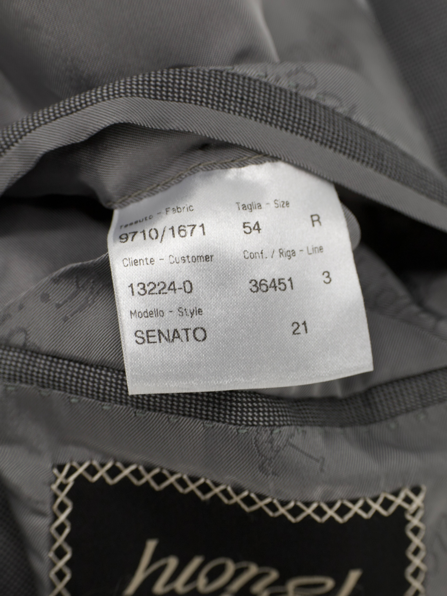 Cut in the Senato fit, the suit offers a tailored yet wearable profile with a gently tapered waist and a balanced chest that flatters without restricting. The trousers are finished with a flat front, belt loops, and a plain hem, maintaining a crisp line that complements the jacket’s elegant structure. Ideal for the man who values craftsmanship, comfort, and effortless sophistication, this is a versatile suit that handles everything from daytime appointments to evening events with quiet confidence. Discover the elaborated sartorial details below.