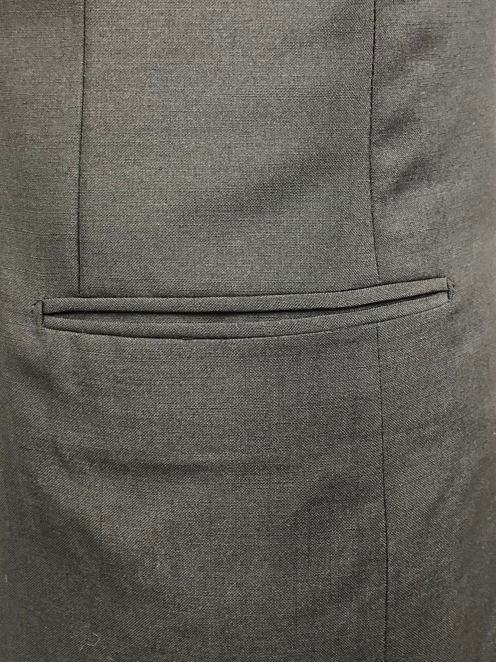 The first jacket pockets were sewn inside the lining or seams of garments, and are called “jetted” pockets. In their simplest form, they consist of little more than a slit. Suits that are the most formal, especially tuxedos, have no flap pockets altogether to give the piece a more streamlined look.