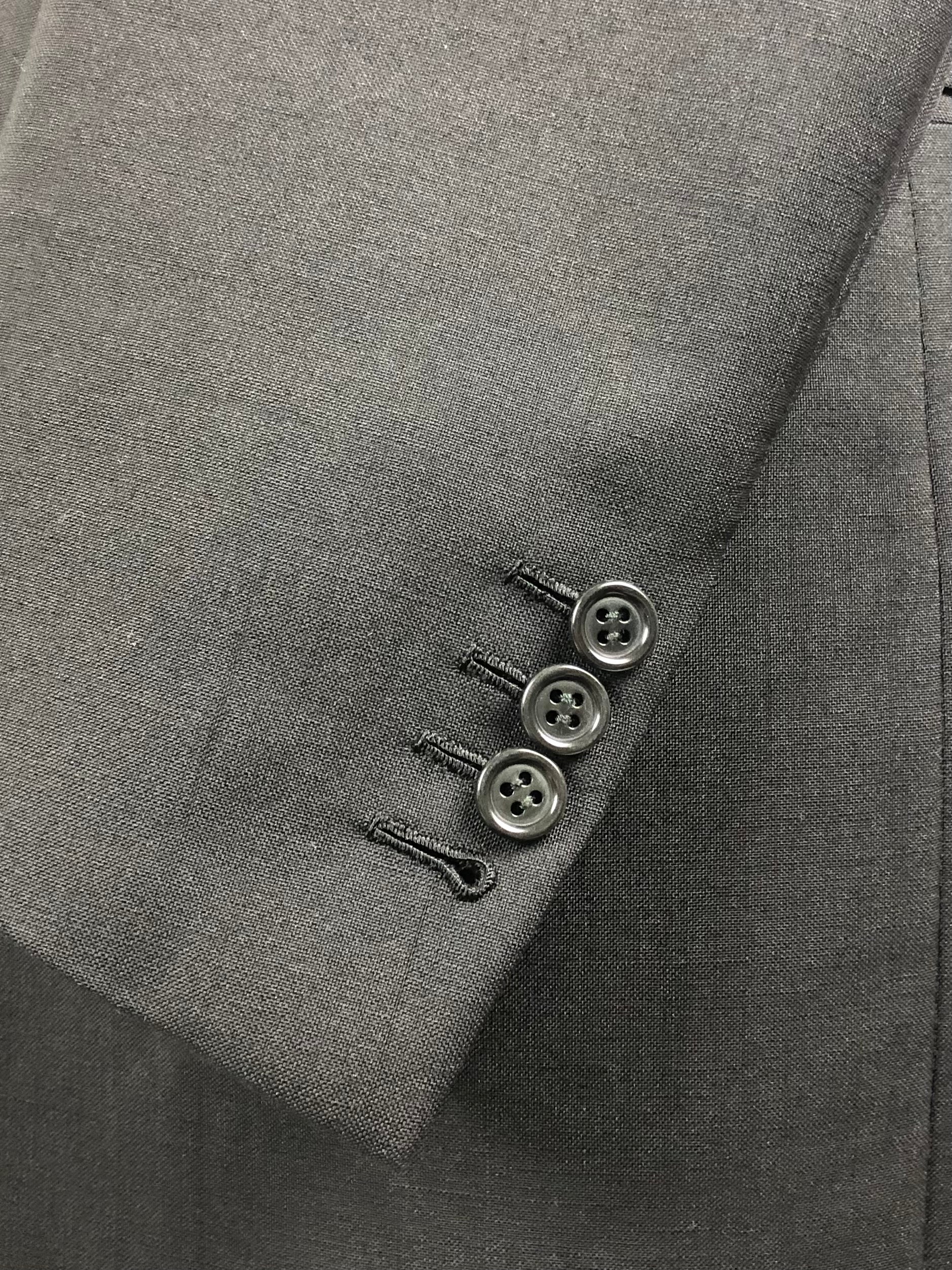 Also known as stacked buttons or waterfall buttons, kissing buttons are associated with Italian tailoring as Italian tailors make their jacket sleeve buttons in the kissing style. In this style, buttons touch each other and overlap one another. Handmade buttonholes; Even this step, apparently the simplest, is treated with an abundance of detail. Attaching the buttons is a job that requires patience and must be completed to perfection.