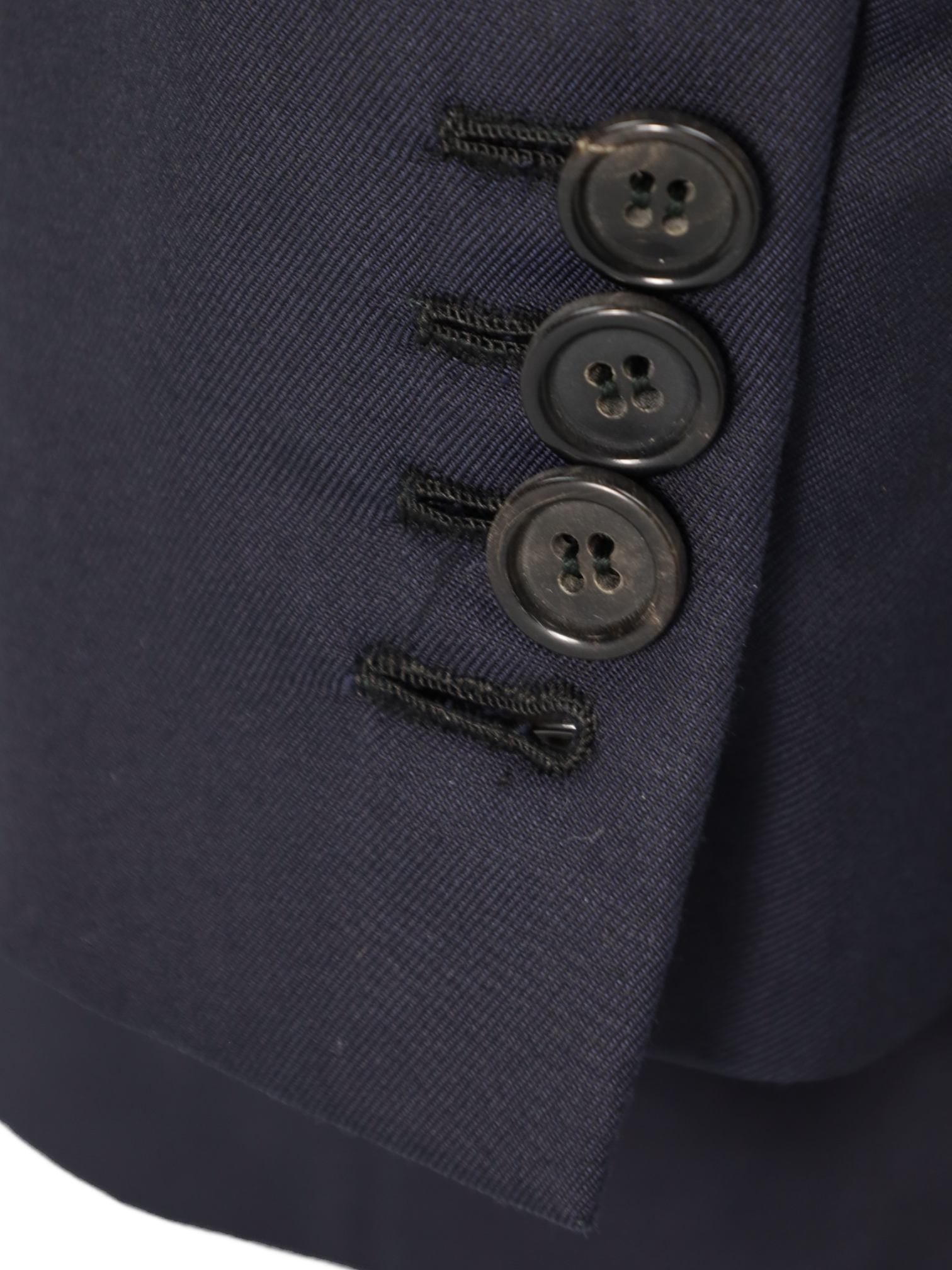 Also known as stacked buttons or waterfall buttons, kissing buttons are associated with Italian tailoring as Italian tailors make their jacket sleeve buttons in the kissing style. In this style, buttons touch each other and overlap one another. Handmade buttonholes; Even this step, apparently the simplest, is treated with an abundance of detail. Attaching the buttons is a job that requires patience and must be completed to perfection.