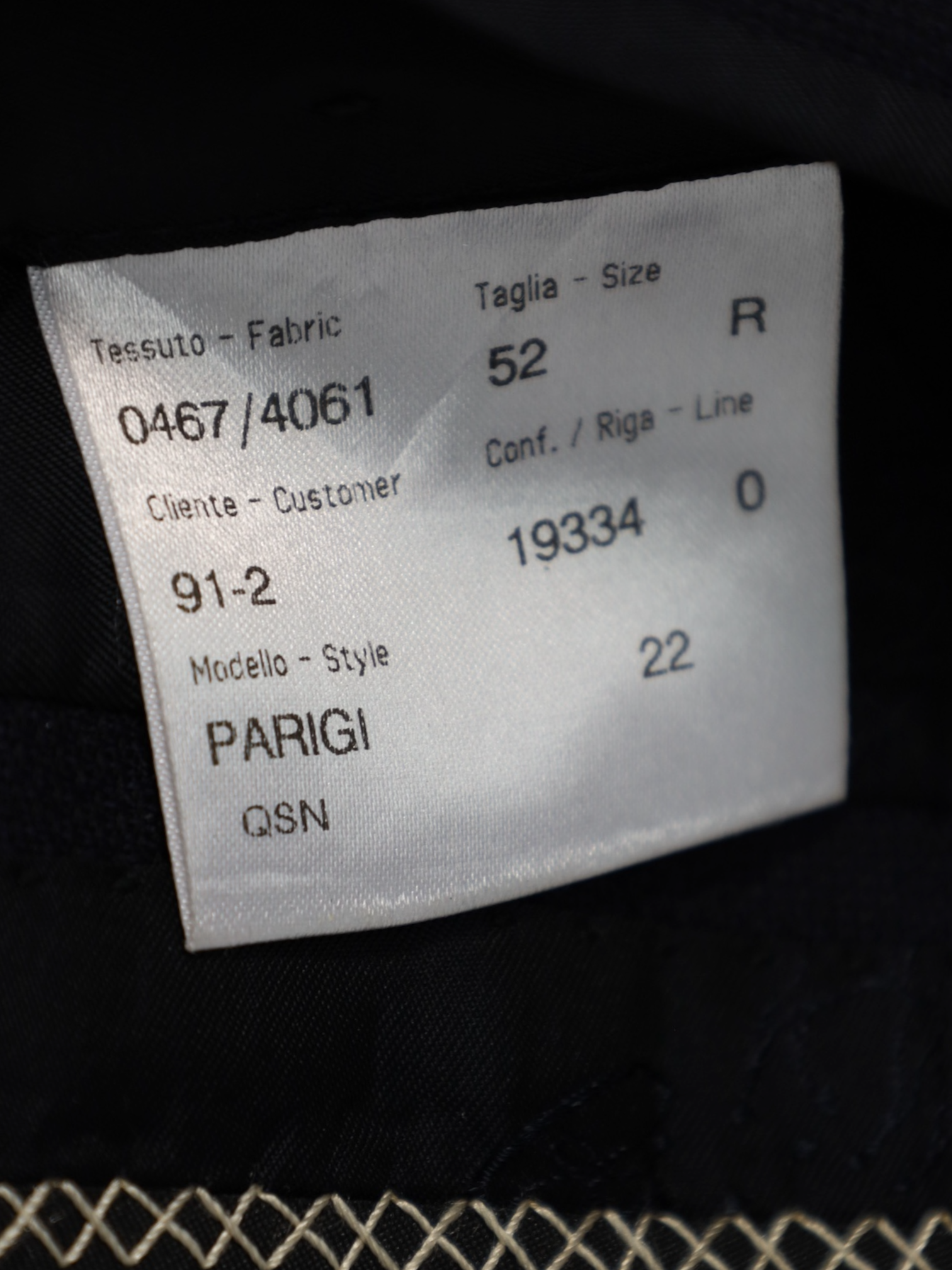 Also known as ‘barchetta’ Italian for ‘little boat’, it is so named because this pocket floats on the chest gently angled upward, just like the bow of a sailboat. These pockets echo the lively roll of a lapel that carries the spring of canvas and natural wool, unlike machine-made chest pockets that have a more stamped-out, rectangular shape and less life.