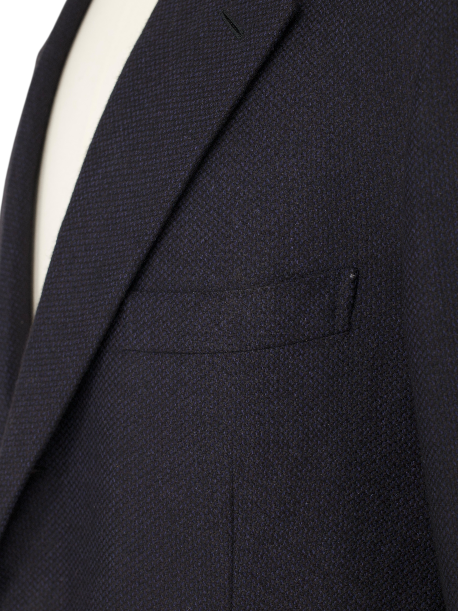 Also known as ‘barchetta’ Italian for ‘little boat’, it is so named because this pocket floats on the chest gently angled upward, just like the bow of a sailboat. These pockets echo the lively roll of a lapel that carries the spring of canvas and natural wool, unlike machine-made chest pockets that have a more stamped-out, rectangular shape and less life.