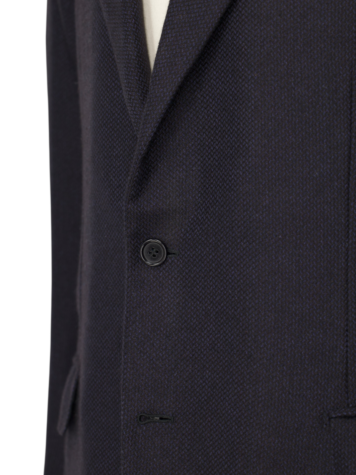 A sartorial jacket - or coat - needs an interlining that will help give it shape and mold it. Canvas gives the item a tailored and crafted look. In short, it breathes life into it. Purely technical, canvas is made from either horsehair, wool, mohair or camel hair. It could also be a mix of them all, with varying thickness and weight. The canvas is stitched to the jacket, often by hand, thus making the canvas pieces 'floating' in the middle of the inner and outer cloth. This gives the jacket added flexibility. The canvas runs from the upper parts, all the way down to the end of the jacket. After you wear your canvassed suit for a while, it will begin to take your shape and look incredibly natural.
