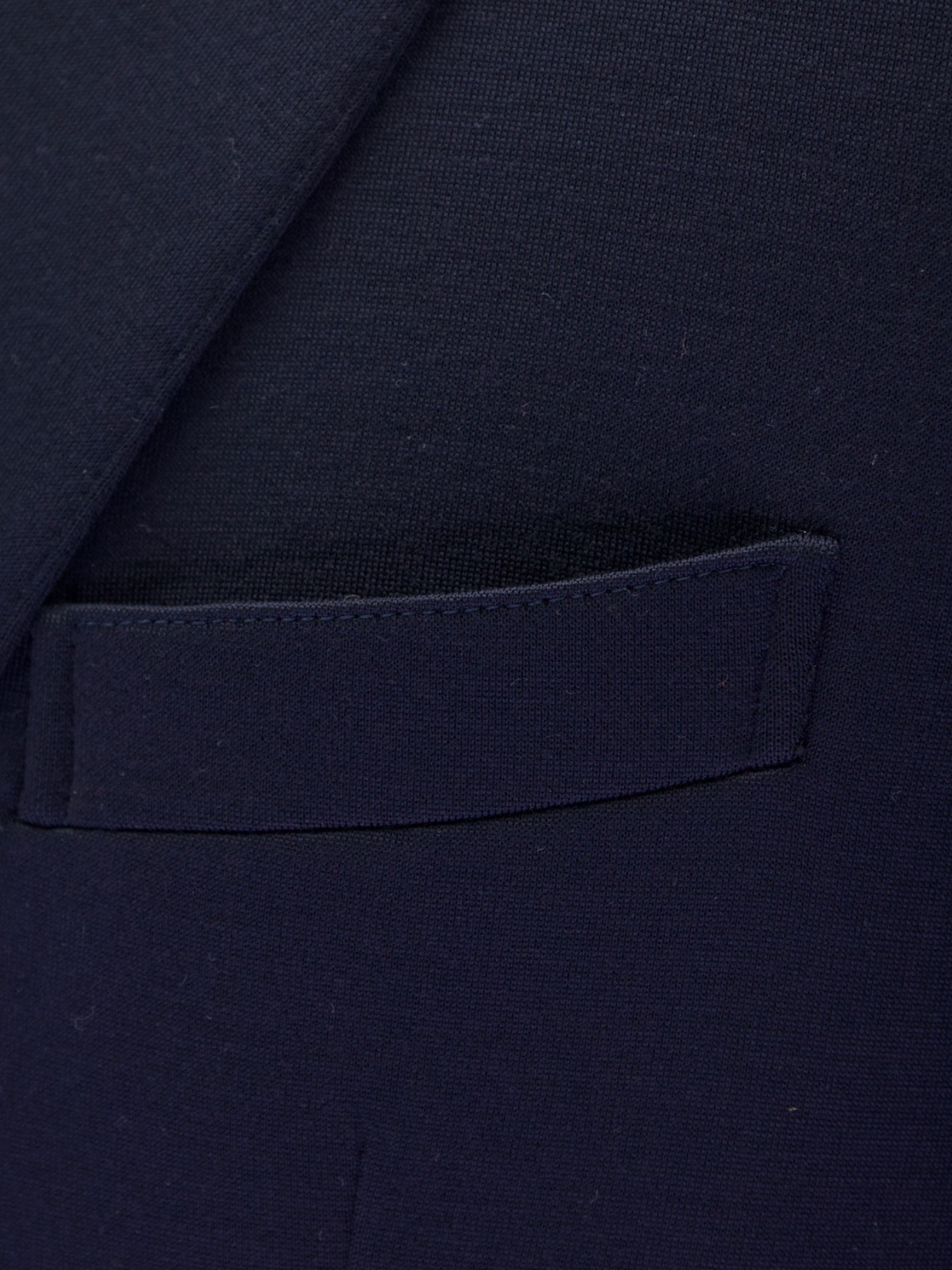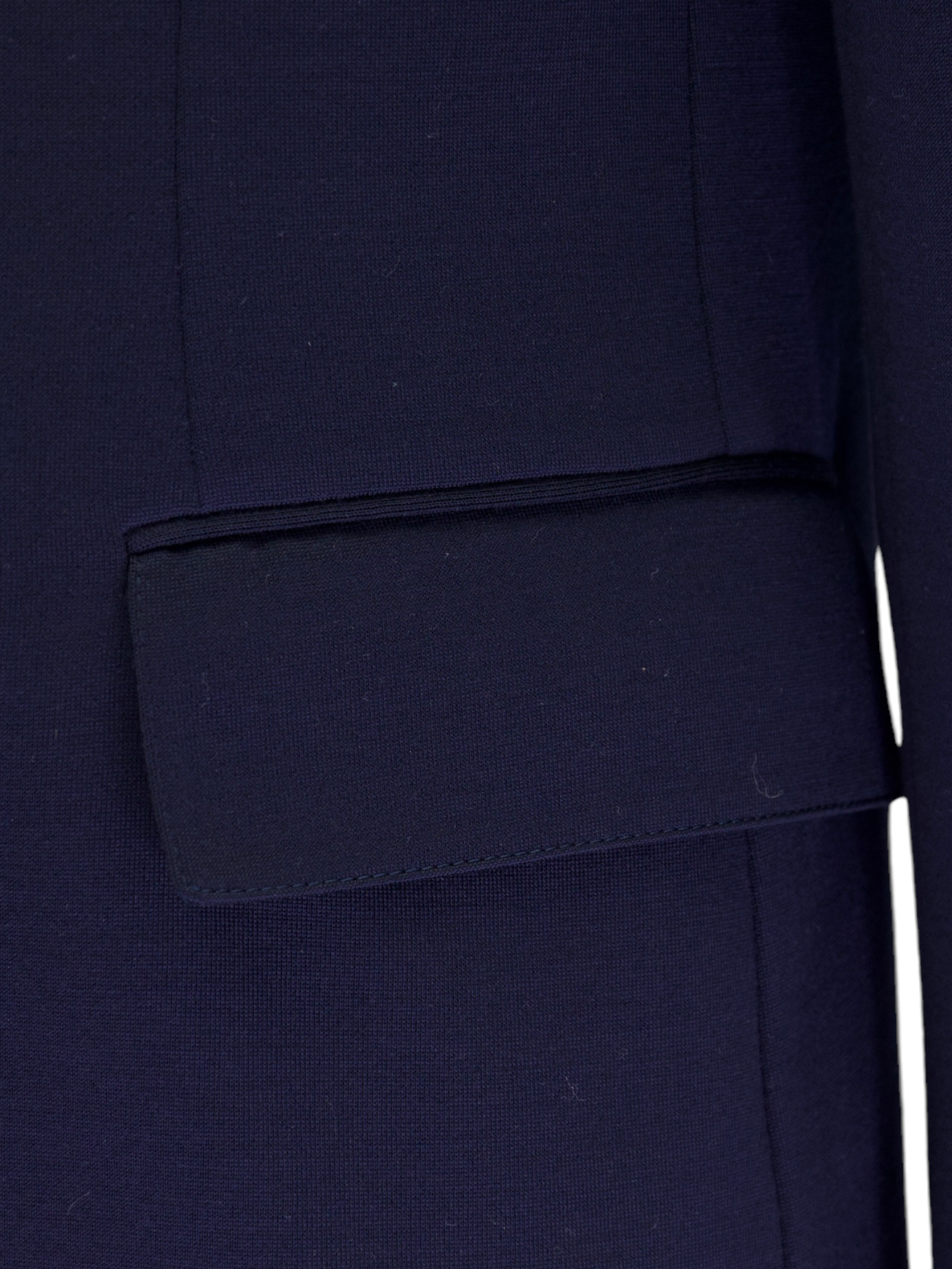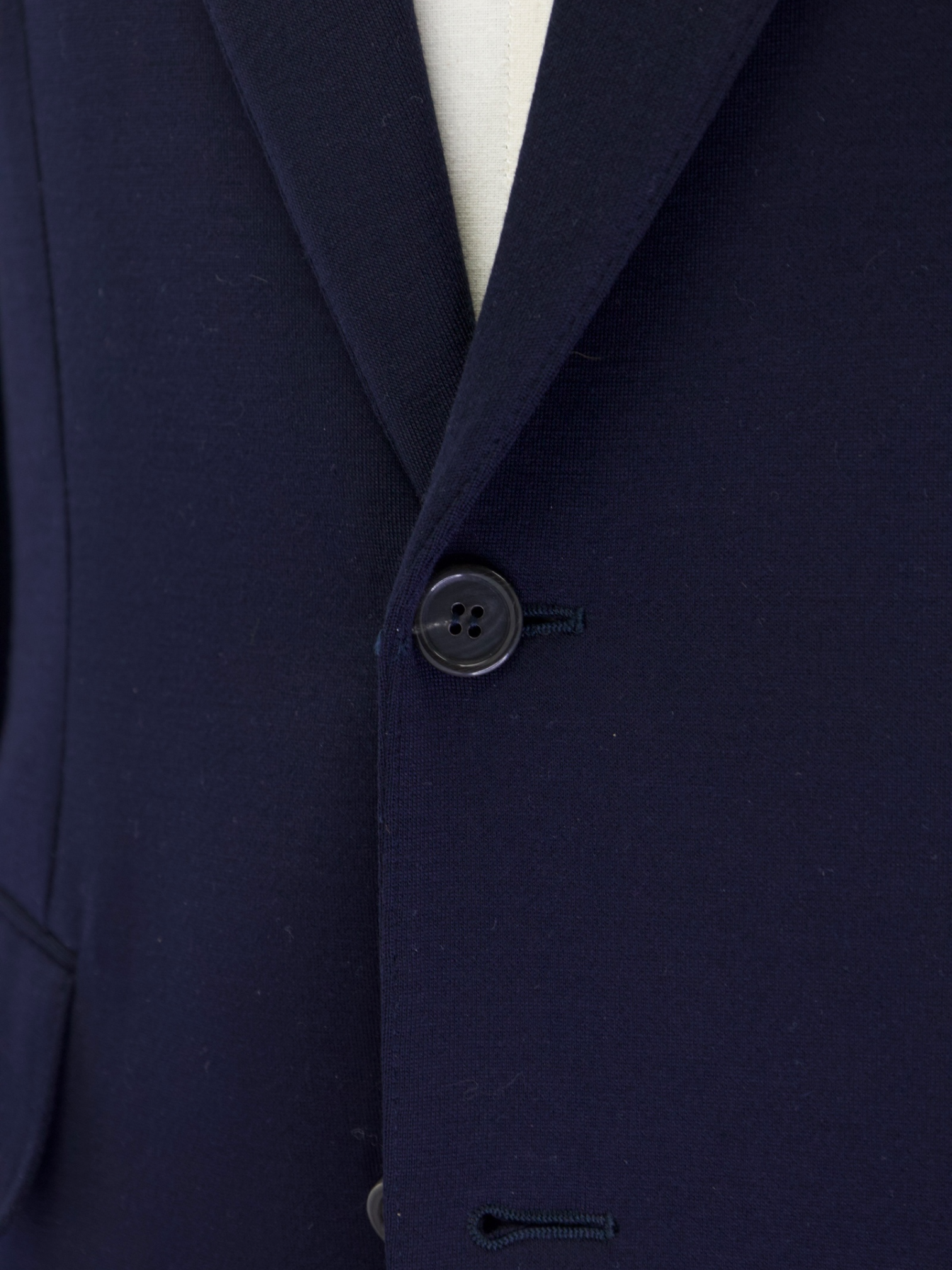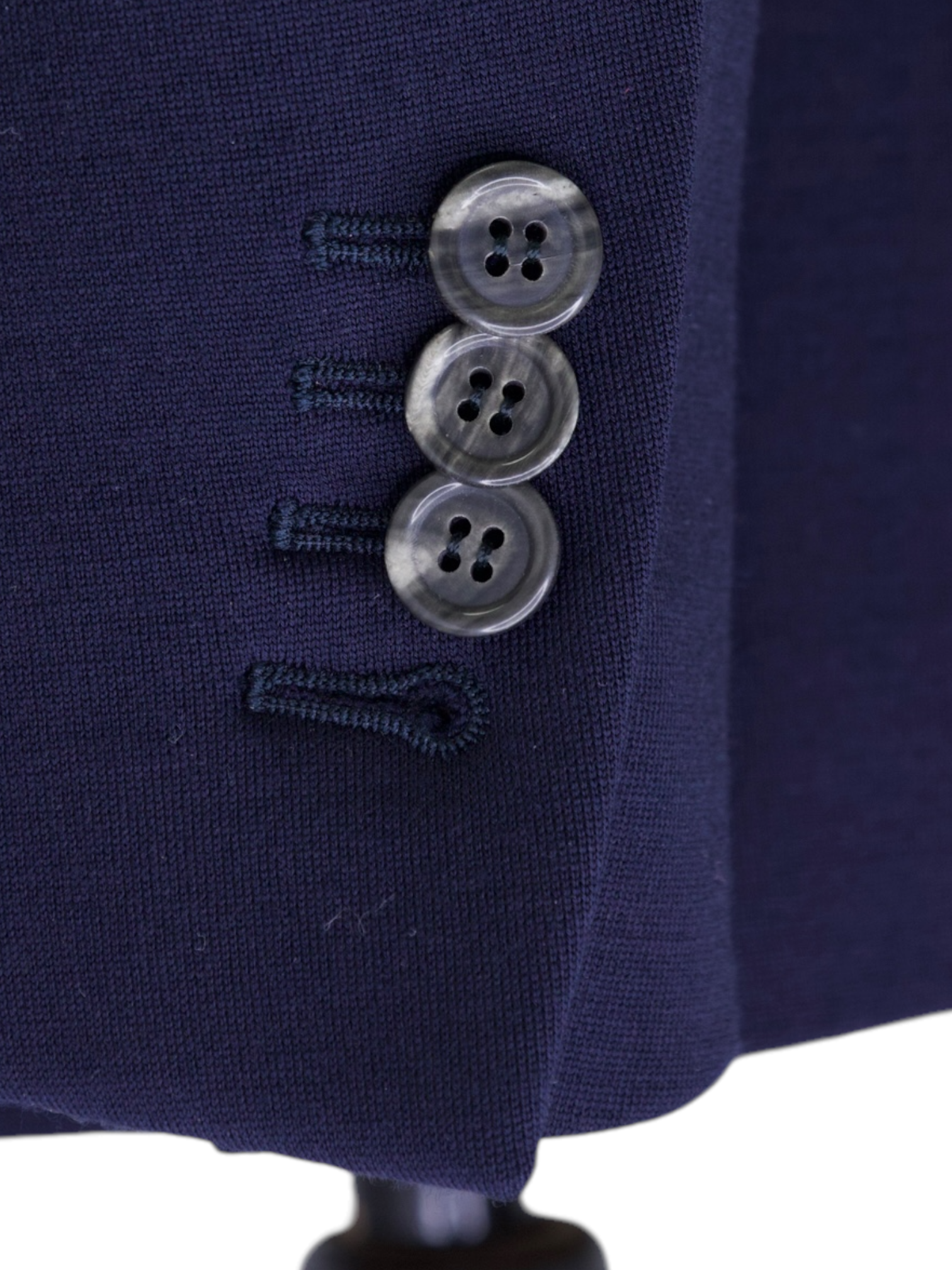Handmade in Italy, this blazer is a testament to Brioni’s legendary craftsmanship and dedication to quality. The jersey knit fabric is meticulously woven to achieve a smooth, durable finish that maintains its shape while remaining lightweight and breathable. Each blazer is tailored by artisans who focus on achieving a flawless drape and a refined look without the constraints of traditional structured jackets. This piece captures Brioni’s essence of understated luxury, blending innovation with timeless Italian style. Discover the elaborated sartorial details below.