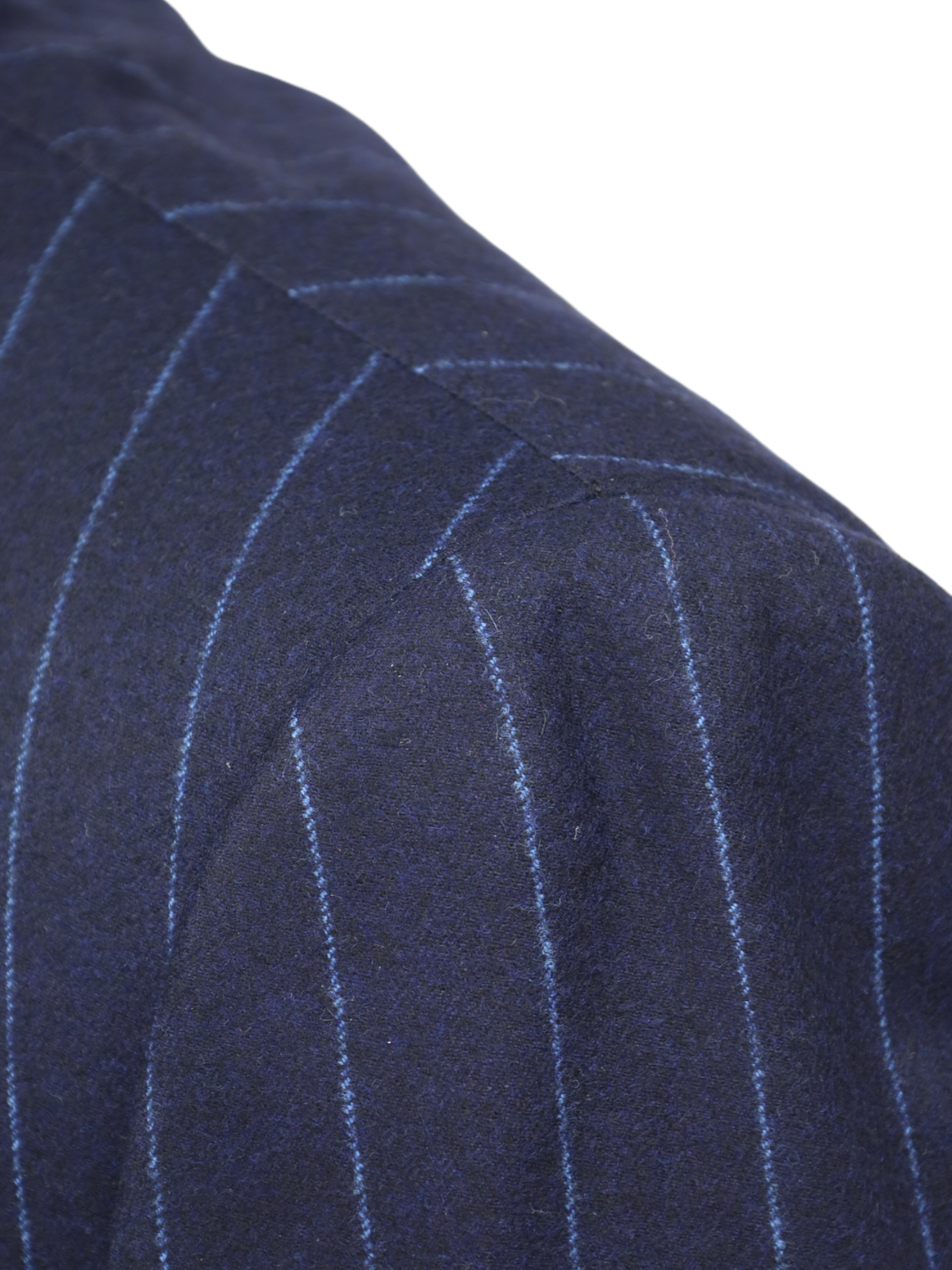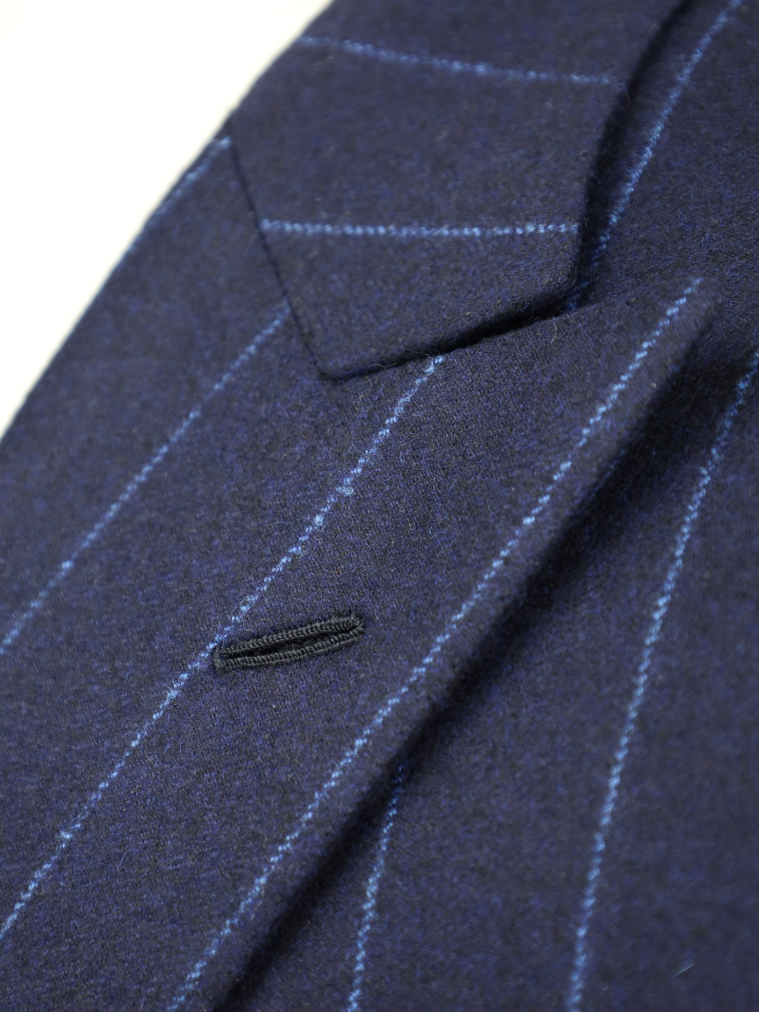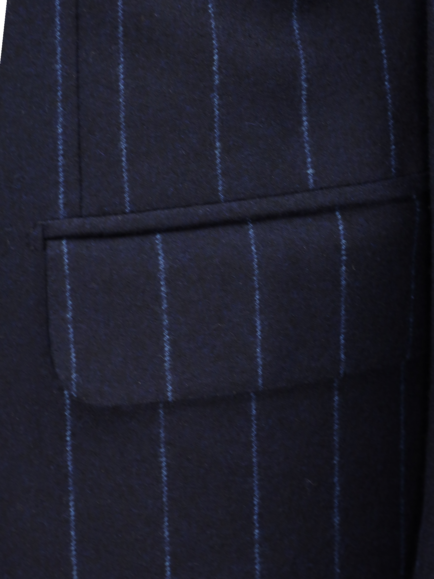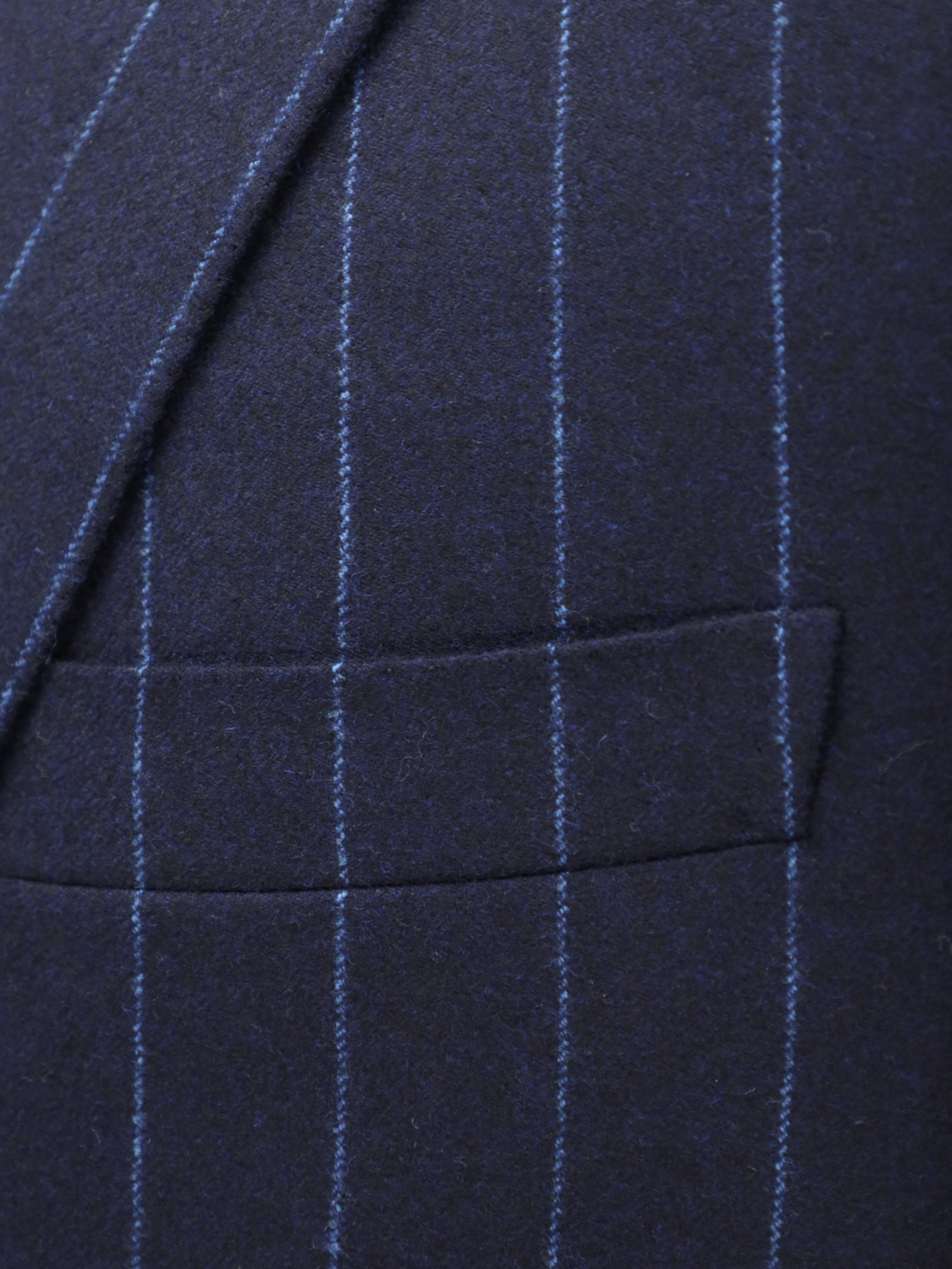 Also known as ‘barchetta’ Italian for ‘little boat’, it is so named because this pocket floats on the chest gently angled upward, just like the bow of a sailboat. These pockets echo the lively roll of a lapel that carries the spring of canvas and natural wool, unlike machine-made chest pockets that have a more stamped-out, rectangular shape and less life.