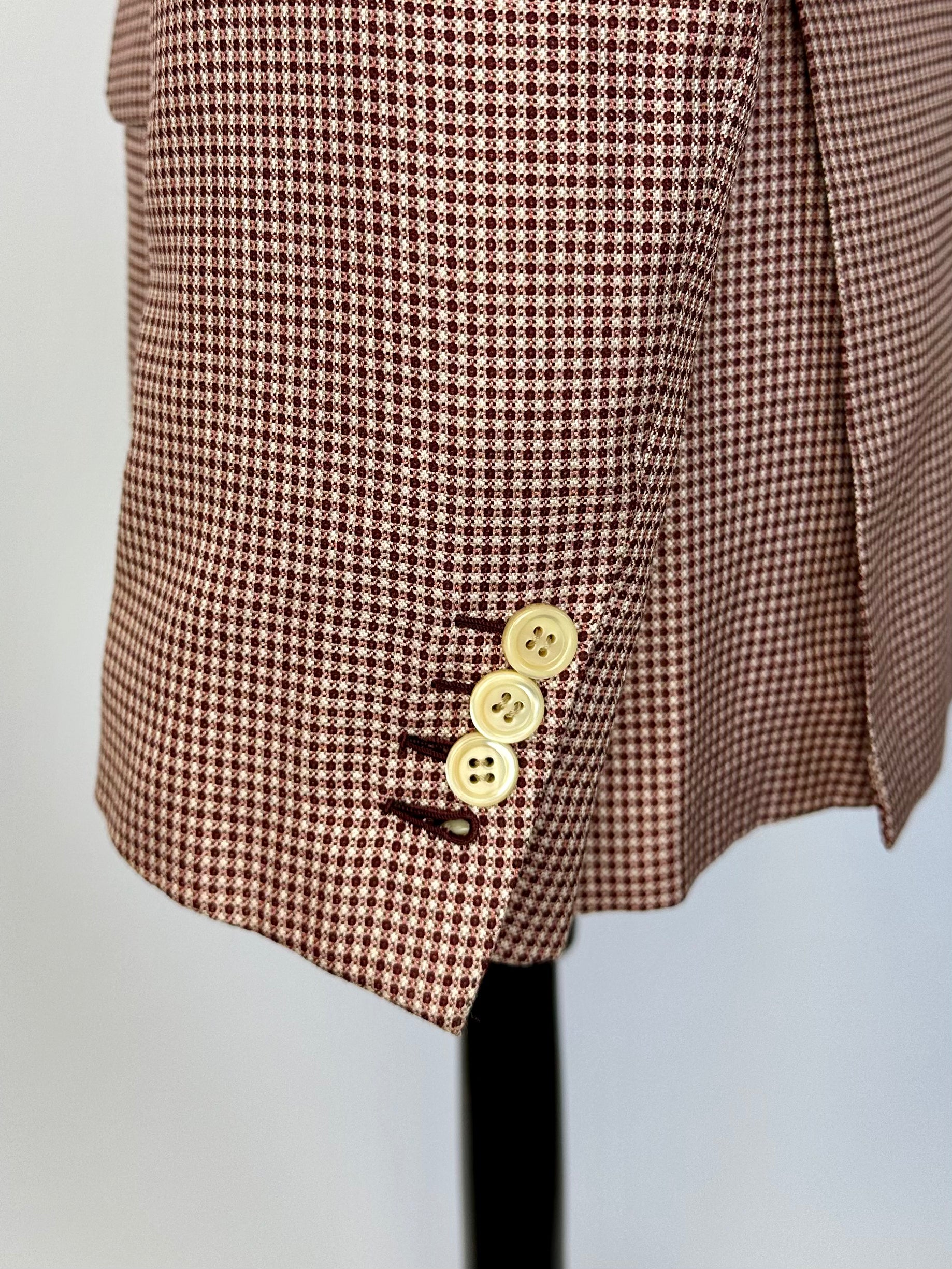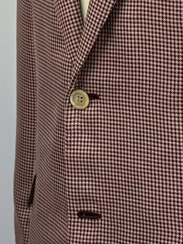 Also known as stacked buttons or waterfall buttons, kissing buttons are associated with Italian tailoring as Italian tailors make their jacket sleeve buttons in the kissing style. In this style, buttons touch each other and overlap one another. Handmade buttonholes; Even this step, apparently the simplest, is treated with an abundance of detail. Attaching the buttons is a job that requires patience and must be completed to perfection.