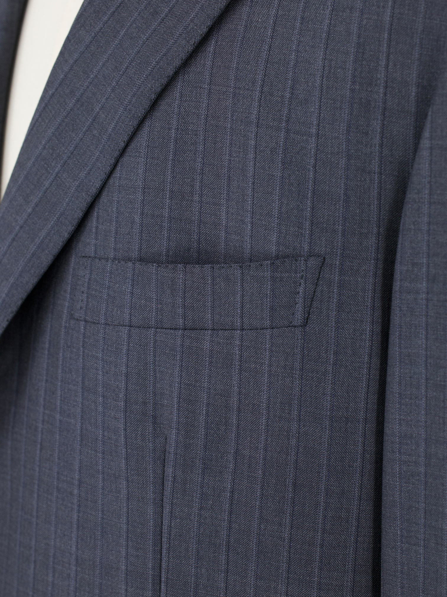Also known as ‘barchetta’ Italian for ‘little boat’, it is so named because this pocket floats on the chest gently angled upward, just like the bow of a sailboat. These pockets echo the lively roll of a lapel that carries the spring of canvas and natural wool, unlike machine-made chest pockets that have a more stamped-out, rectangular shape and less life.