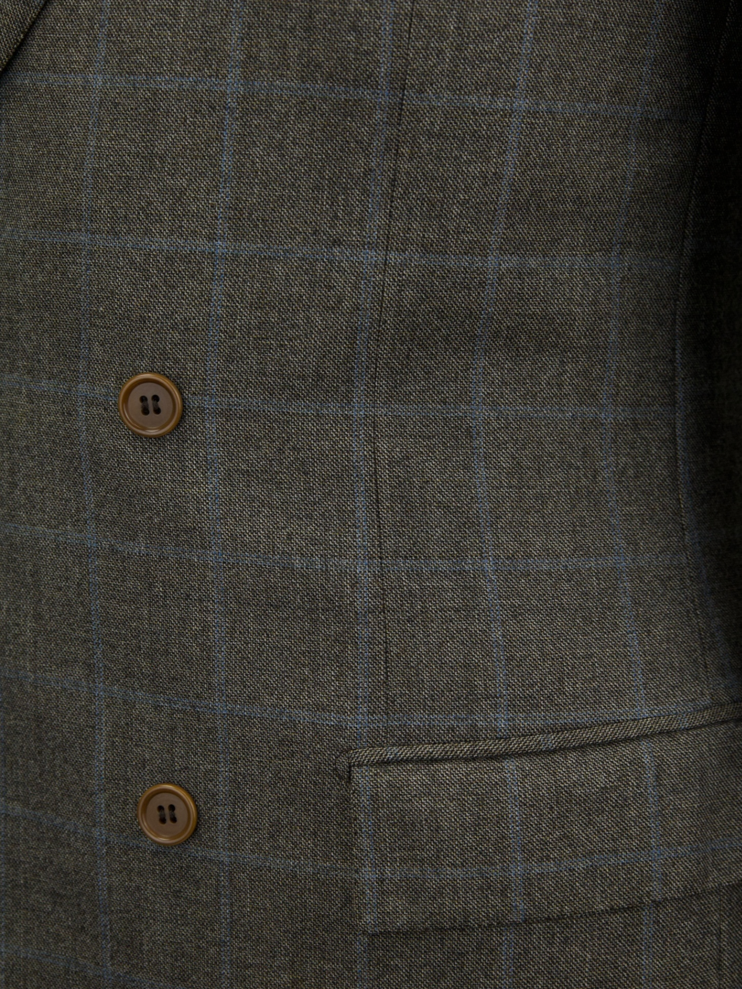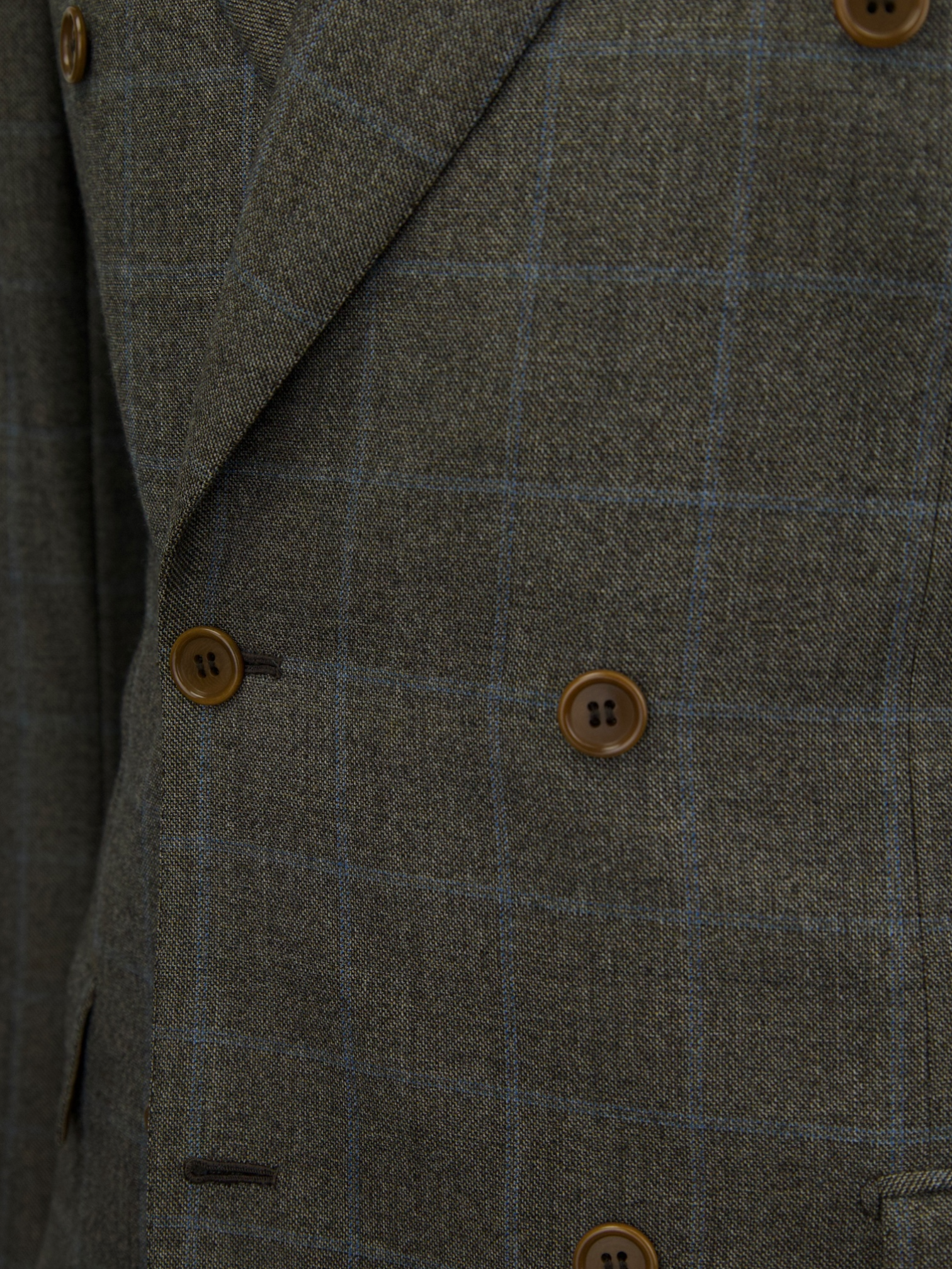 Brioni Taupe & Light Blue Double-Breasted Windowpane Suit