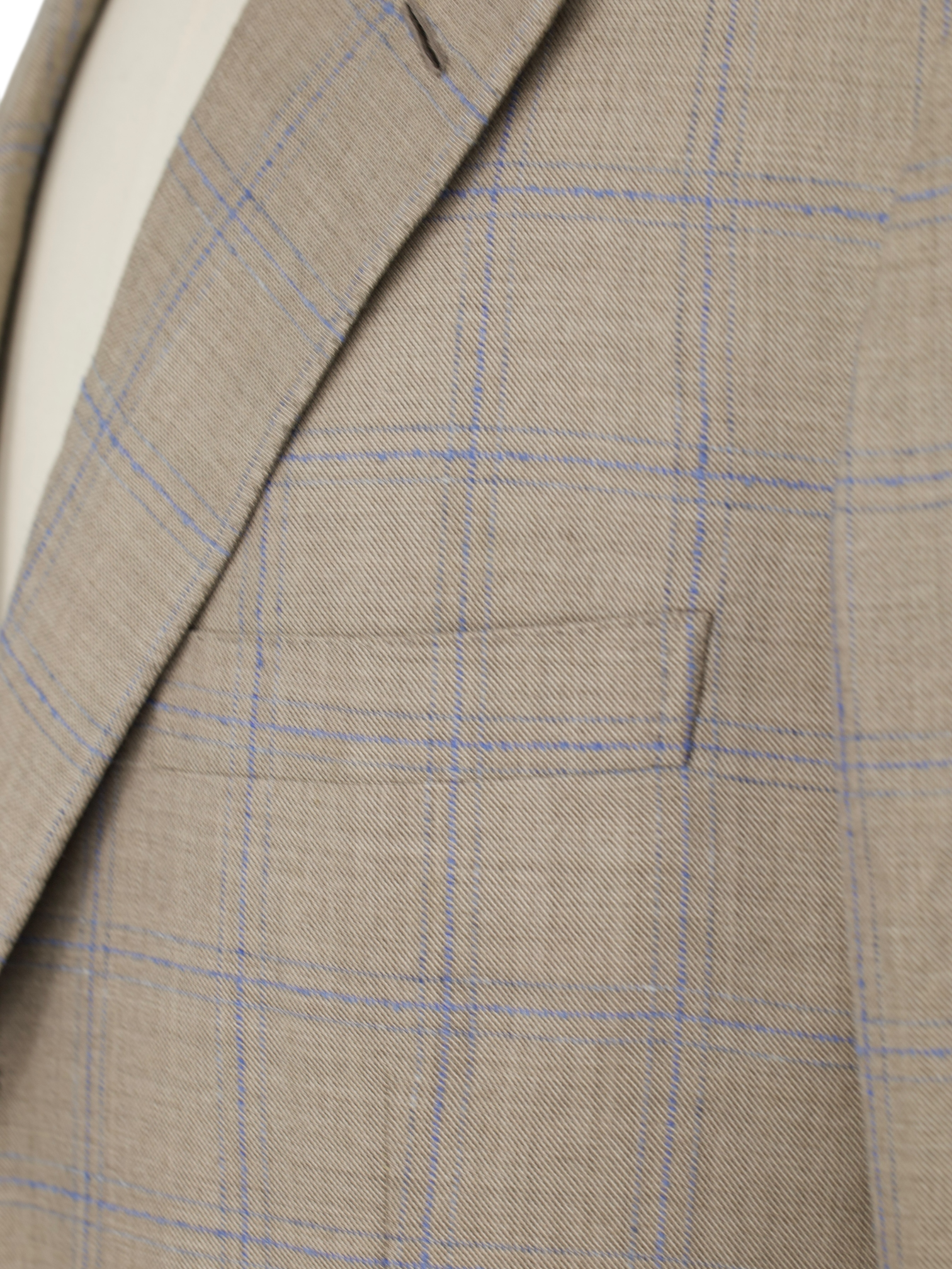 Also known as ‘barchetta’ Italian for ‘little boat’, it is so named because this pocket floats on the chest gently angled upward, just like the bow of a sailboat. These pockets echo the lively roll of a lapel that carries the spring of canvas and natural wool, unlike machine-made chest pockets that have a more stamped-out, rectangular shape and less life.