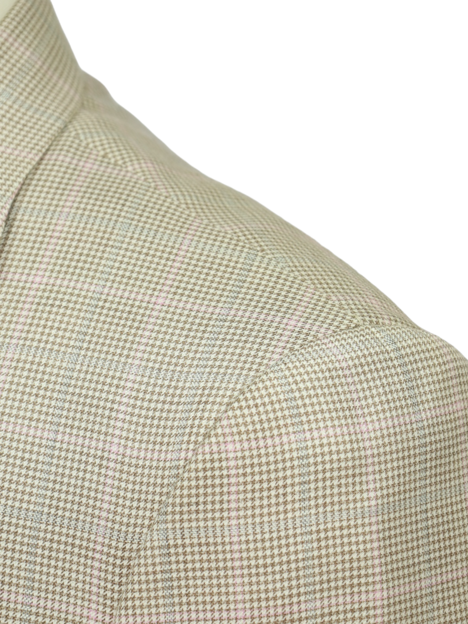 Brioni Taupe & Salmon Pink Fine-Wool Glenplaid Jacket