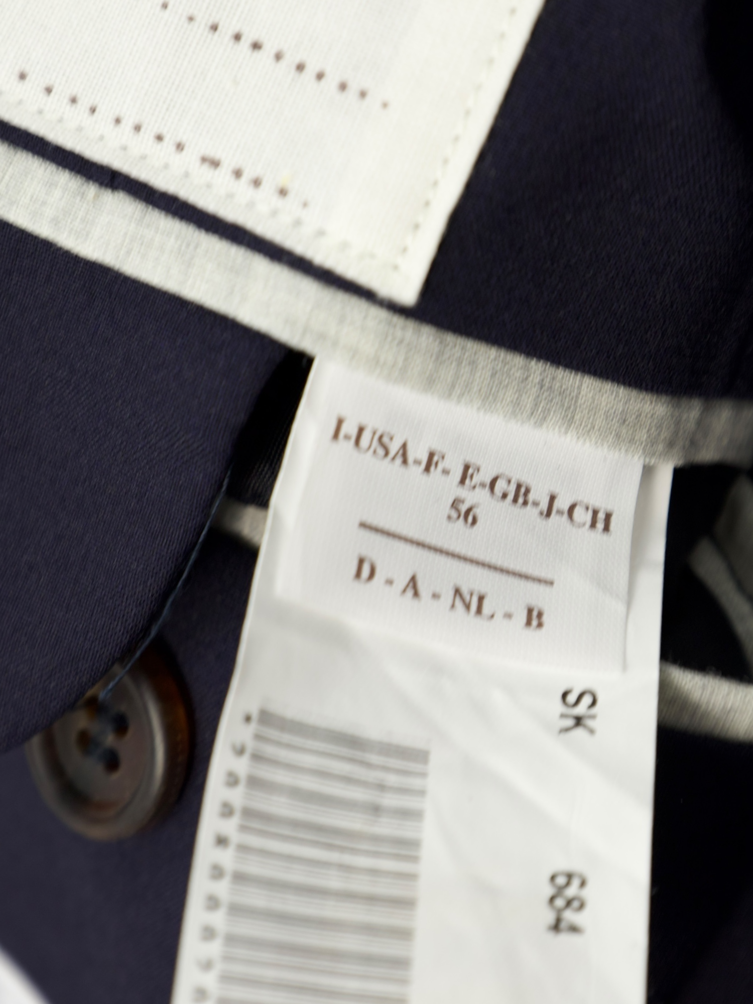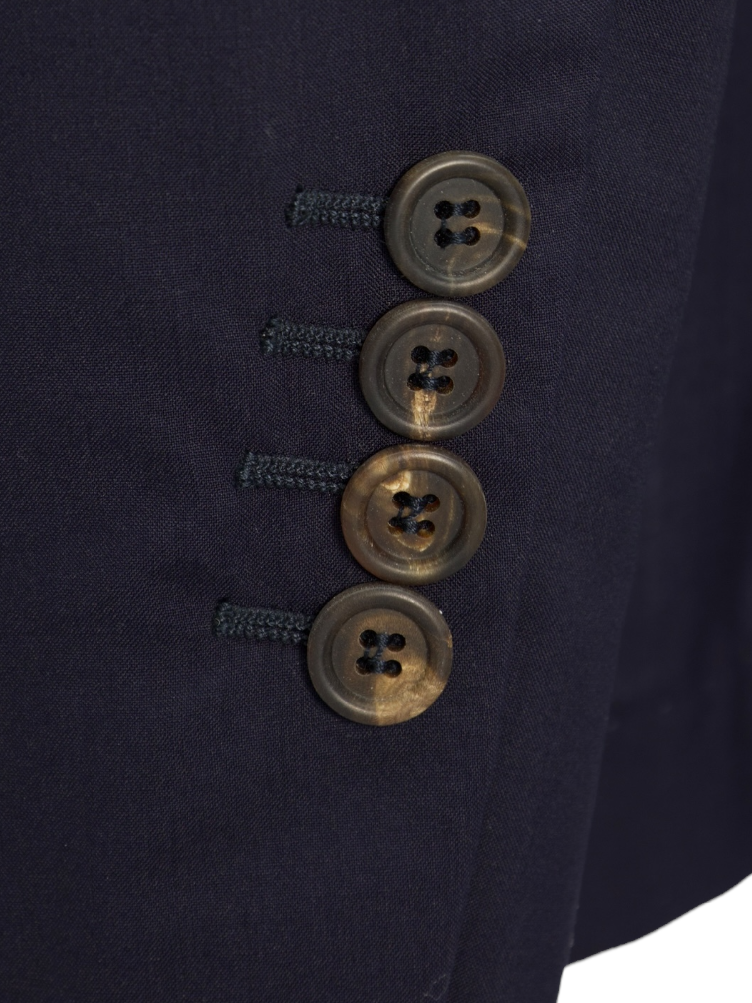 Diagonal placed buttonholes - quintessential Brunello Cucinelli detail. Functioning kissing buttons - Also known as stacked buttons or waterfall buttons, kissing buttons are associated with Italian tailoring as Italian tailors make their jacket sleeve buttons in the kissing style. In this style, buttons touch each other and overlap one another.