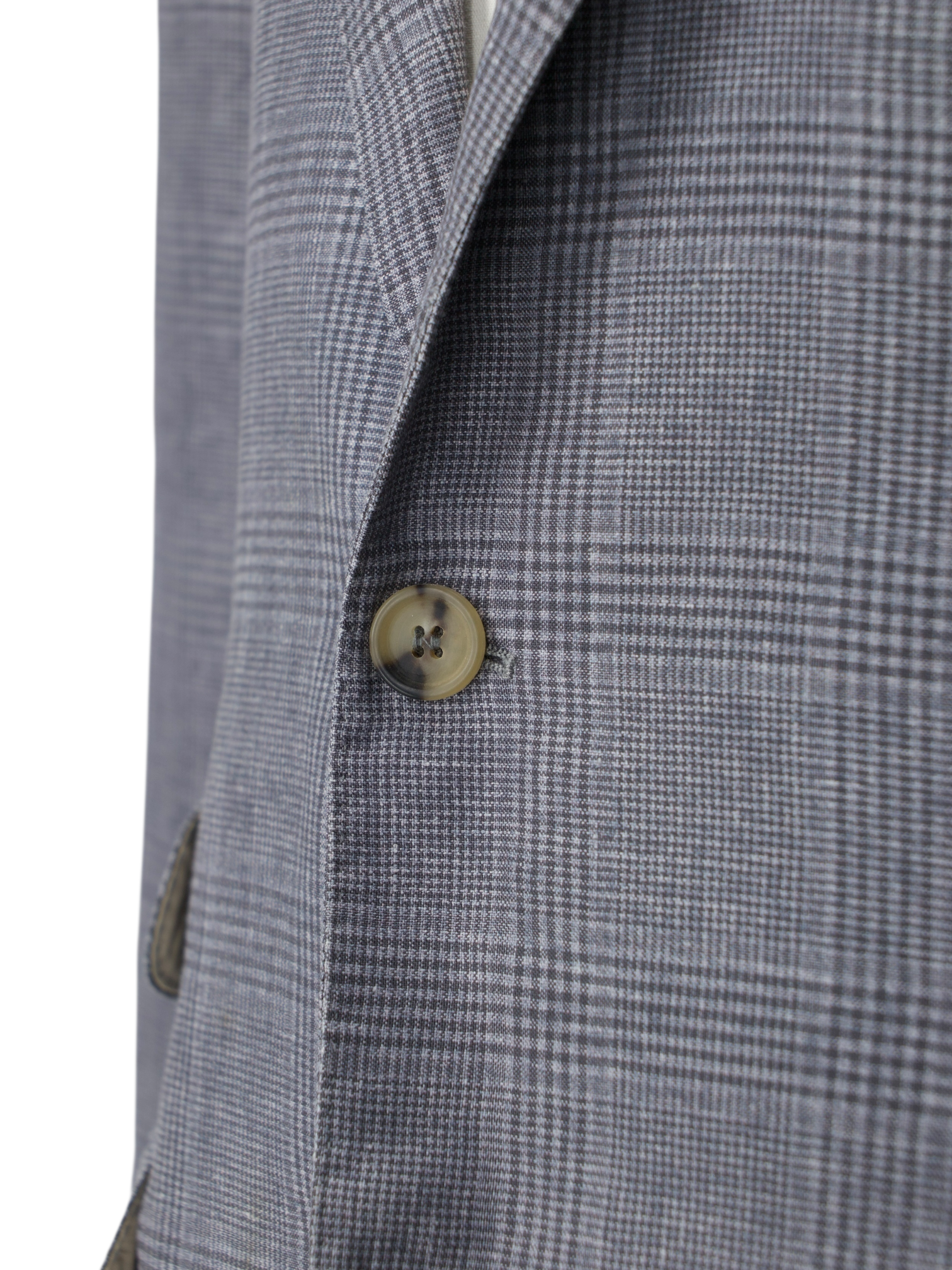 Brunello Cucinelli Sage Grey Linen, Wool & Silk Prince of Wales Jacket
