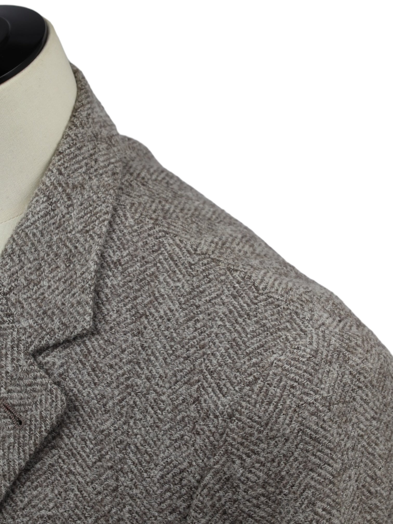 Brunello Cucinelli Taupe Wool, Alpaca & Cashmere Herringbone Jacket