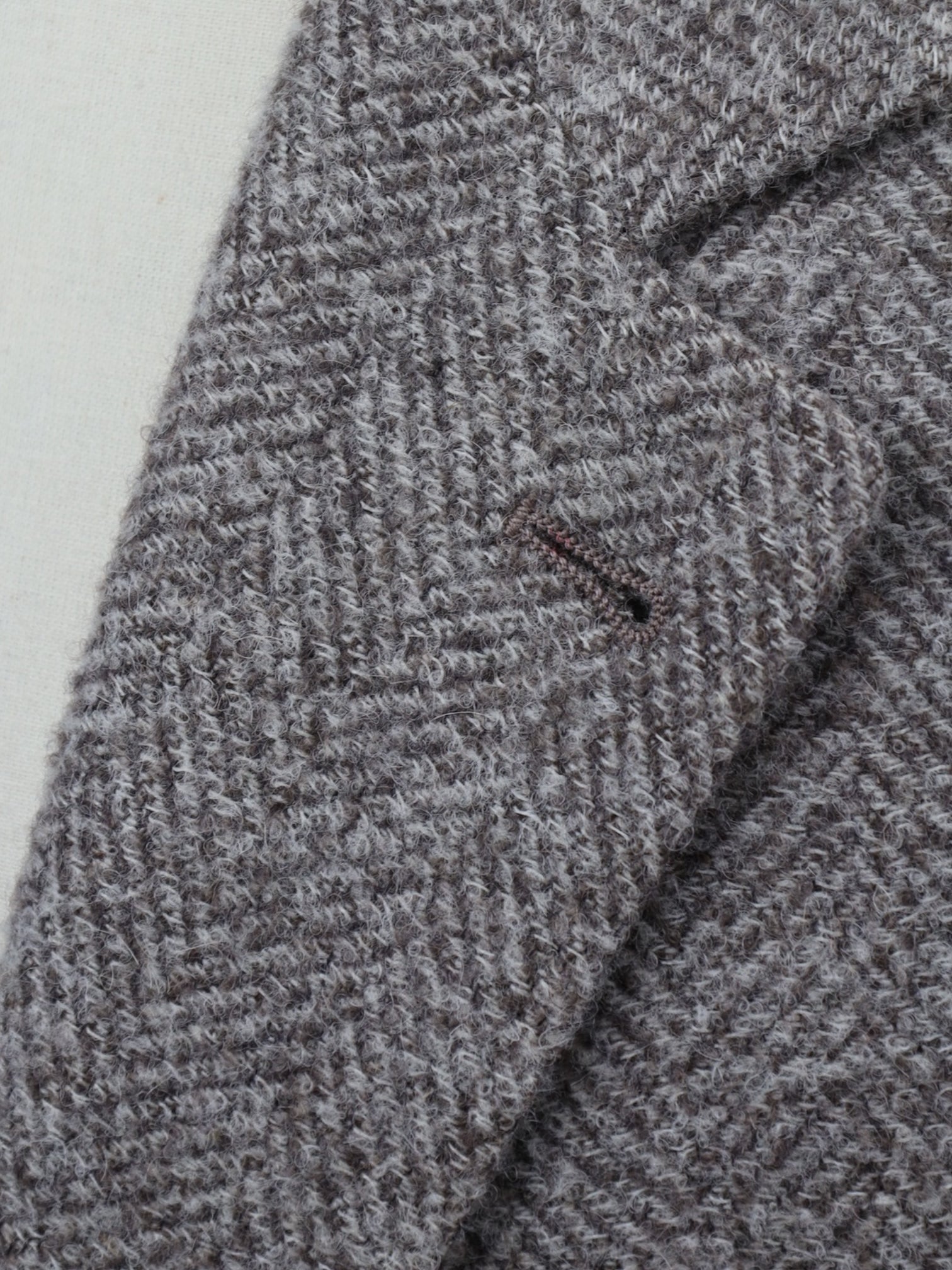 Handmade buttonholes are made using a chain of knotted loops called purl stitches that make them strong and visually distinctive. It takes about five seconds to sew a regular buttonhole with a machine – a single handmade buttonhole takes about 10 minutes to sew.