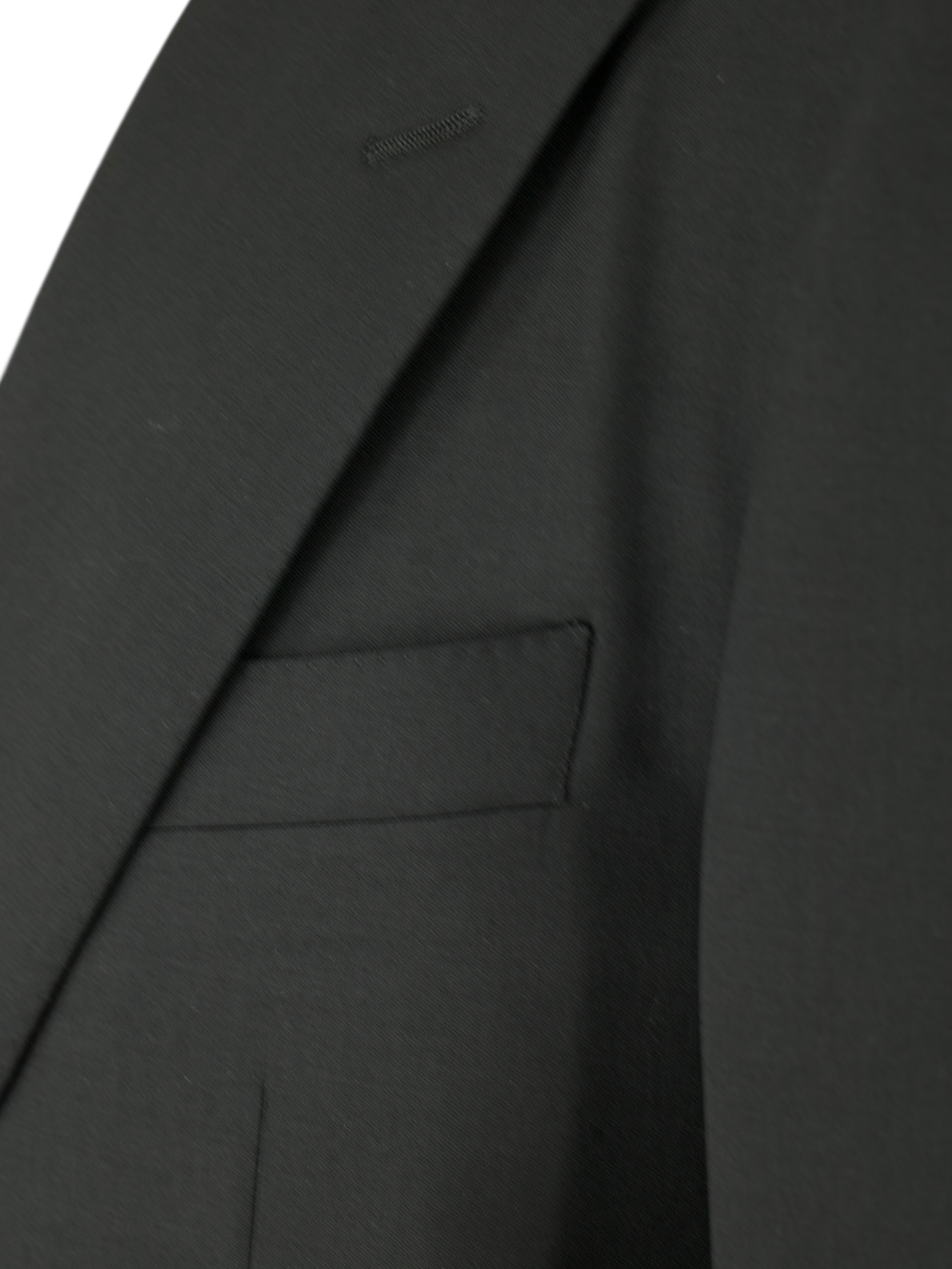 Discover the formal poise of this Canali ceremonial lounge jacket, cut from fine black wool that provides a smooth, refined drape with a discreet luster. Designed with peak lapels, flap pockets, and a structured fit, it is a jacket made specifically for weddings and ceremonial daytime events. While it follows the same codes as a traditional morning ensemble, this lounge jacket offers a more modern and versatile option, pairing elegantly with striped formal trousers and a waistcoat to complete the look.