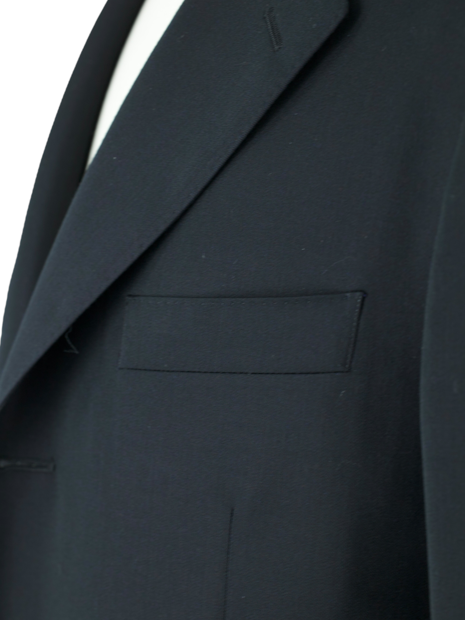 The barchetta pocket is often thought to be a tailoring detail exclusively from Italy. The word “barchetta” is Italian for “little boat.” It describes how the pocket floats on the chest, gently angled upwards, like the bow of a sailboat.