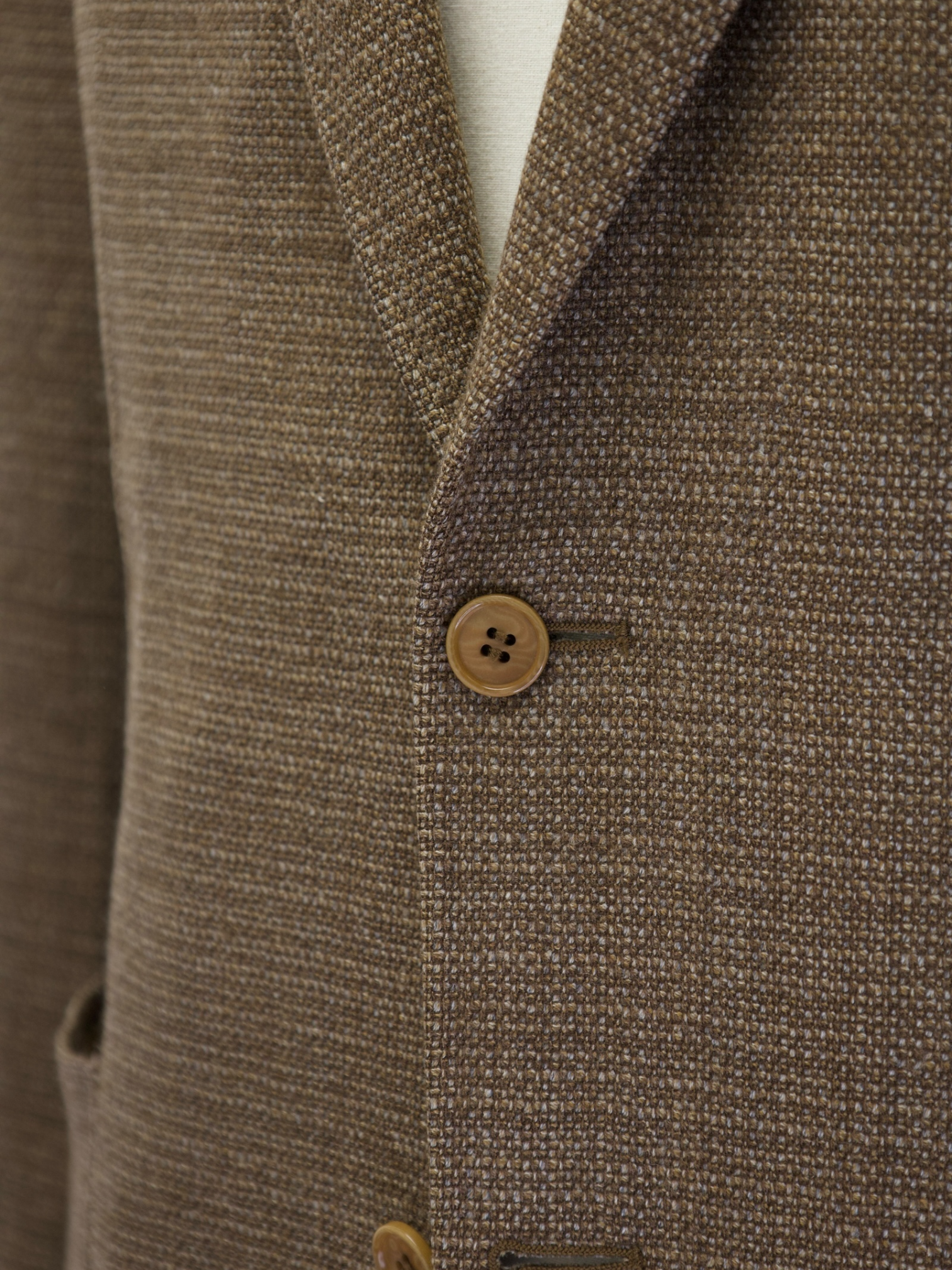 A sartorial jacket - or coat - needs an interlining that will help give it shape and mold it. Canvas gives the item a tailored and crafted look. In short, it breathes life into it. Purely technical, canvas is made from either horsehair, wool, mohair or camel hair. It could also be a mix of them all, with varying thickness and weight. The canvas is stitched to the jacket, often by hand, thus making the canvas pieces 'floating' in the middle of the inner and outer cloth. This gives the jacket added flexibility. The canvas runs from the upper parts, all the way down to the end of the jacket. After you wear your canvassed suit for a while, it will begin to take your shape and look incredibly natural.