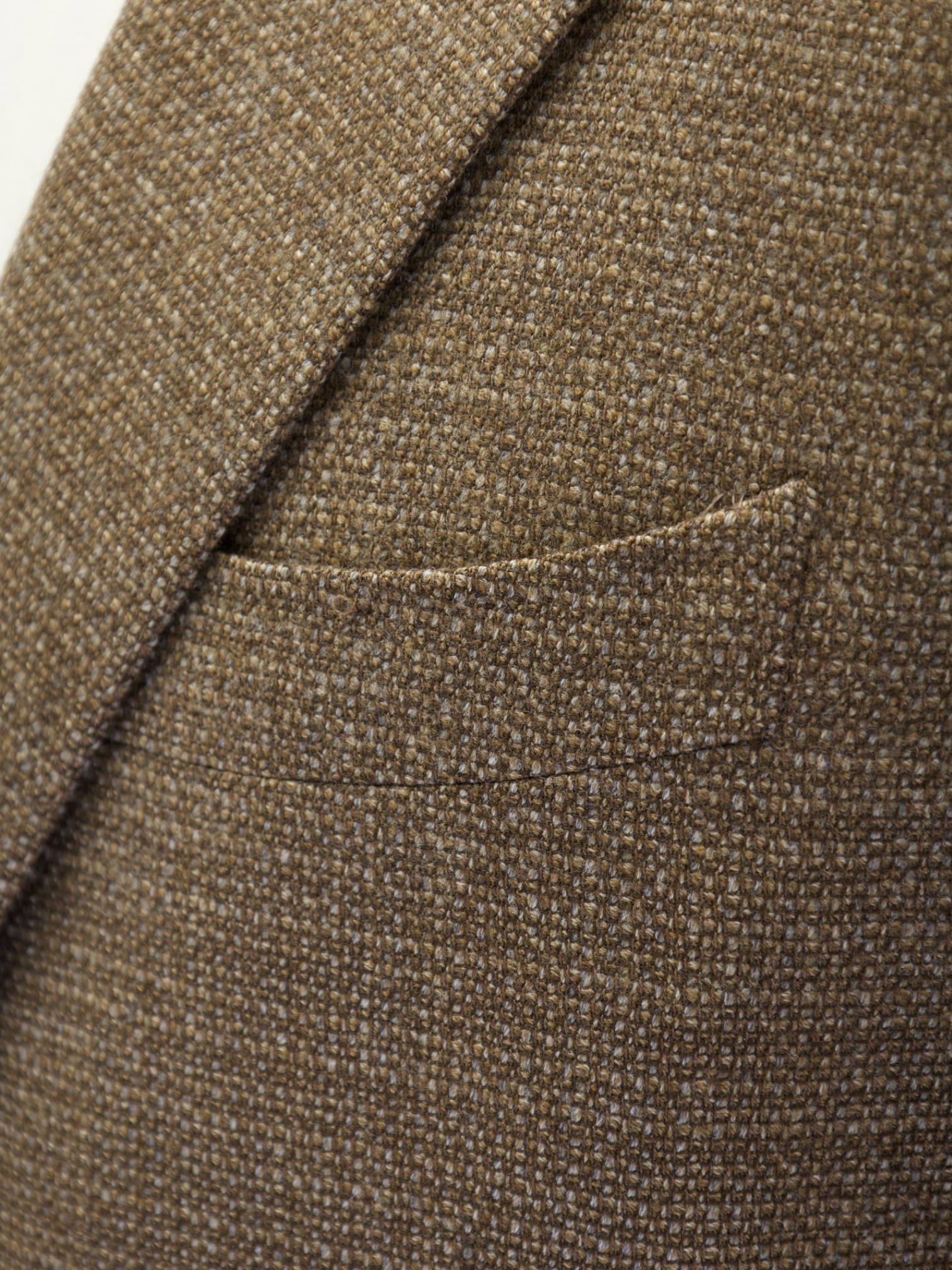 The barchetta chest pocket is not only curved and blunted, as in the southern Italian style, but the corner is rounder right off.