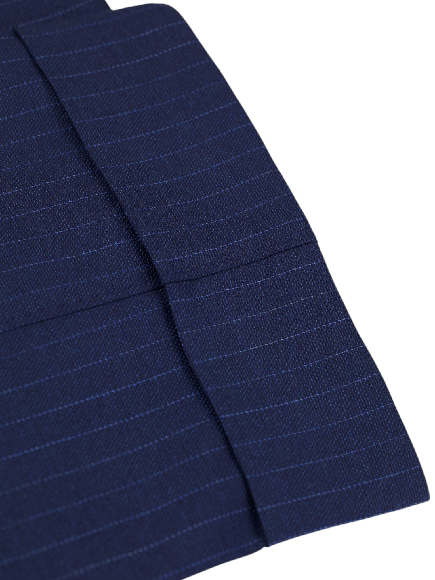 The turn-up hem, or cuffed hem, is a classic style where the fabric at the bottom of the trousers is folded outward to create a visible cuff. This style originated with Edward VII in the late 19th century, who had his trousers tailored with cuffs to prevent them from getting muddy, sparking a trend among the fashionable elite. In the 1920s and 1930s, turn-ups became a symbol of wealth and sophistication, as having extra fabric was seen as a luxury. This association continued after World War II when wearing turn-ups subtly indicated affluence in an era of fabric rationing. Today, turn-up hems are a nod to their historical roots, offering a touch of classic elegance and enhancing the overall appearance of formal and tailored trousers.