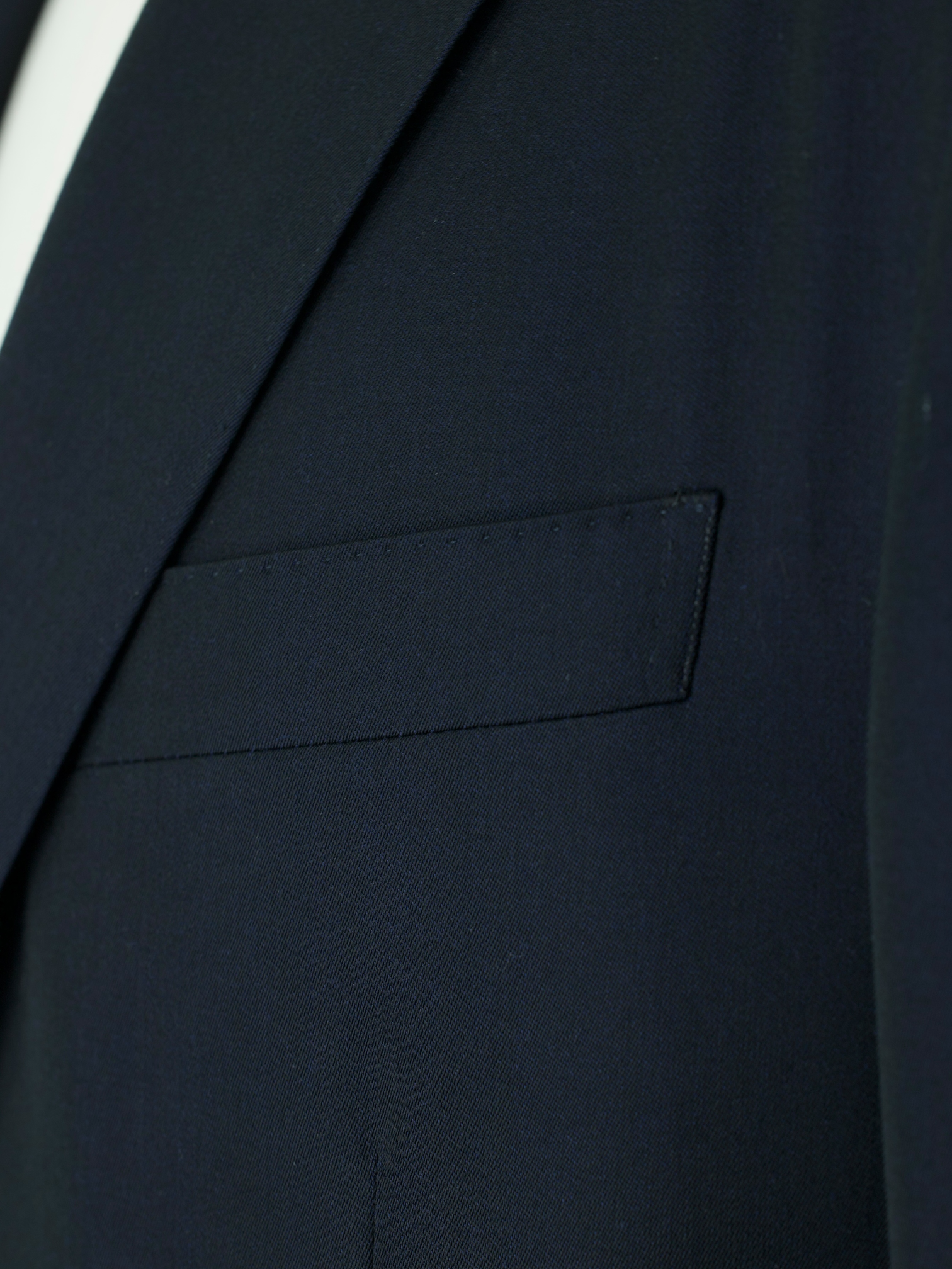 The barchetta pocket is often thought to be a tailoring detail exclusively from Italy. The word “barchetta” is Italian for “little boat.” It describes how the pocket floats on the chest, gently angled upwards, like the bow of a sailboat.