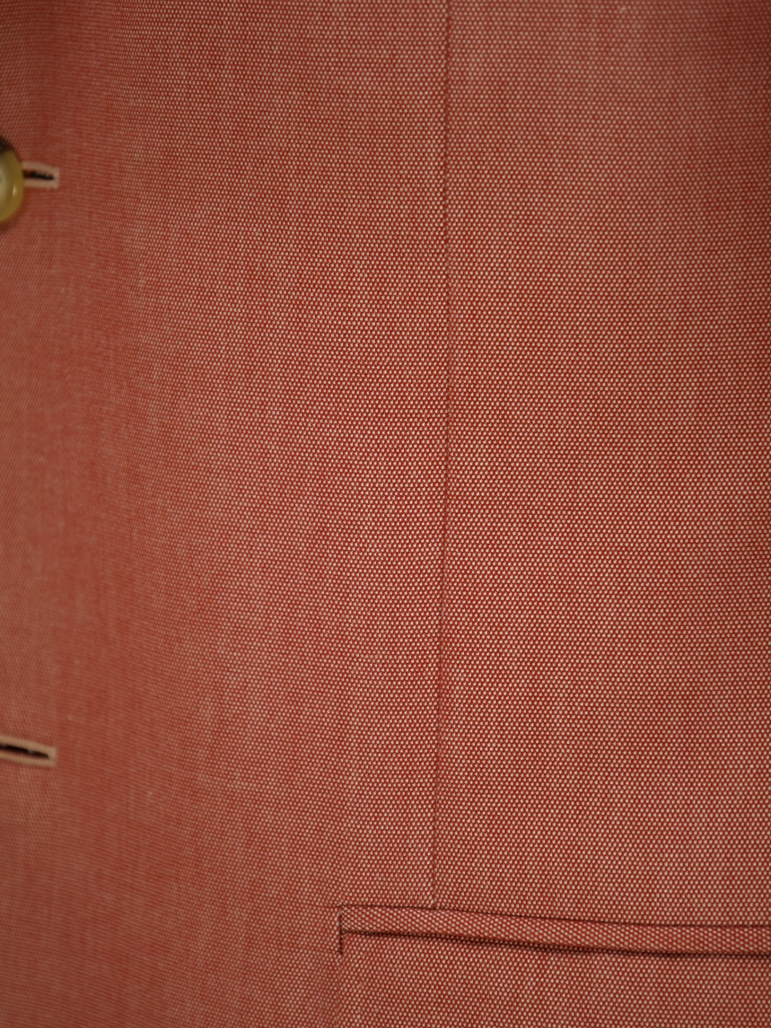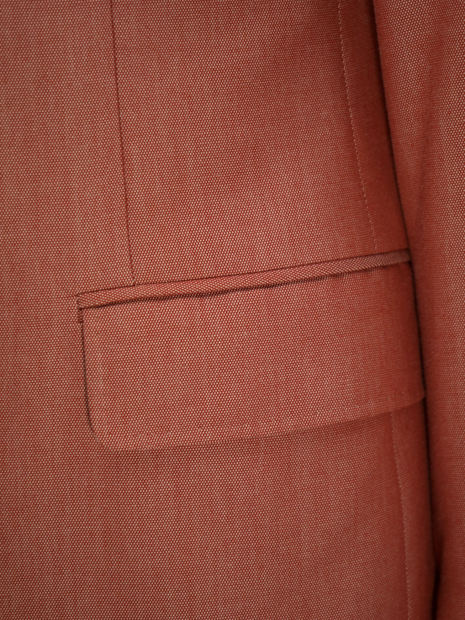 The barchetta chest pocket is not only curved and blunted, as in the southern Italian style, but the corner is rounder right off.