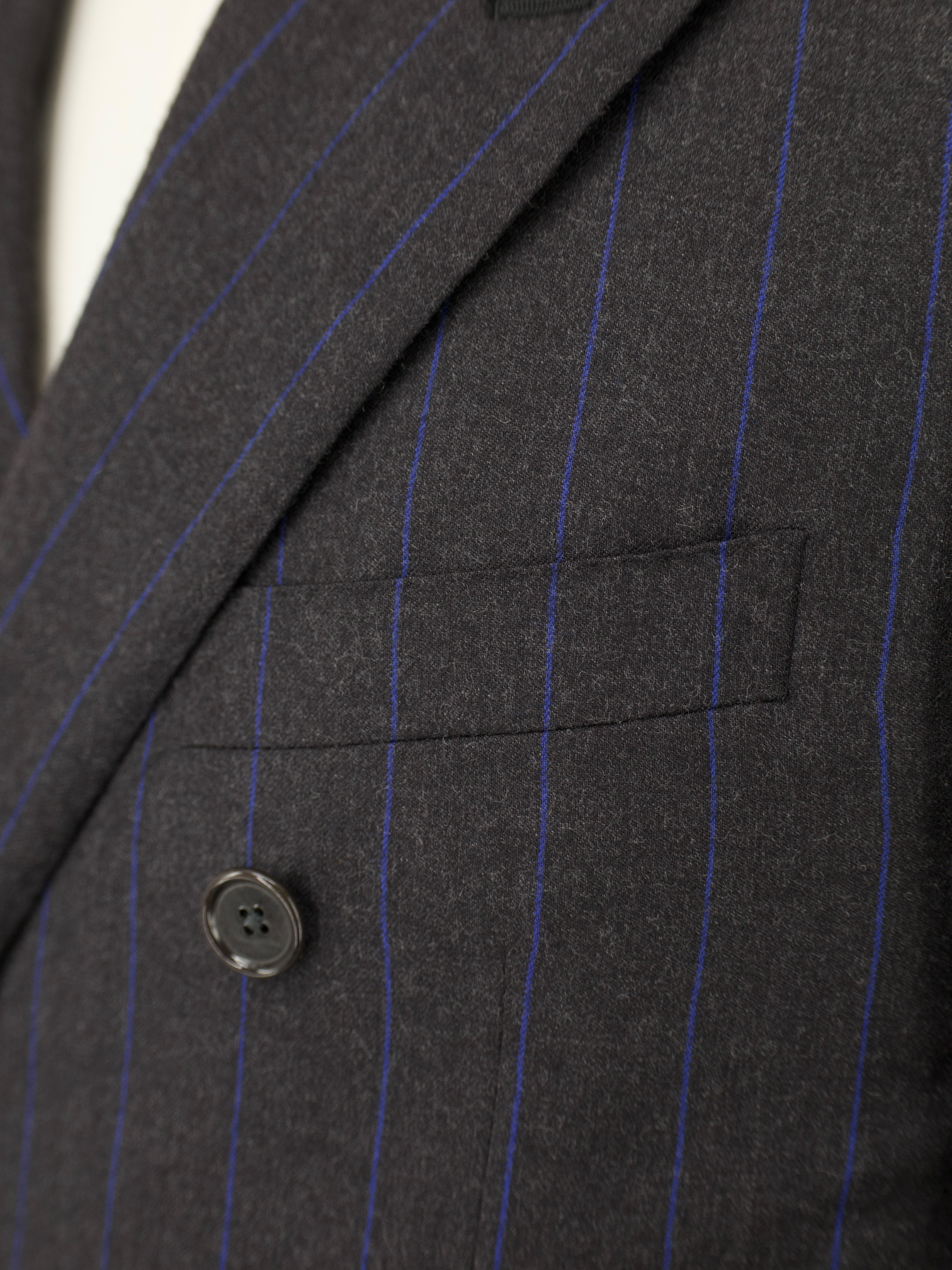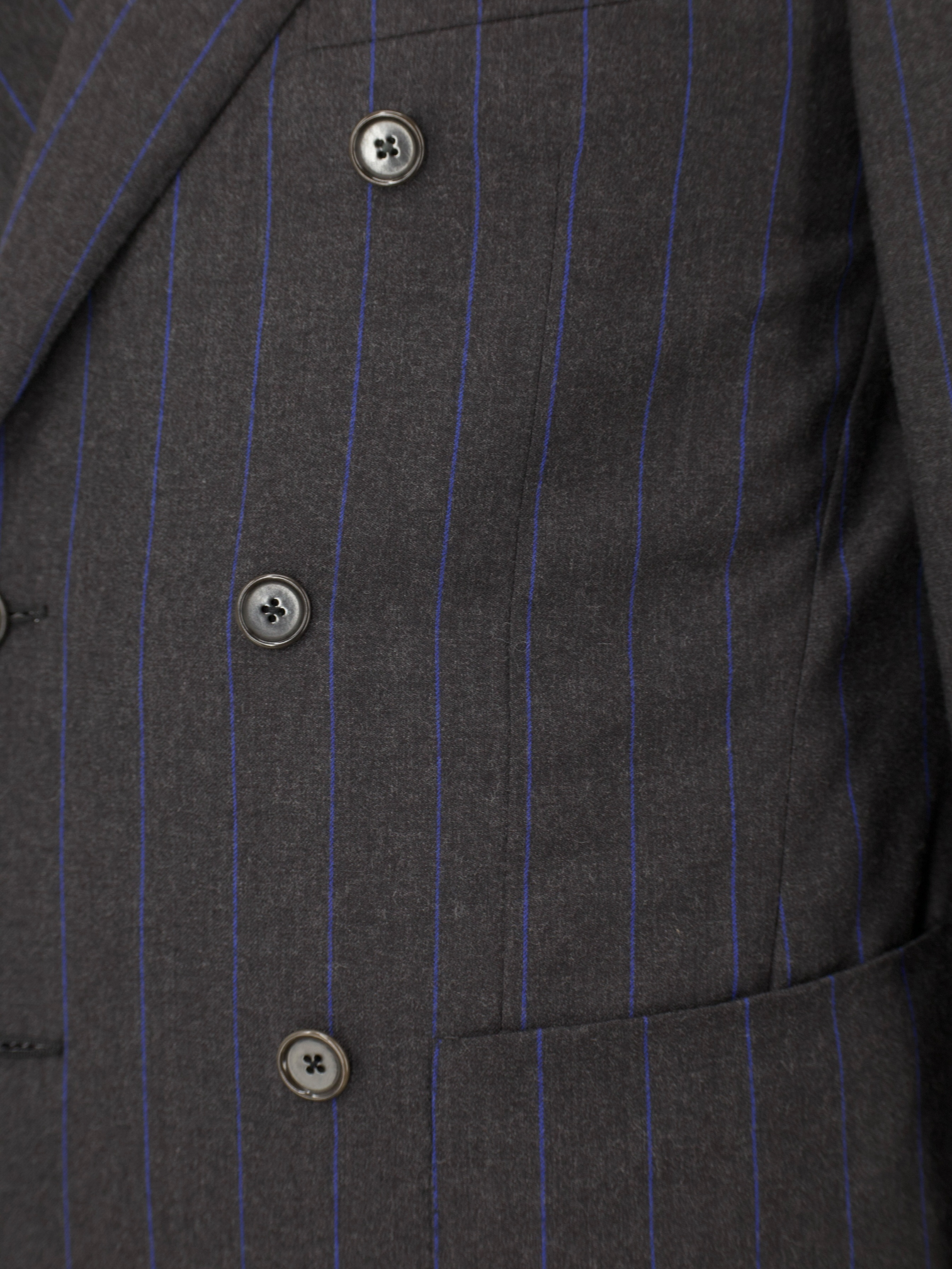 Caruso Anthracite & Azure Blue Wool Flannel Double-Breasted Pinstripe Suit