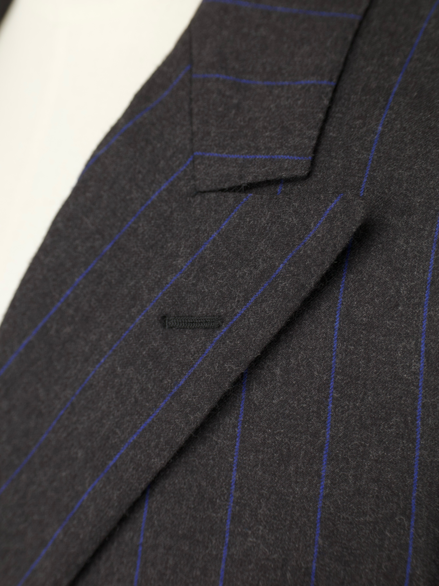 Handmade buttonholes are made using a chain of knotted loops called purl stitches that make them strong and visually distinctive. It takes about five seconds to sew a regular buttonhole with a machine – a single handmade buttonhole takes about 10 minutes to sew.