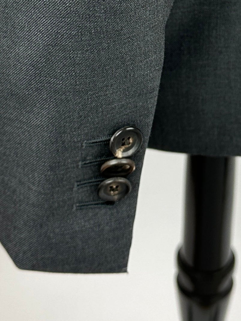 Also known as stacked buttons or waterfall buttons, kissing buttons are associated with Italian tailoring as Italian tailors make their jacket sleeve buttons in the kissing style. In this style, buttons touch each other and overlap one another. Handmade buttonholes; Even this step, apparently the simplest, is treated with an abundance of detail. Attaching the buttons is a job that requires patience and must be completed to perfection.