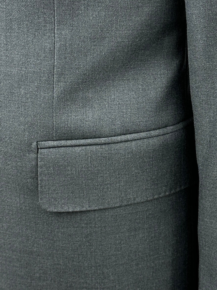 Also known as ‘barchetta’ Italian for ‘little boat’, it is so named because this pocket floats on the chest gently angled upward, just like the bow of a sailboat. These pockets echo the lively roll of a lapel that carries the spring of canvas and natural wool, unlike machine-made chest pockets that have a more stamped-out, rectangular shape and less life.