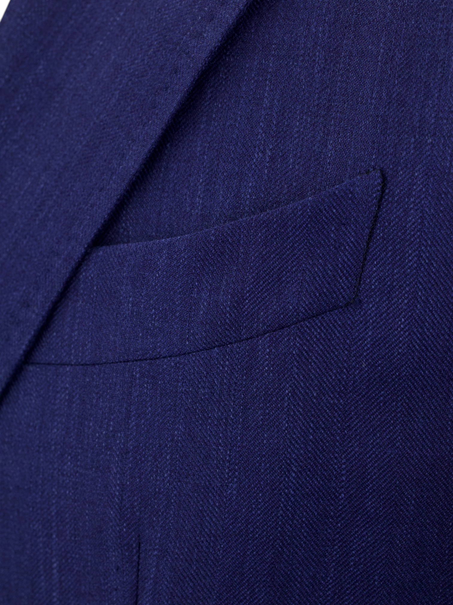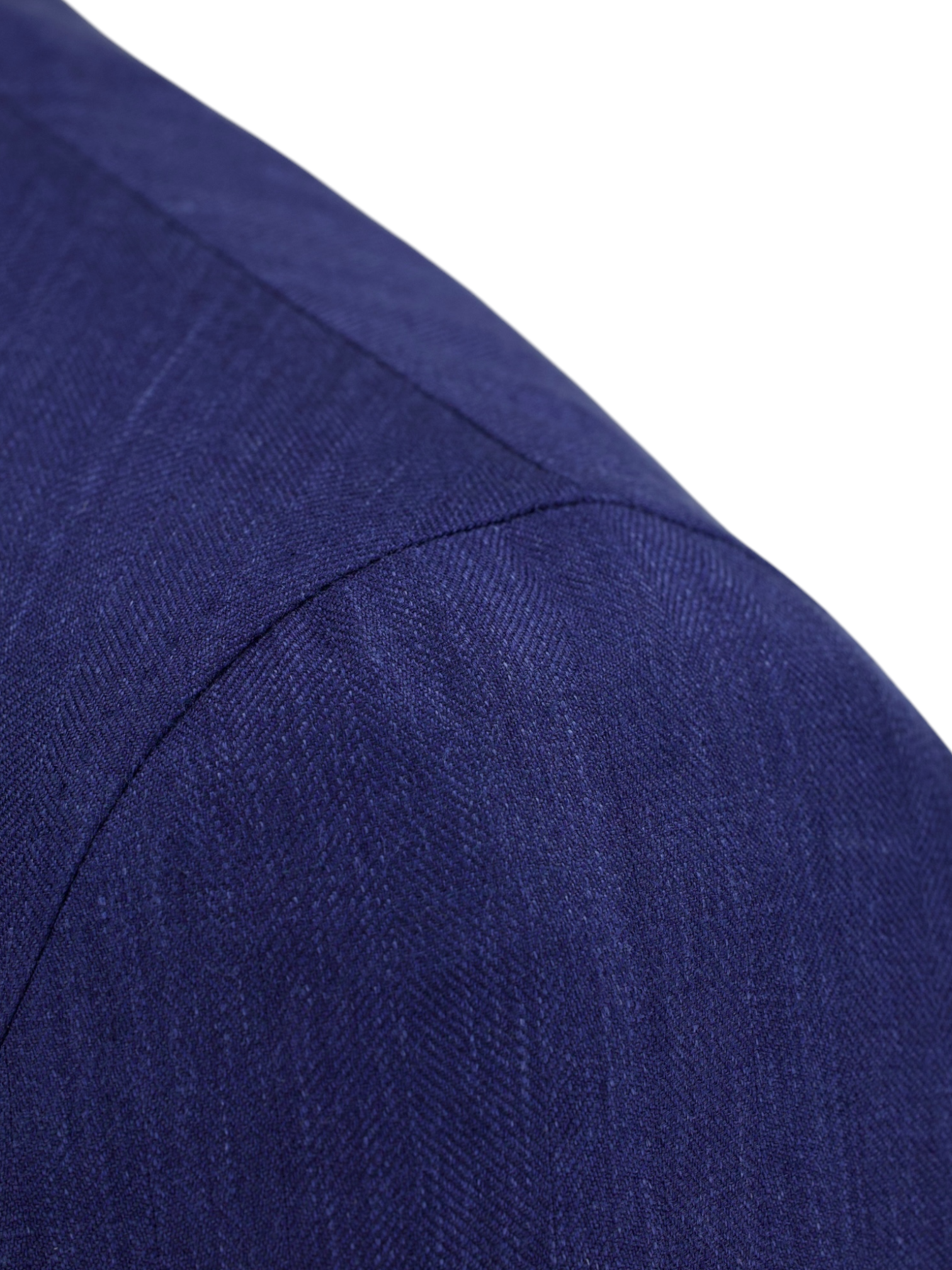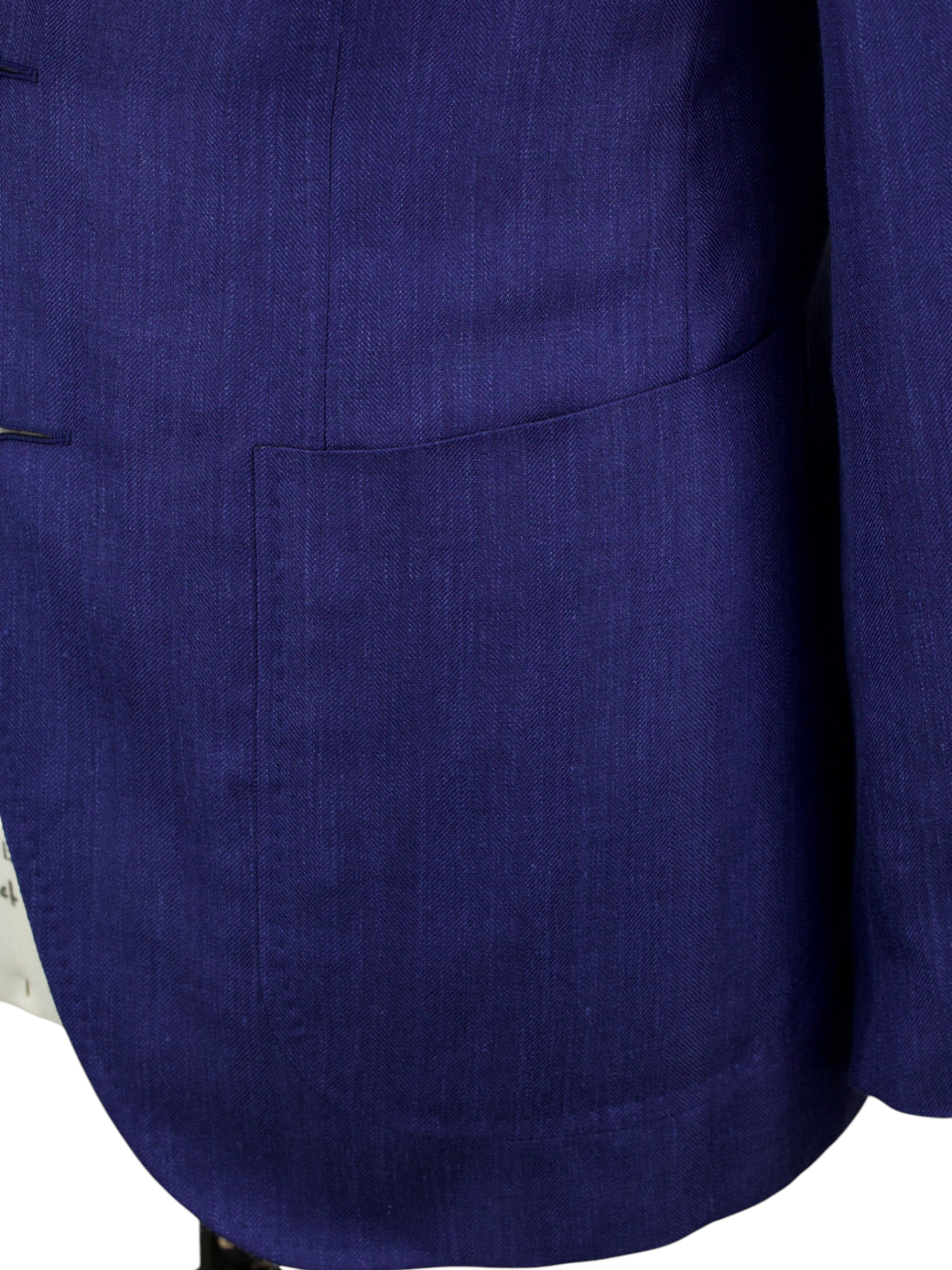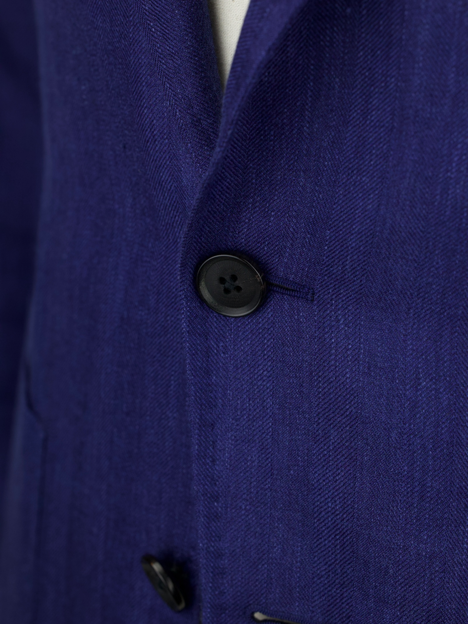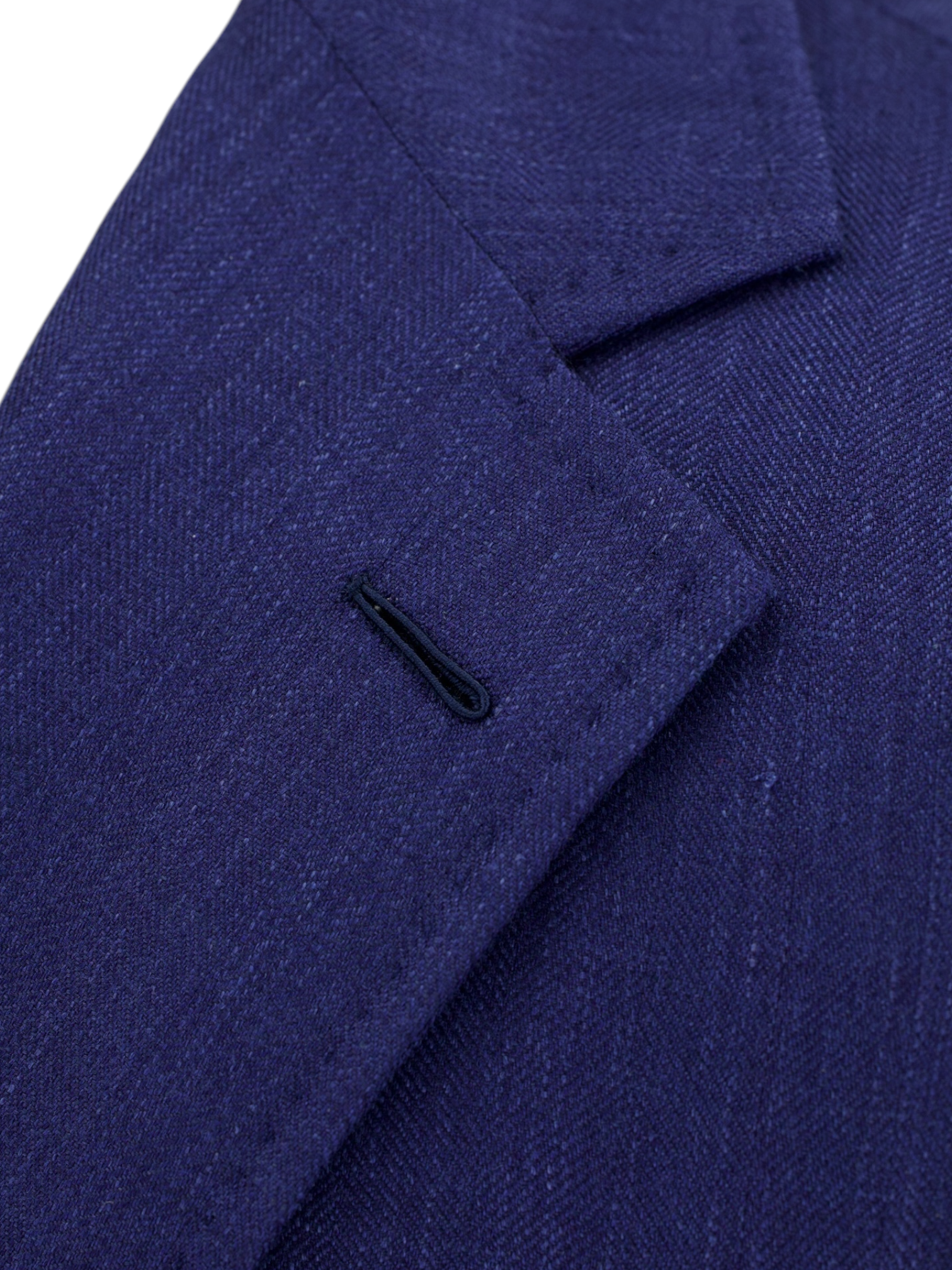 Caruso Azure Blue Wool, Silk & Linen Herringbone "Aida" Jacket