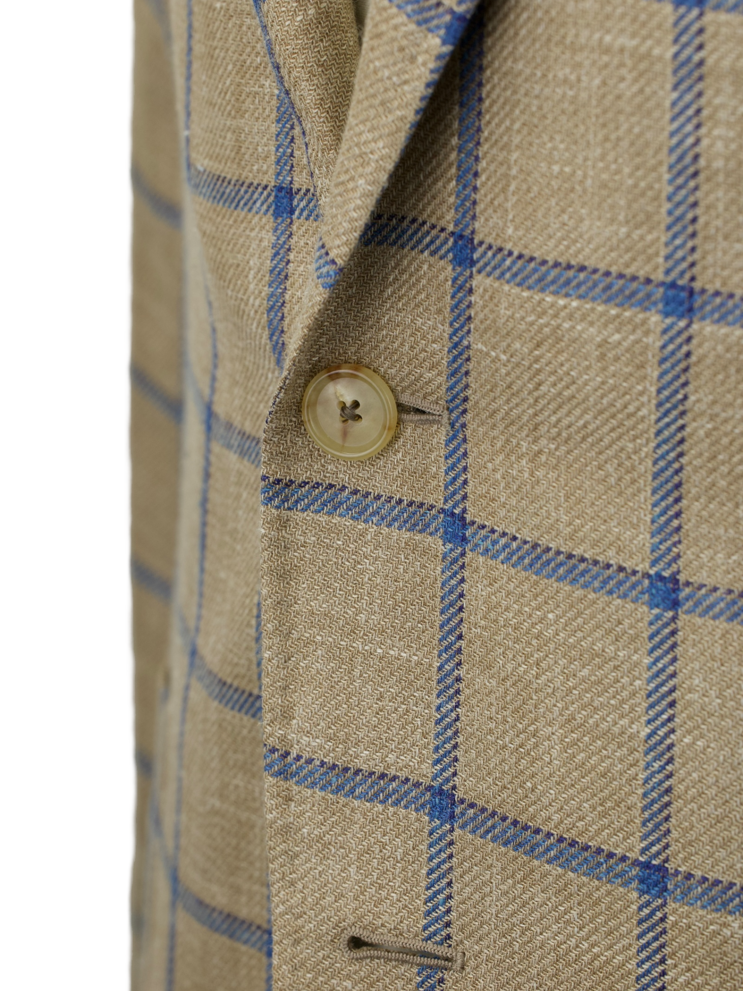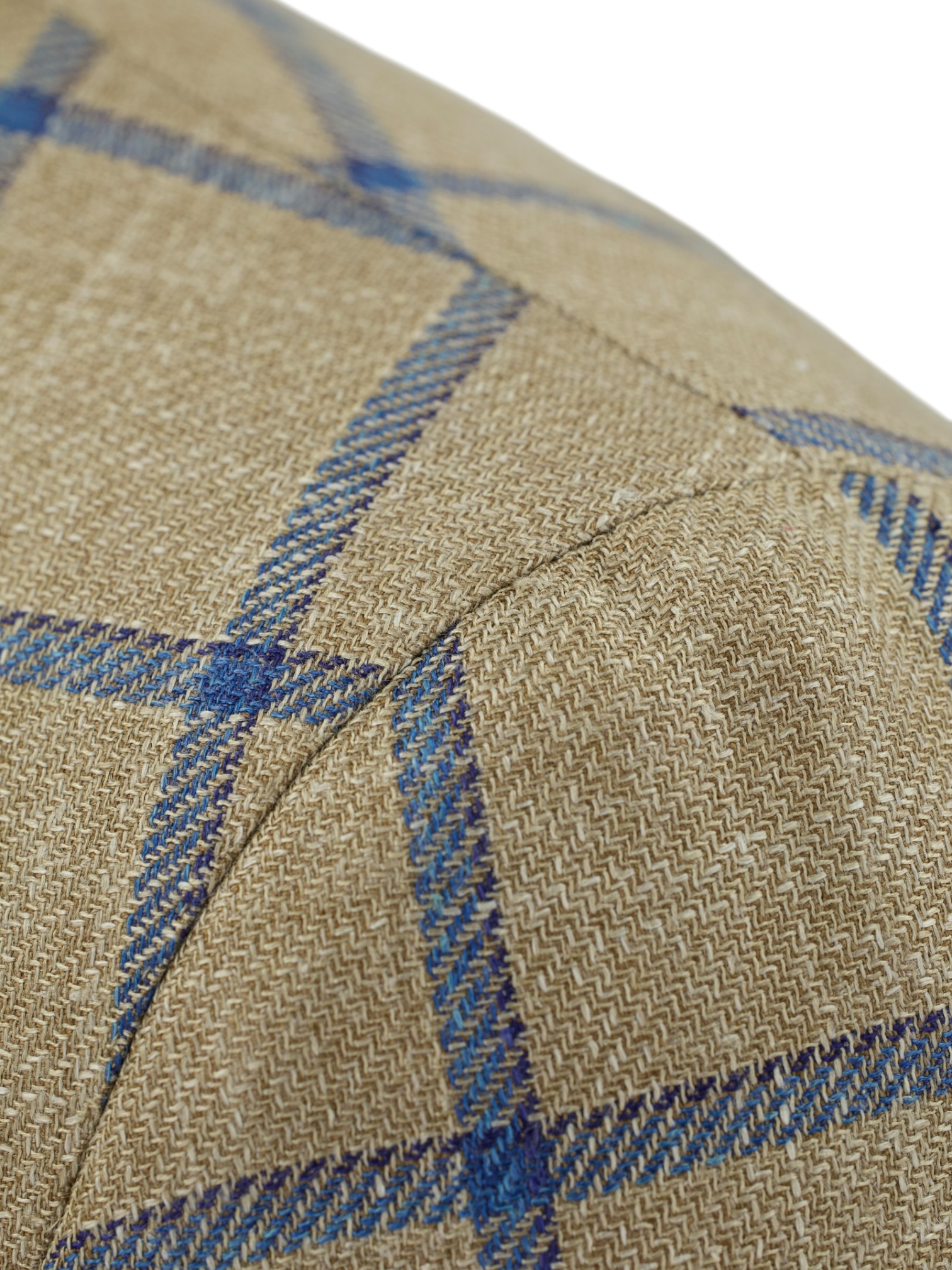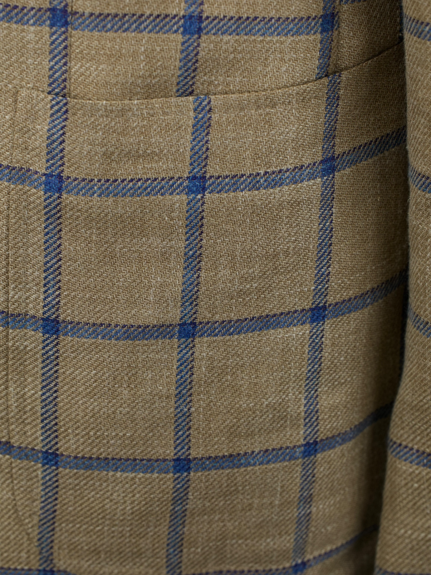 Caruso Beige & Blue Wool, Silk & Linen Windowpane Boheme Jacket