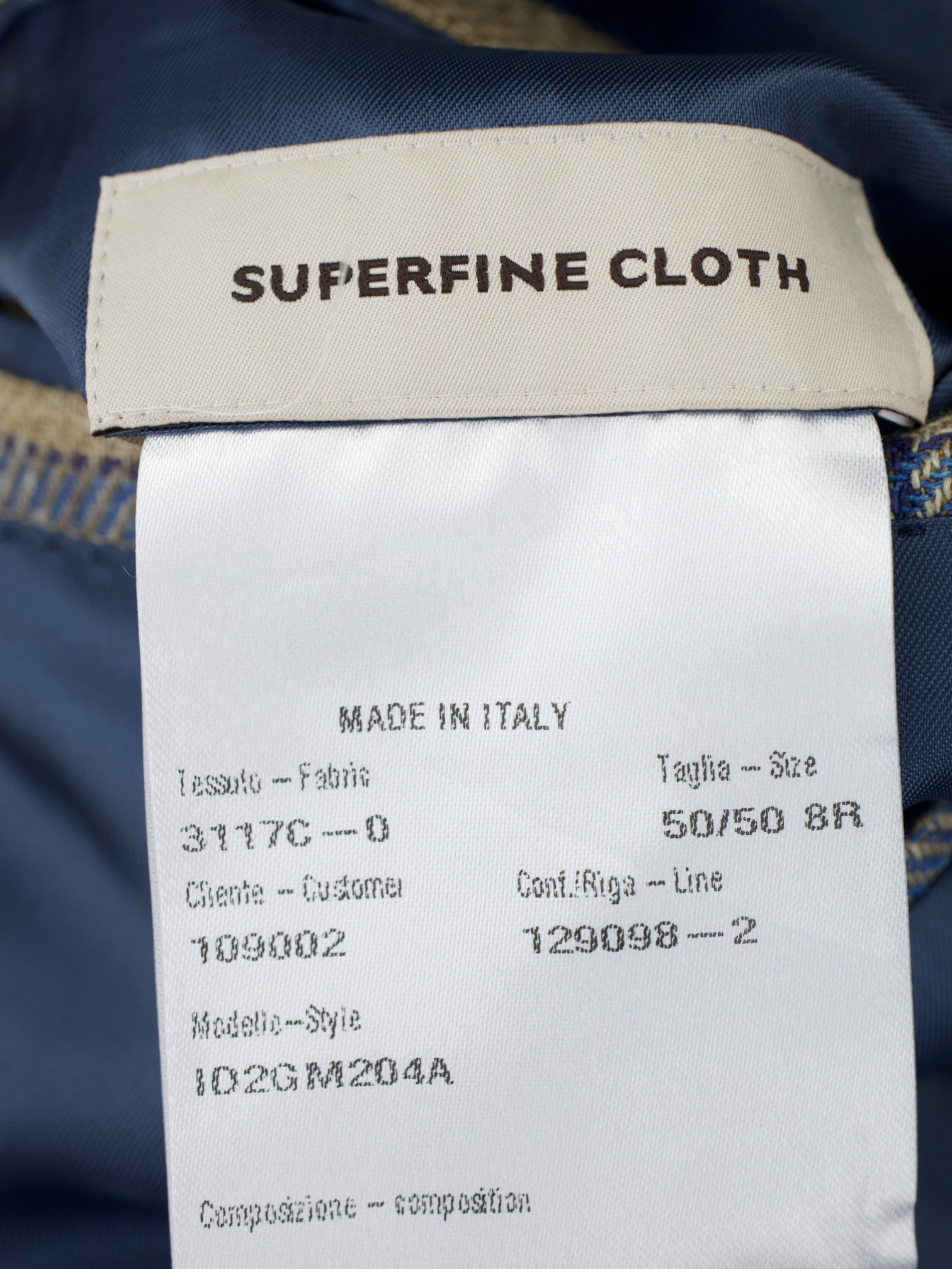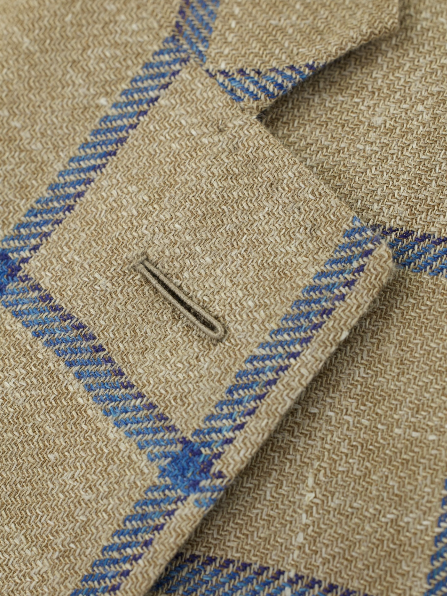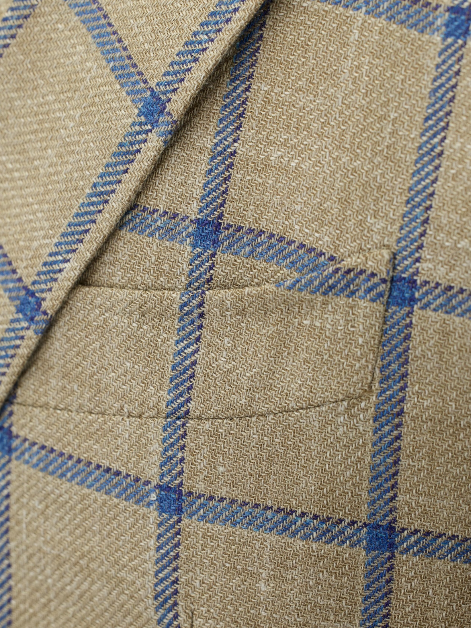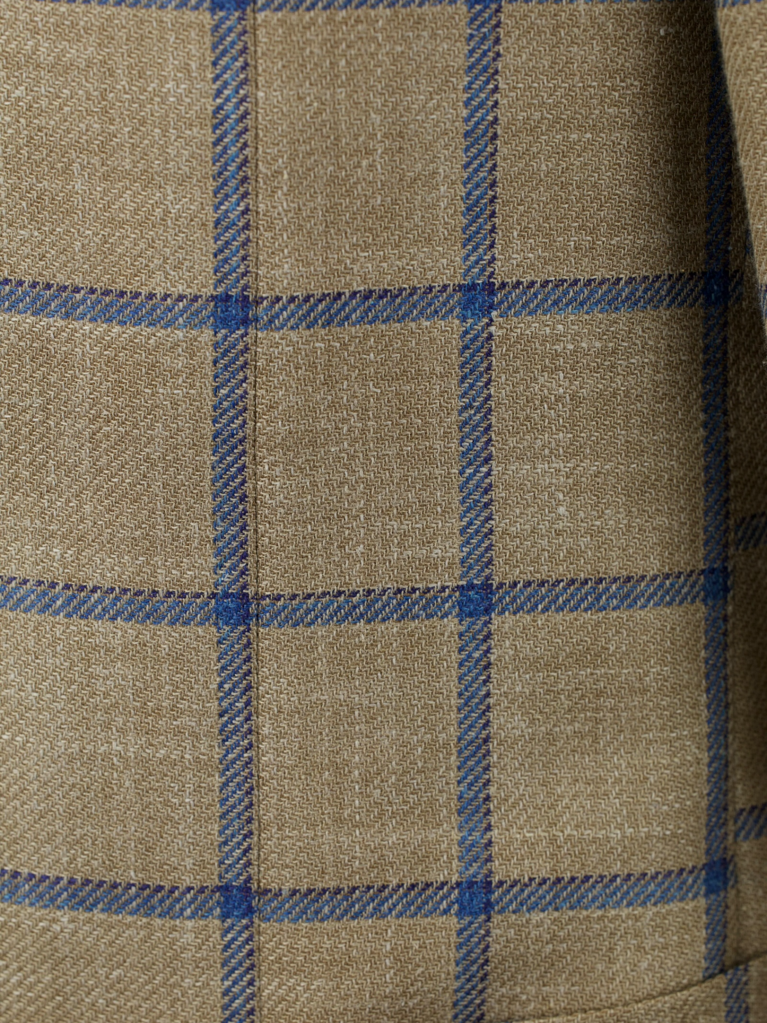 Caruso Beige & Blue Wool, Silk & Linen Windowpane Boheme Jacket