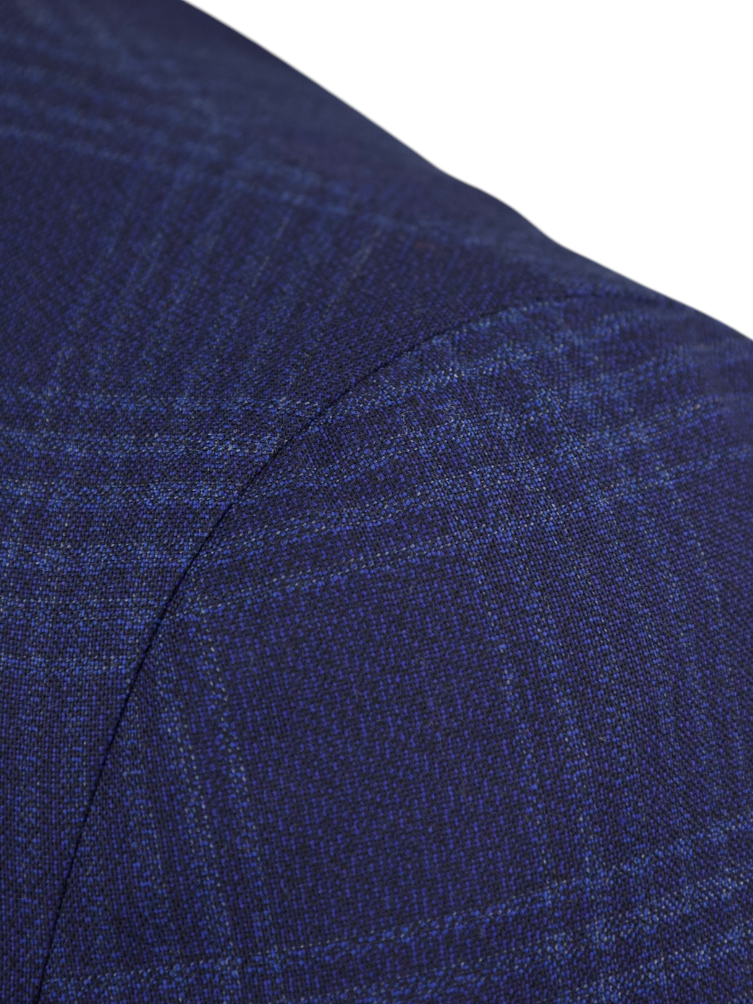 The jacket features a classic Glenplaid pattern in a serene blue palette, embodying elegance and versatility. This traditional pattern is a mark of classic style, making the jacket suitable for a multitude of occasions, from high-level business meetings to upscale social events.