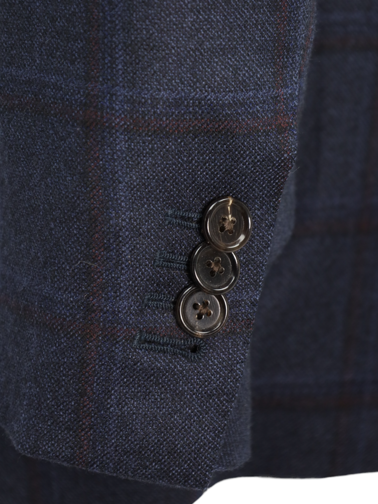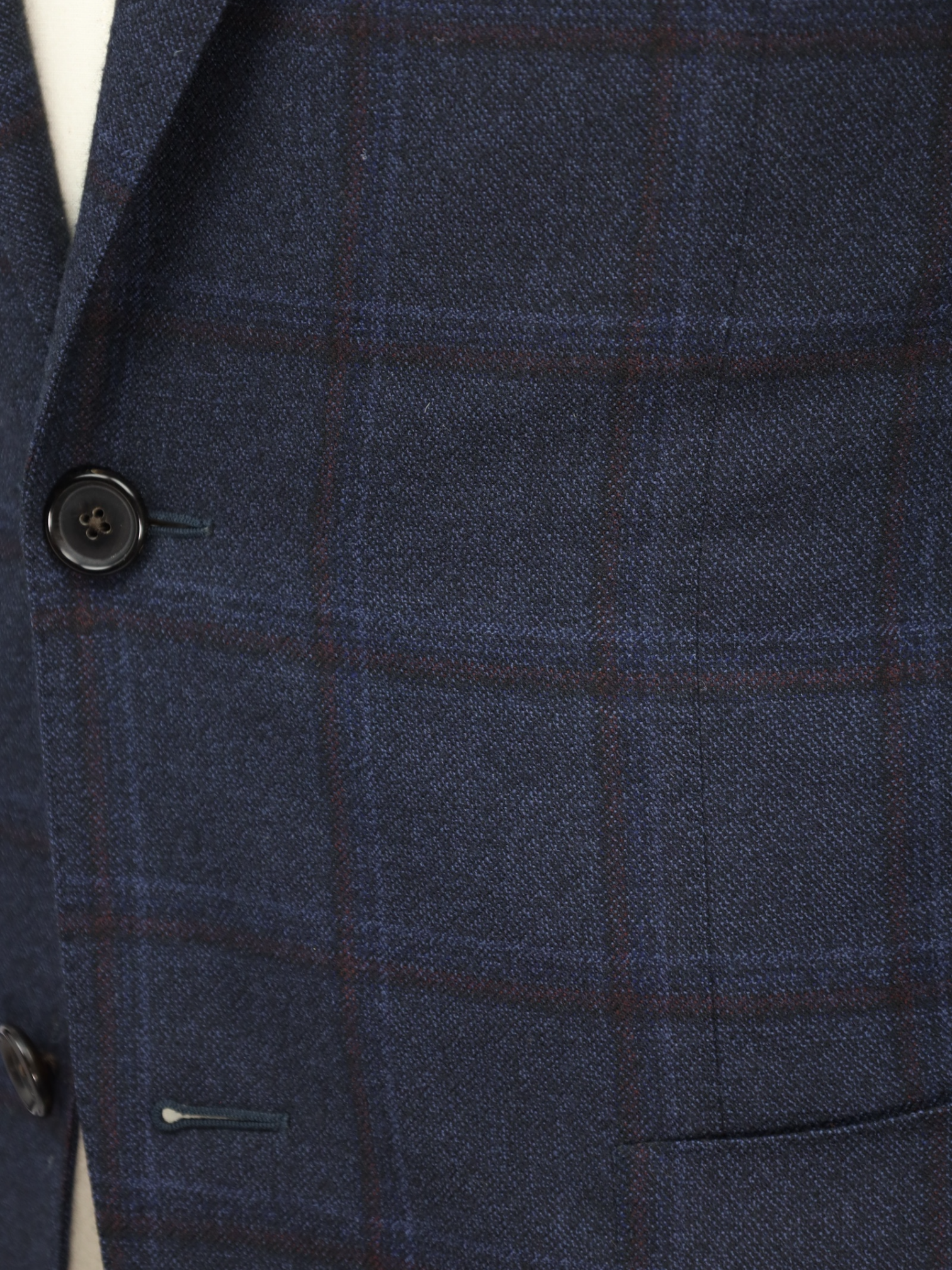 Discover the Caruso Blue Windowpane Flannel Jacket, once exclusively available per Oger Amsterdam. This elegant piece is expertly crafted from luxurious flannel, featuring a distinctive blue windowpane pattern with a subtle brown hue that enhance its visual appeal. Showcasing Caruso's mastery of Italian tailoring, this jacket combines classic design with modern sophistication. Perfect for upscale occasions or refined everyday wear, it reflects a commitment to quality and style. Discover the elaborated sartorial details below.