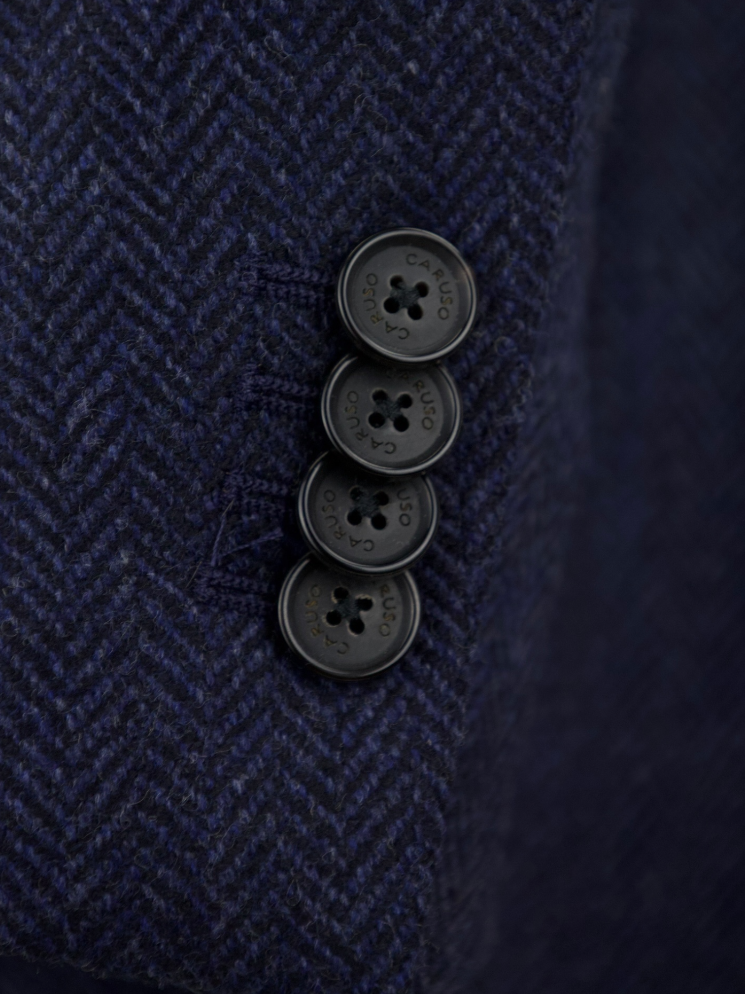 Caruso Blue Wool & Cashmere Herringbone “Butterfly” Jacket