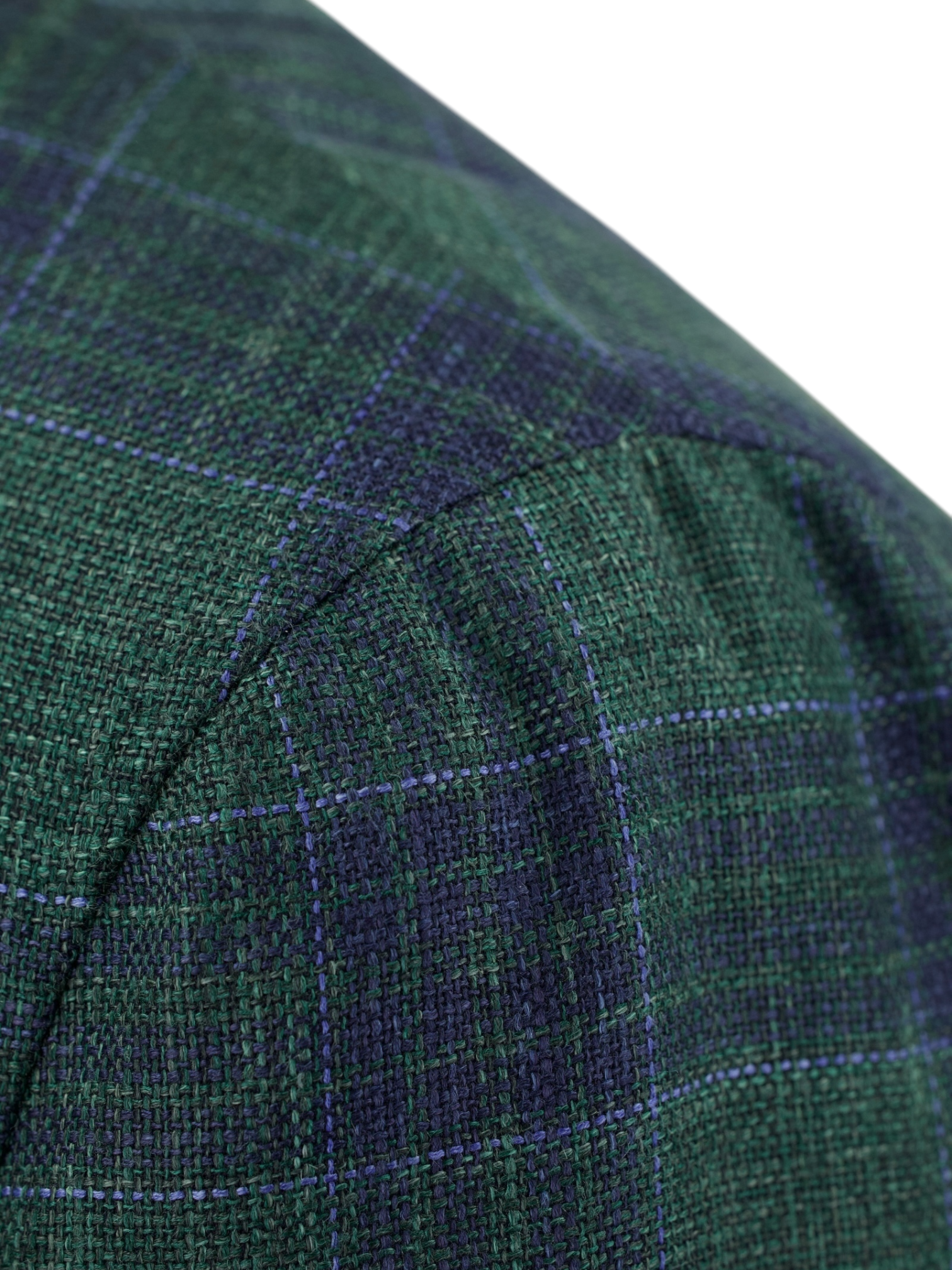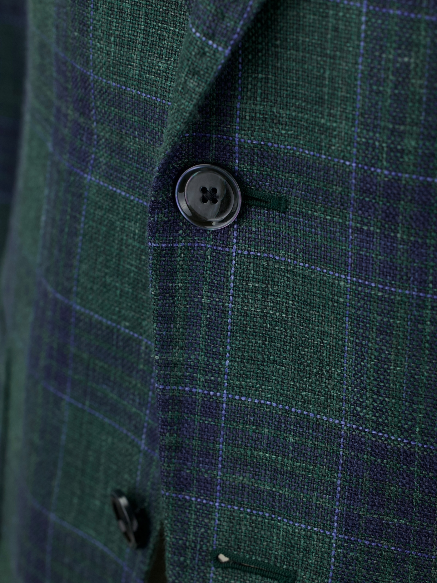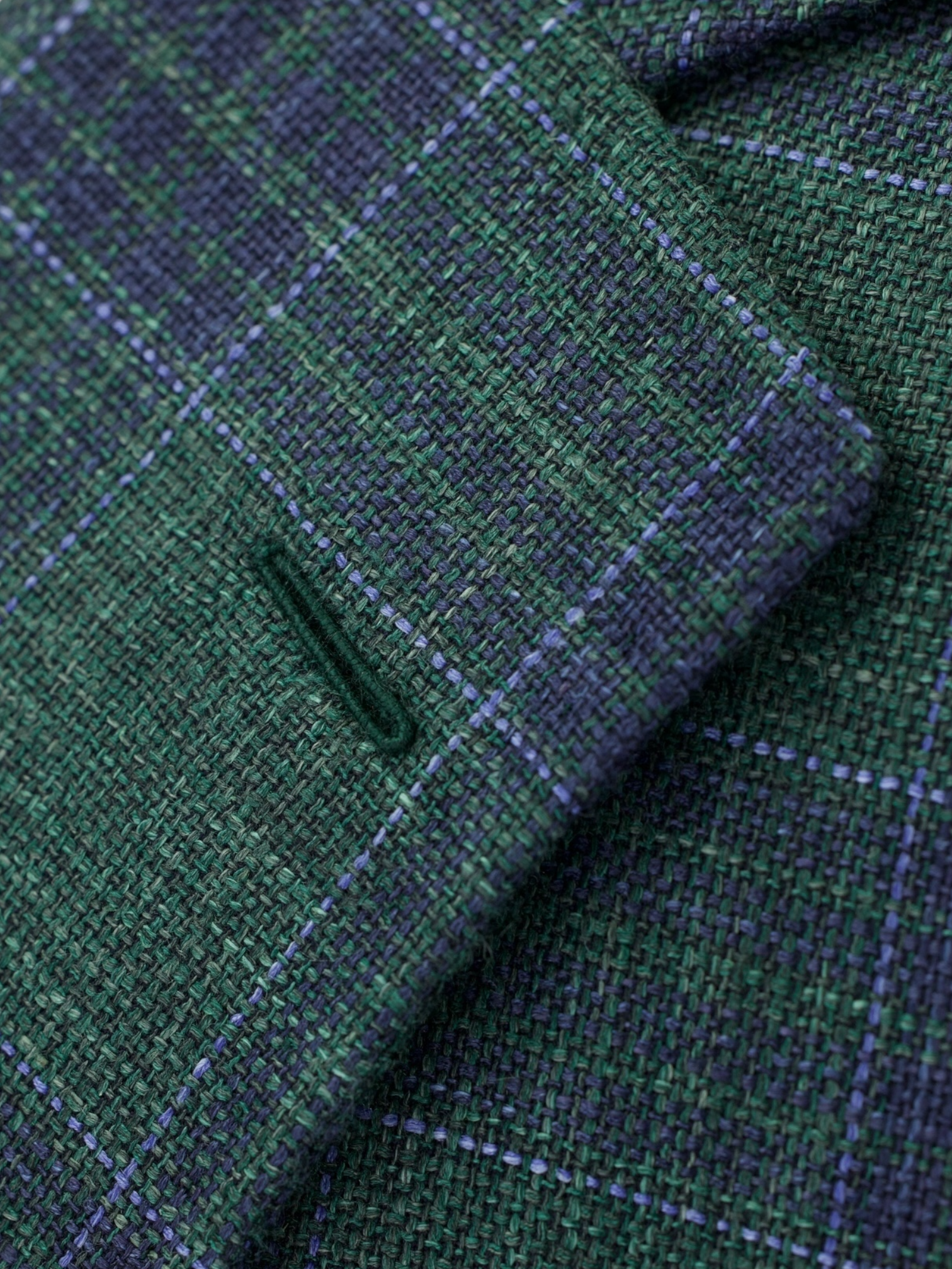 Caruso Bottle Green & Blue Wool, Silk & Linen "Summertime" Aida Jacket