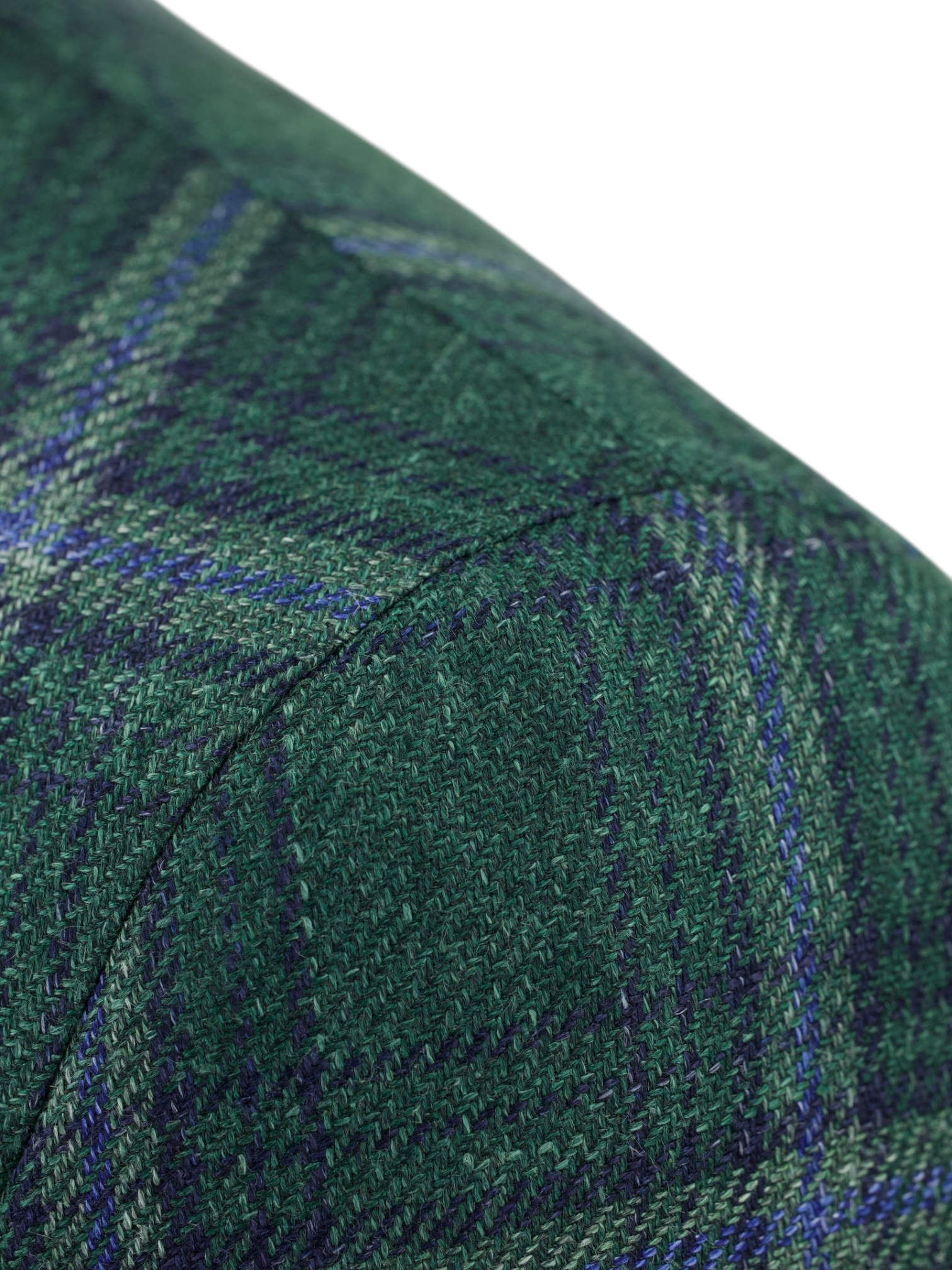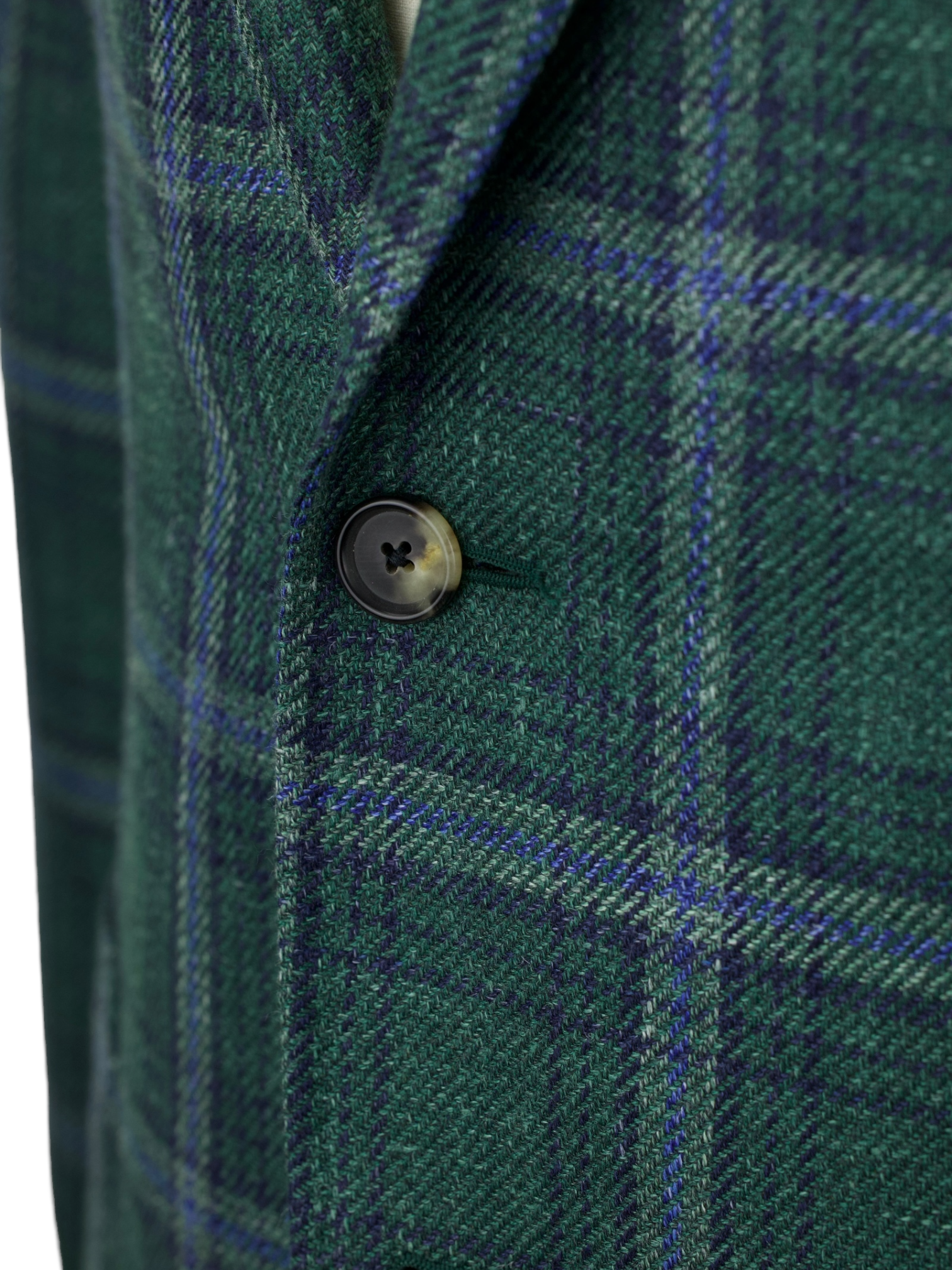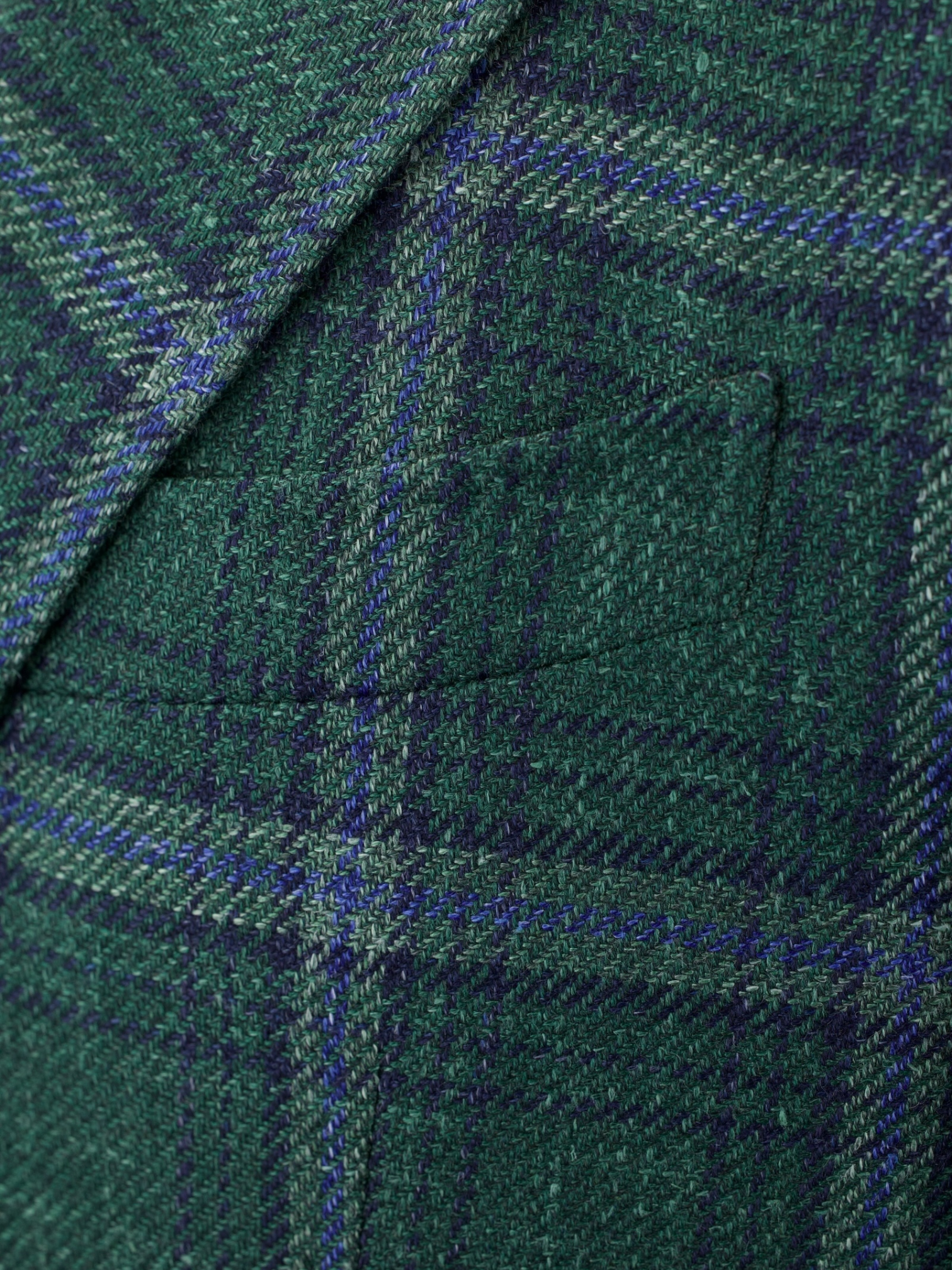 Caruso Bottle Green & Blue Wool, Silk & Linen Windowpane Boheme Jacket