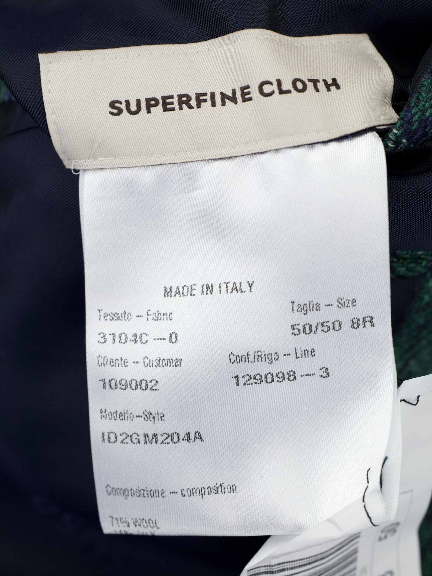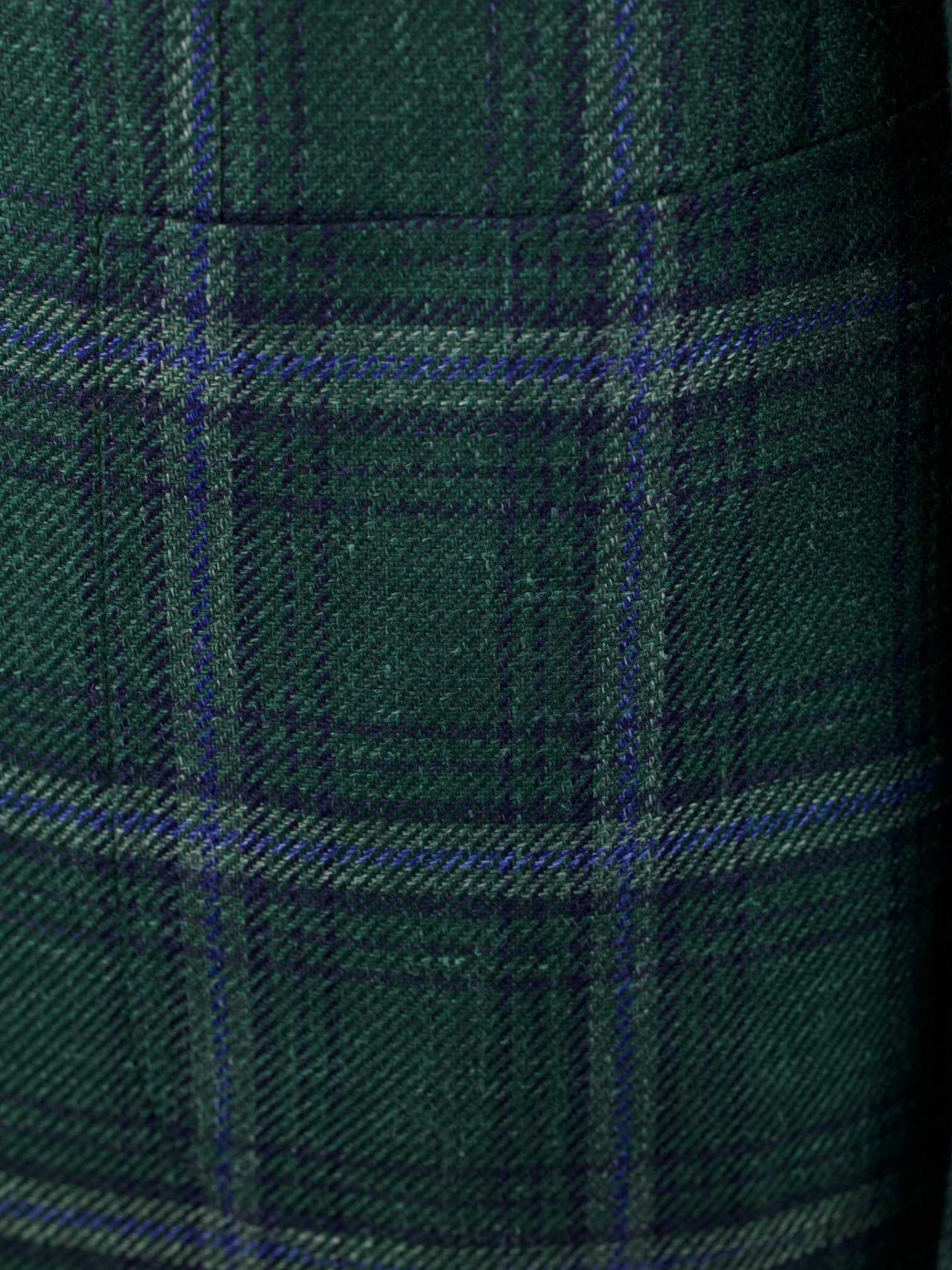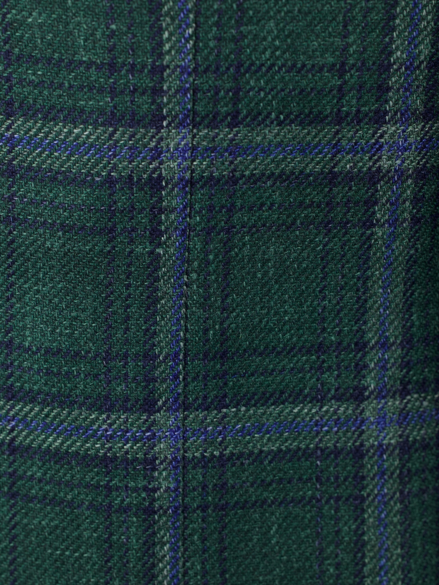 Caruso Bottle Green & Blue Wool, Silk & Linen Windowpane Boheme Jacket