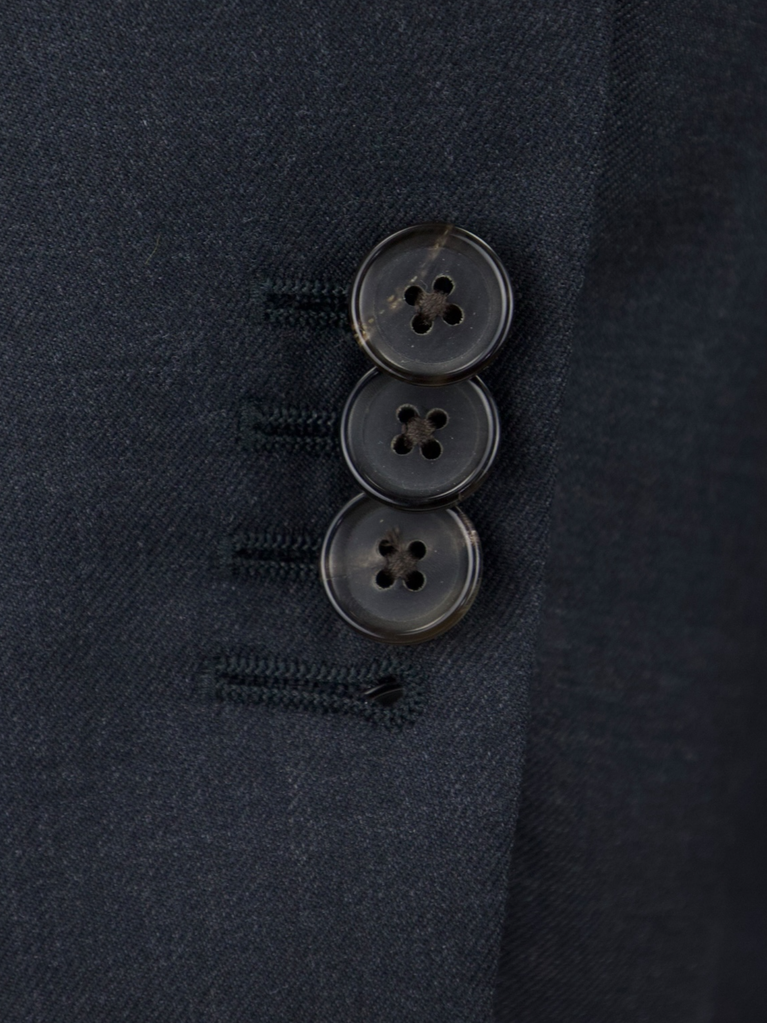 Also known as stacked buttons or waterfall buttons, kissing buttons are associated with Italian tailoring as Italian tailors make their jacket sleeve buttons in the kissing style. In this style, buttons touch each other and overlap one another. Handmade buttonholes; Even this step, apparently the simplest, is treated with an abundance of detail. Attaching the buttons is a job that requires patience and must be completed to perfection.