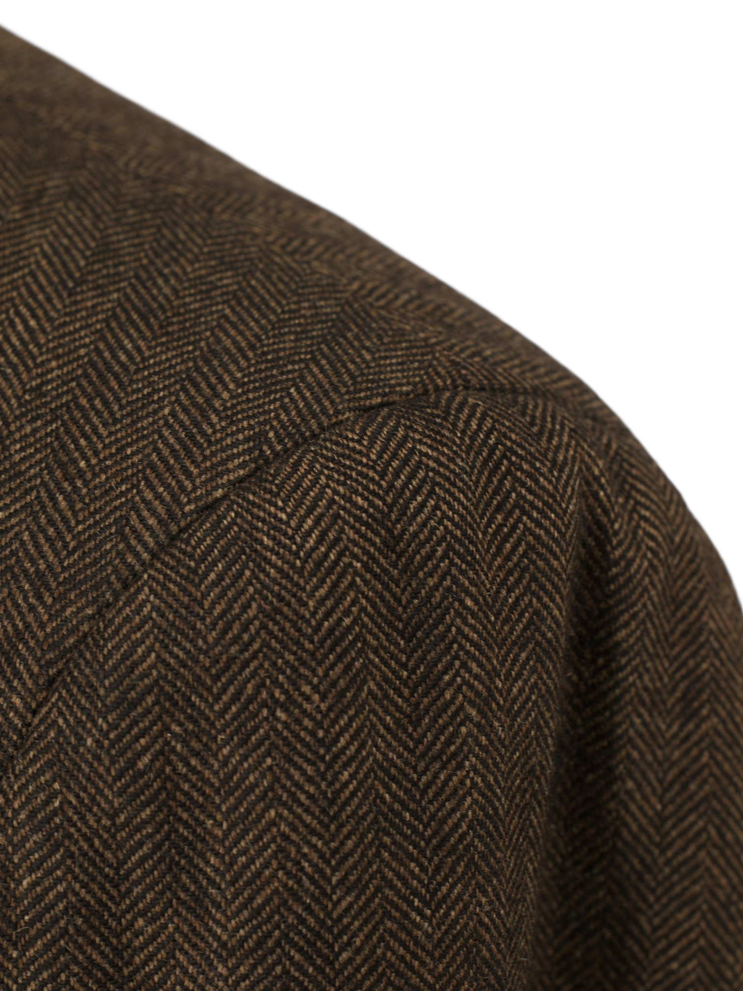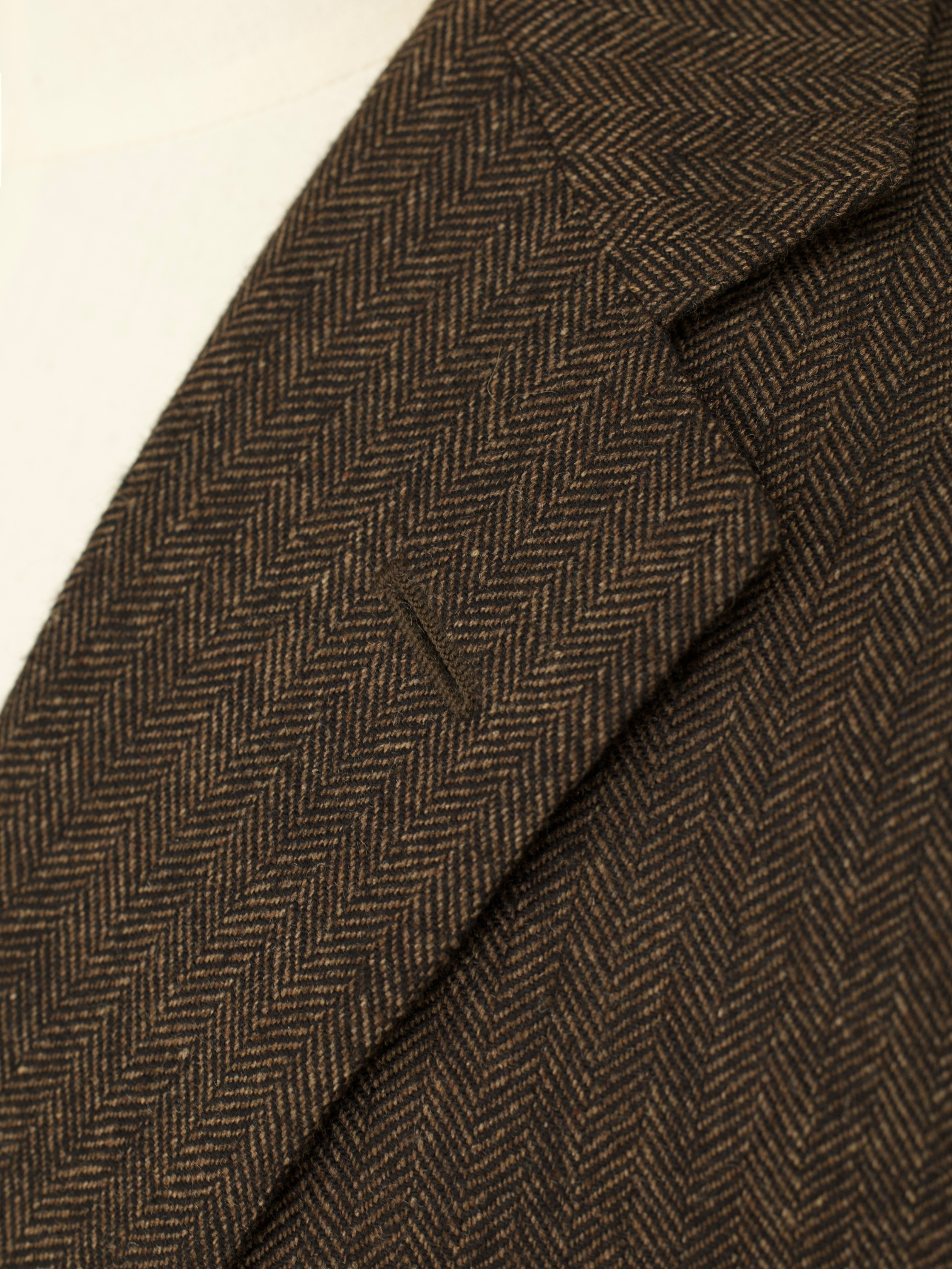 Caruso Chocolate Brown Pure Cashmere Herringbone Jacket