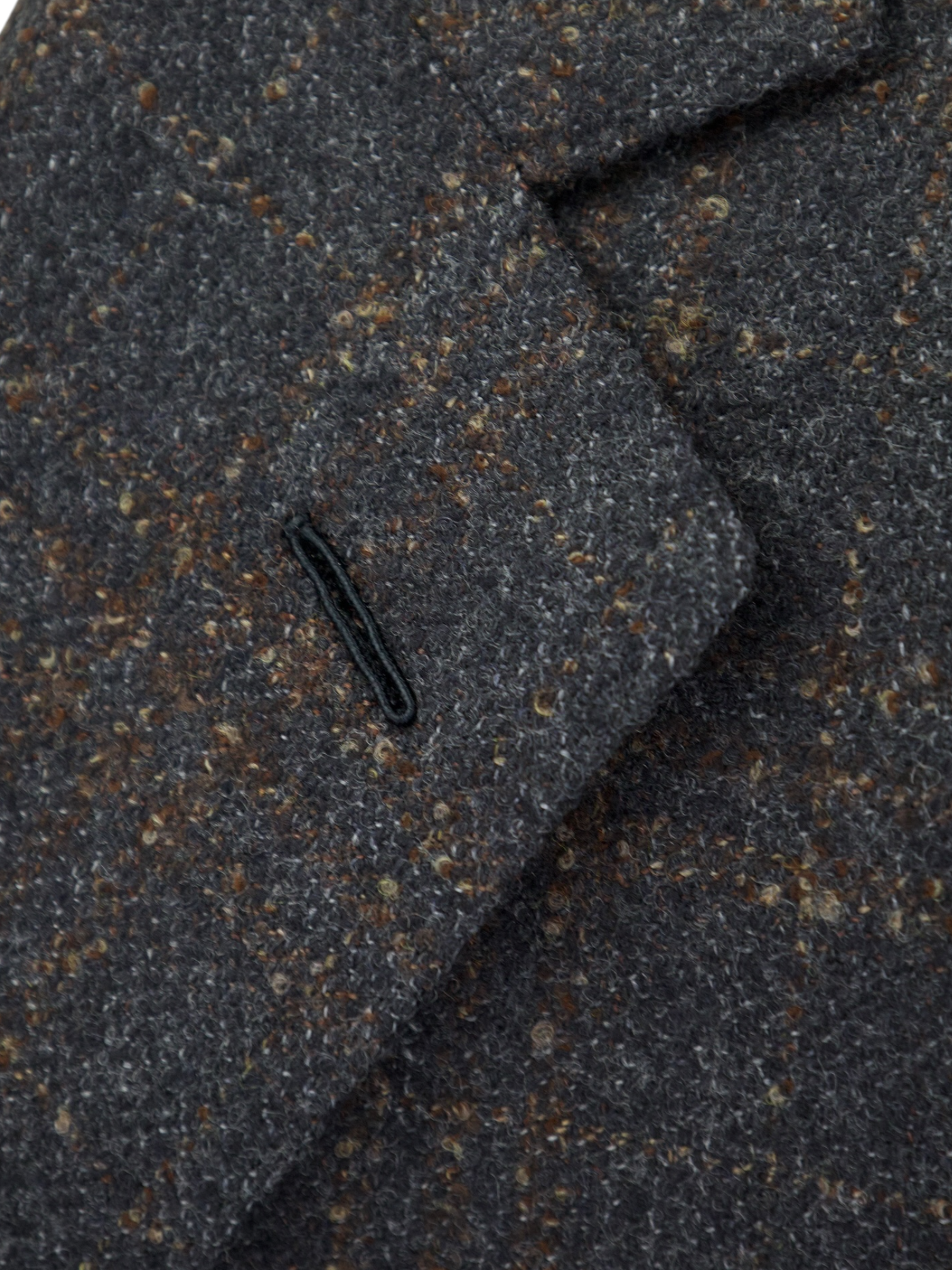 Caruso Dark Brown Wool-Stretch Micro-Pattern Aida Jacket