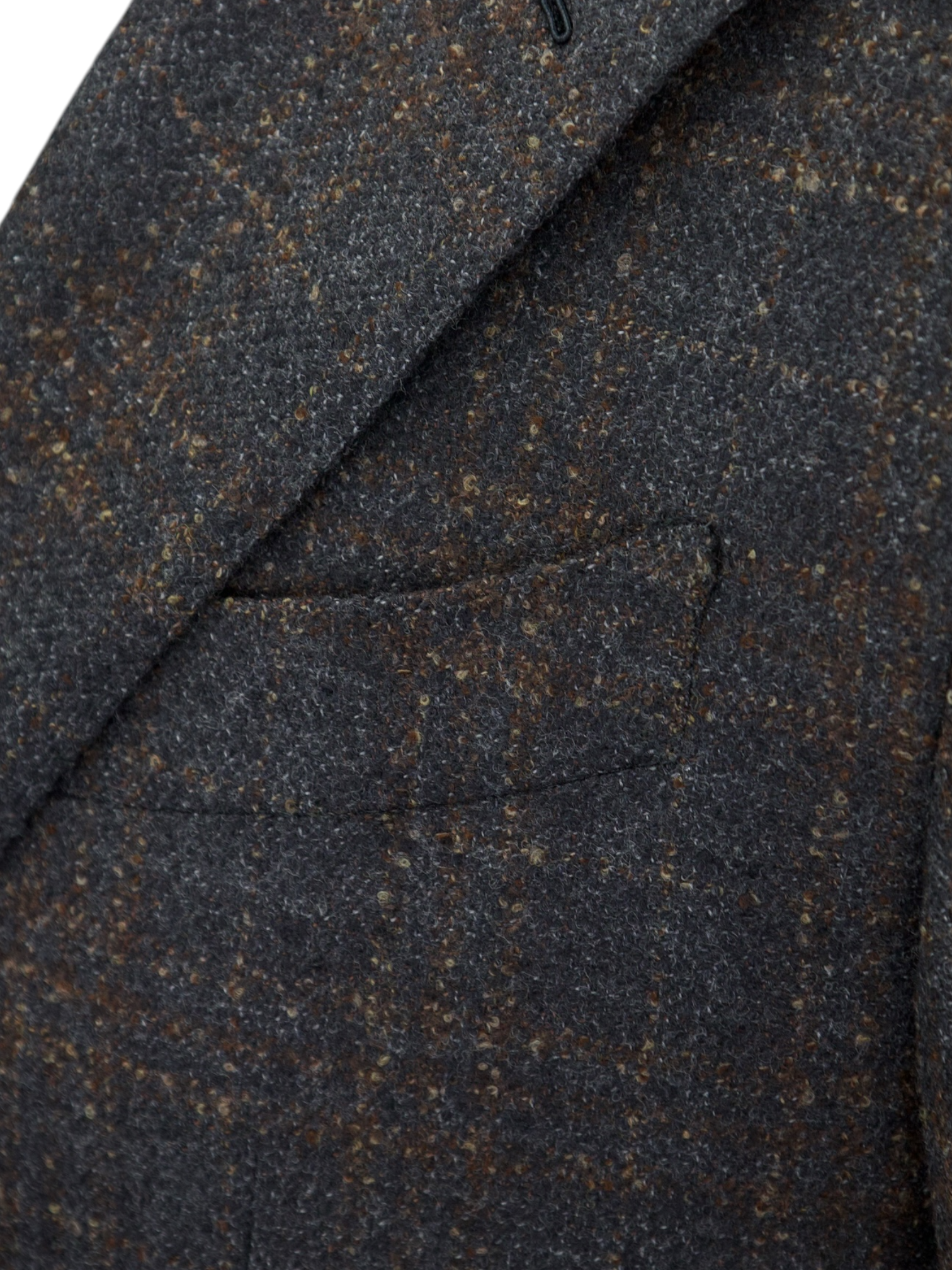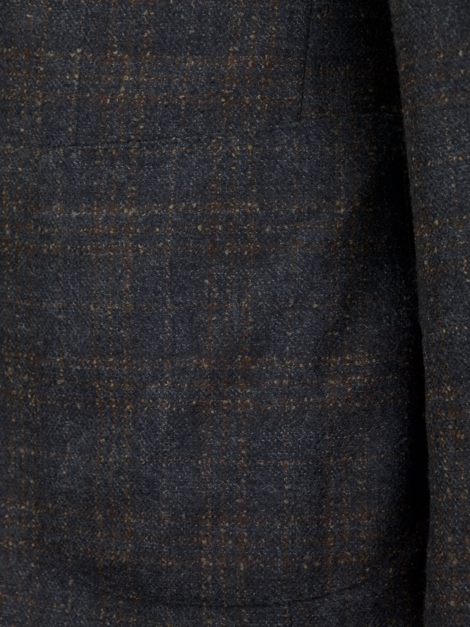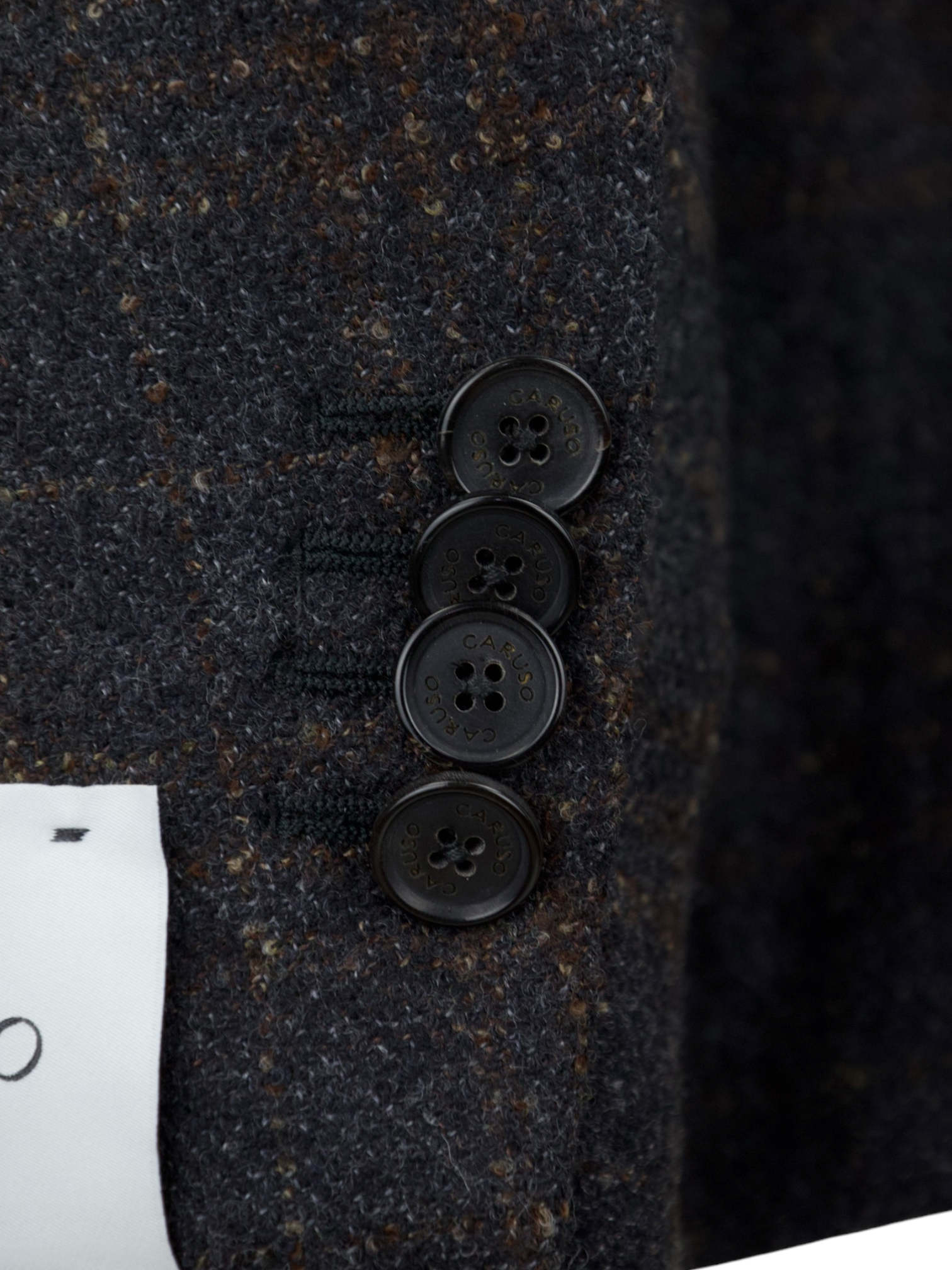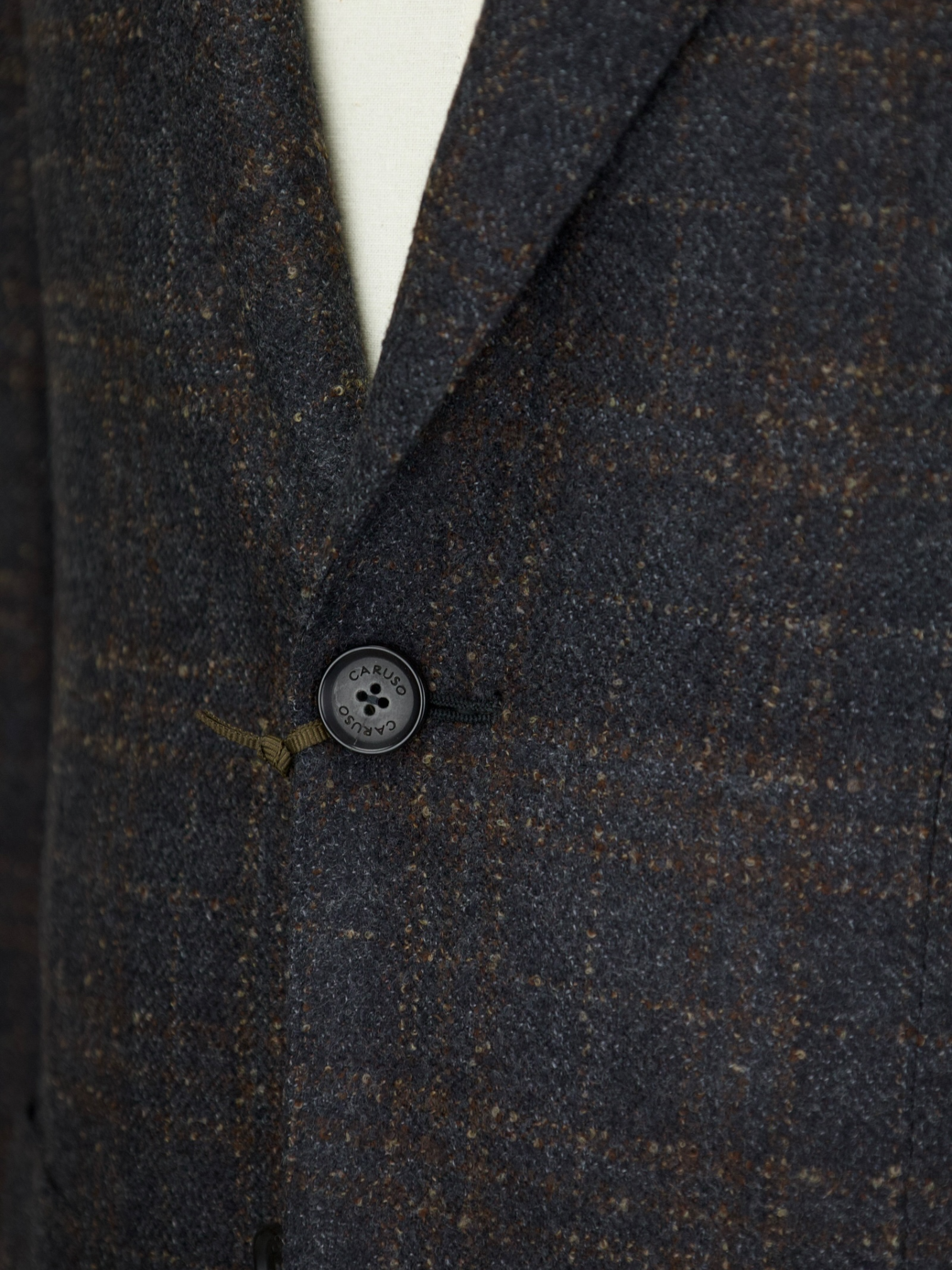 Caruso’s Aida jacket is a testament to the brand’s expertise in soft tailoring, embracing an unstructured design that enhances both comfort and elegance. The addition of stretch ensures flexibility without compromising the integrity of the fabric, while the precisely finished details showcase Caruso’s meticulous approach to craftsmanship. The half-lined interior allows for a natural drape, reinforcing the jacket’s effortless wearability. Perfect for both formal and smart-casual settings, this piece embodies modern refinement with a touch of Italian nonchalance. Discover the elaborated sartorial details below.