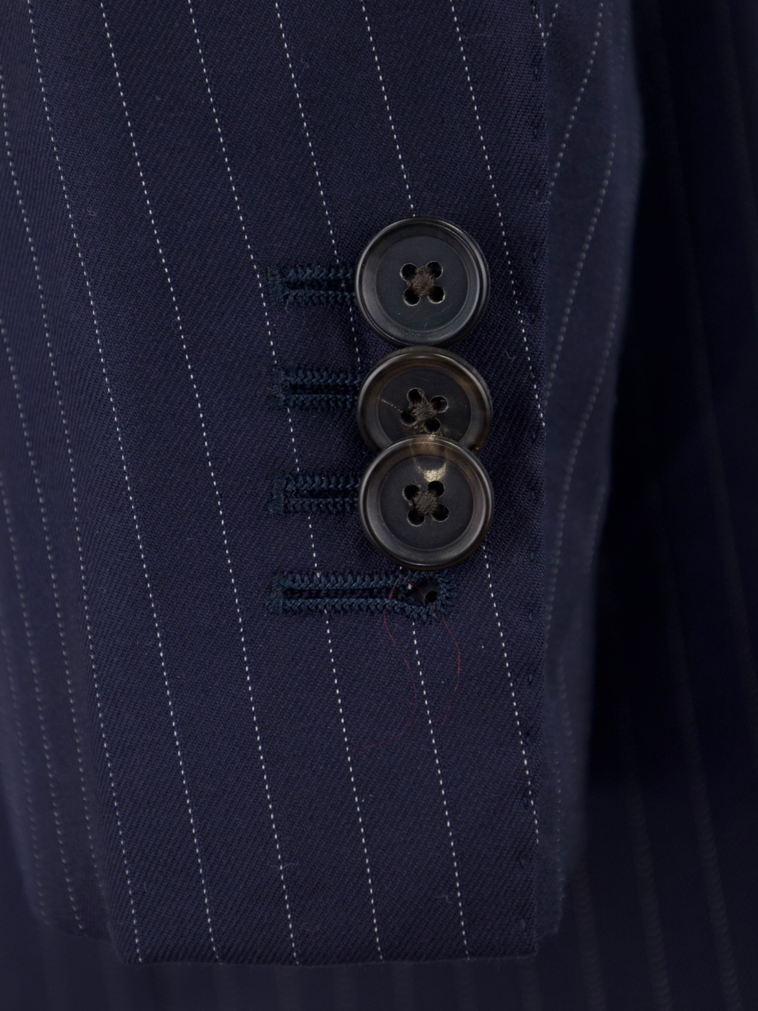 Also known as stacked buttons or waterfall buttons, kissing buttons are associated with Italian tailoring as Italian tailors make their jacket sleeve buttons in the kissing style. In this style, buttons touch each other and overlap one another. Handmade buttonholes; Even this step, apparently the simplest, is treated with an abundance of detail. Attaching the buttons is a job that requires patience and must be completed to perfection.